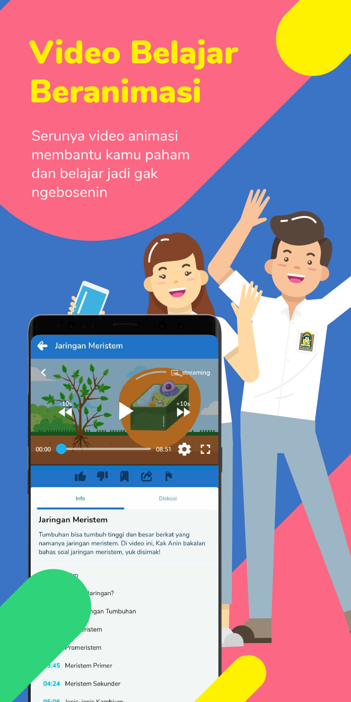 Haben Sie Schwierigkeiten, den Lernstoff in der Schule zu verstehen? Gelangweilt Sie die gleiche Art des Lernens? Keine Sorge, auf Pahamify können Sie versuchen zu lernen, als würden Sie einen Animationsfilm in einer leicht verständlichen Sprache ansehen. Es ist wirklich für diejenigen unter Ihnen geeignet, die das Material zunächst in Raten studieren, das Material für Prüfungen/PTS/PAS noch einmal durchgehen möchten und sogar für diejenigen unter Ihnen, die sich in Raten auf SNMPTN vorbereiten möchten.