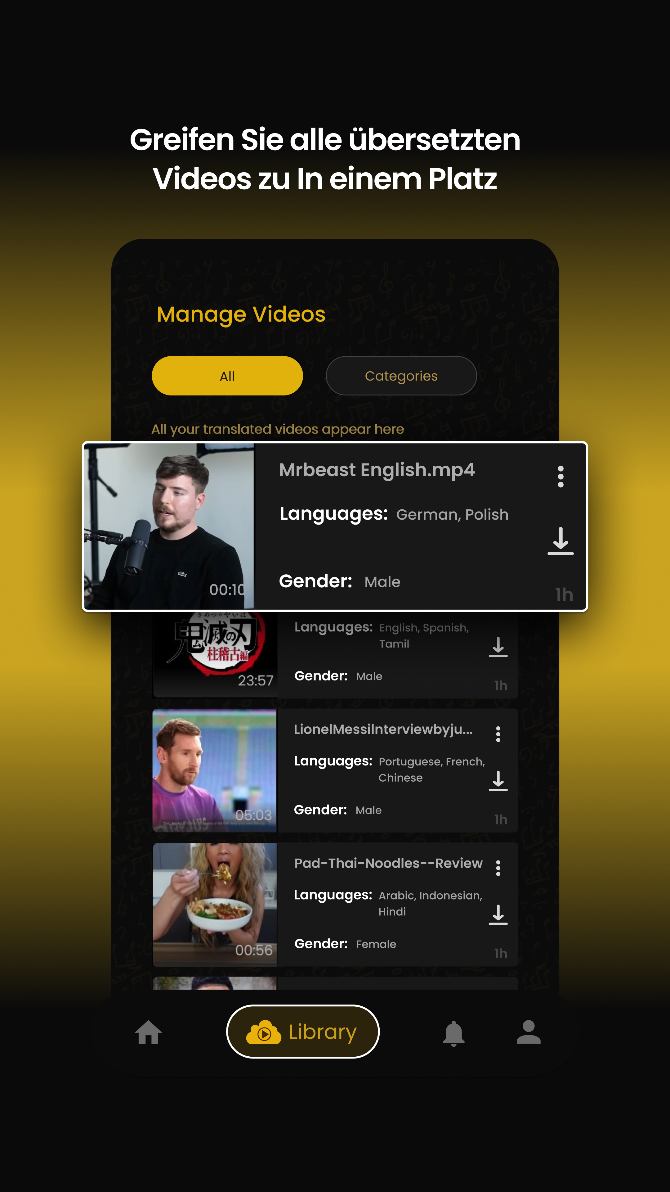 ✓ Synchronisation von Videos in andere Sprachen