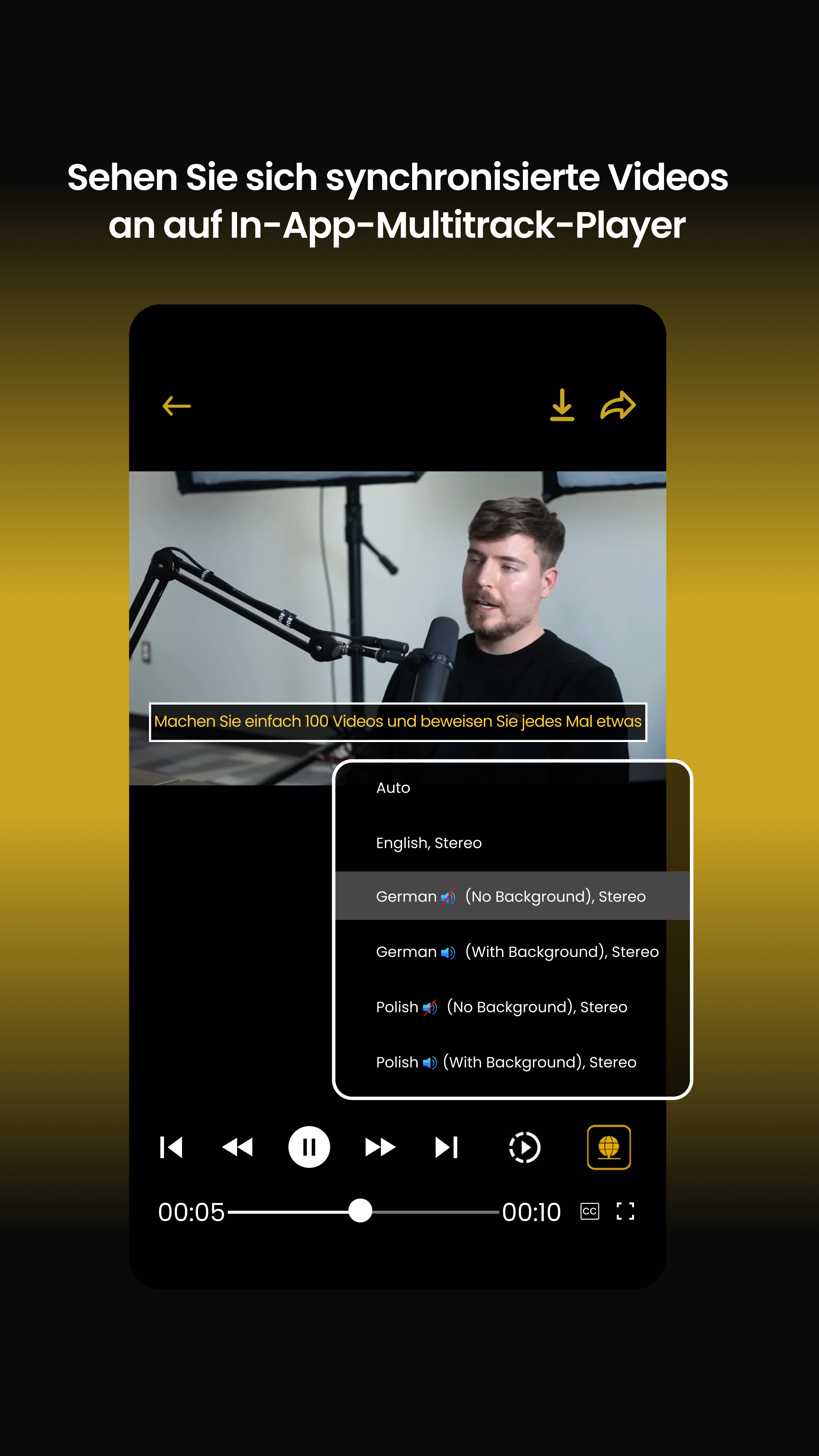 ✓ Integrierter Mehrspur-Player zum Streamen übersetzter Videos mit allen synchronisierten Audiospuren und Untertiteln (cc)