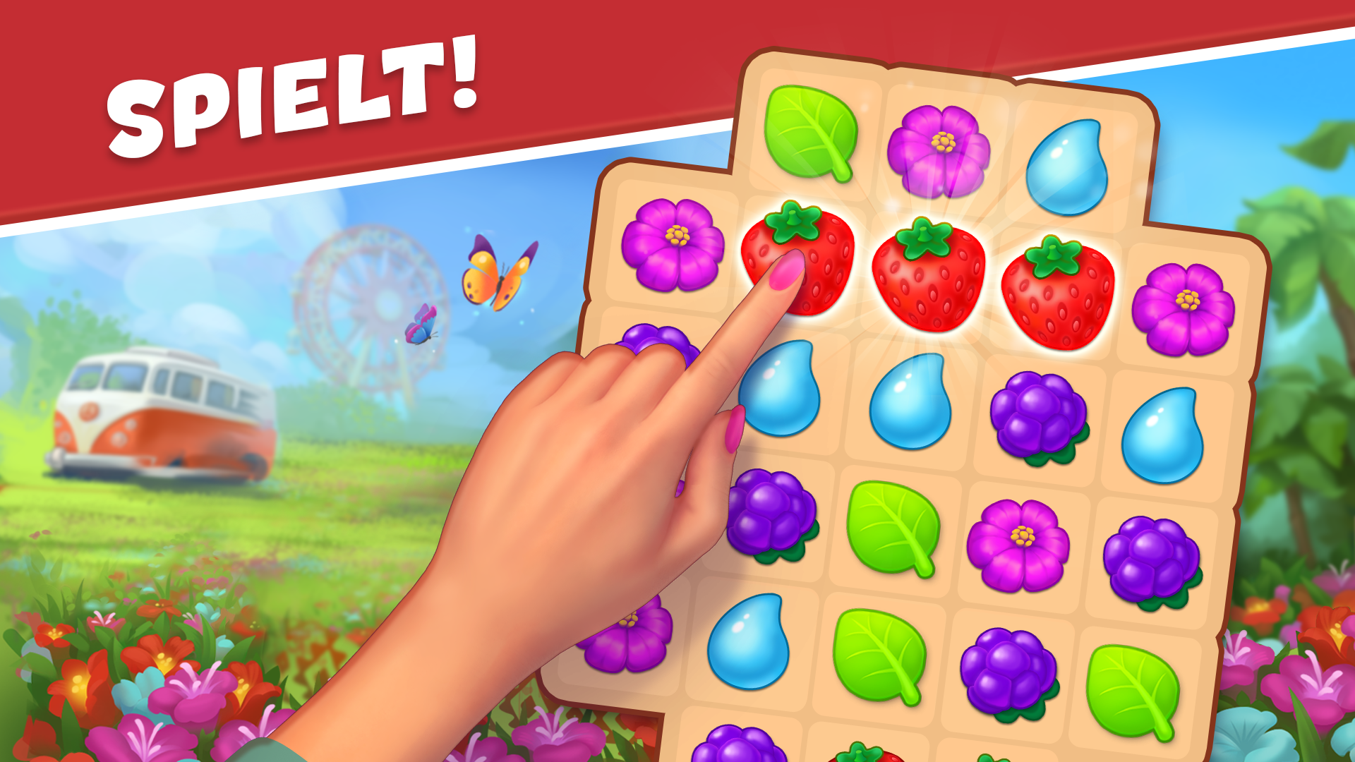 – Aufregende Match-3-Level mit explosiven Bonus-Kombos!