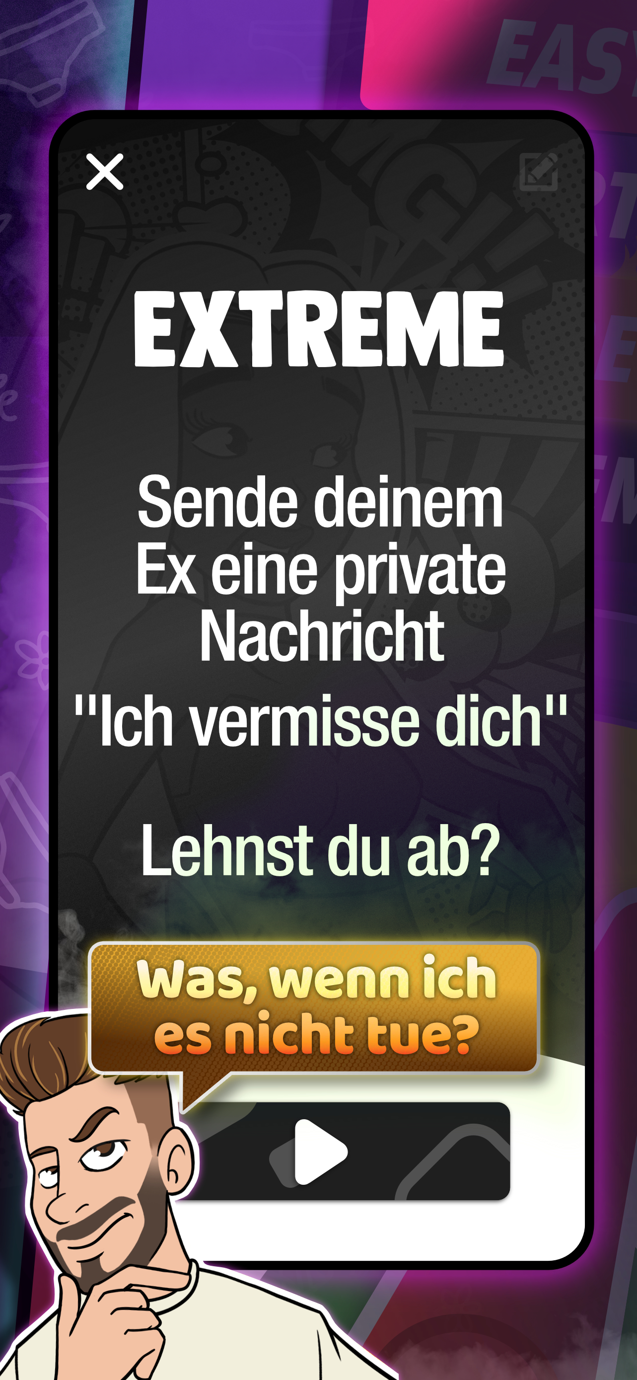 Hast du Lust, mit deinen besten Freunden abzuhängen, aber es fehlt dir die Inspiration für eine qualitativ hochwertige Unterhaltung? Du hast schon verschiedene Trink-Party-Spiele und Trinkspiel-Apps ausprobiert, aber es hat dich nichts überzeugt und du bist am Ende frustriert? Mach dir keine Sorgen, Partybus ist die Lösung! Diese extrem wertvolle Trinkspiel-App enthält die besten Trinkspiele für zwei Personen sowie Party-Trinkgruppenspiele. Wie Trink-Roulette, Wahrheit oder Pflicht, und Halbe Minute. Diese Trinkspiel-App wird Trinkspiele höchstwahrscheinlich revolutionieren. Diese auffällige Trinkspiel-App ist der offensichtliche Nachfolger der physischen Party-Kartenspiele nach der gleichen Grundregel: Fahr in den Partybus oder fahr nach Hause. Mit anderen Worten: Findest du deinen Weg durch das Spiel und schaffst legendäre Momente oder gehst du nach Hause und liest du ein Buch? Schwierige Entscheidung? Nein! 🍸WIE FUNKTIONIERT UNSERE TRINKSPIEL-APP? Das Letzte, was du von einer Trinkspiel-App willst, ist, dass sie kompliziert ist. Deshalb ist Partybus in seiner Einfachheit einfach brillant. Du forderst deine Freunde einfach auf, lustige Aufgaben auszuführen oder bizarre Fragen zu beantworten. Unser Hausparty-Trinkspiel hat wenig mit richtig oder falsch zu tun, sondern alles mit Mut, Bluff, Einstellung und viel Humor. Anstelle von Punkten verdienst du Getränke. Oder um genau zu sein: Anstatt Strafen zu verteilen, ertränkst du das gegnerische Team langsam aber sicher in Getränken Ihrer Wahl. Partybus über alles! Bringe den Verlierern eine Lektion bei... Partybus beinhaltet mehrere Partyspiele in einem, einschließlich der ursprünglichen Bearbeitung von Partybus und Trink-Roulette. Jedes Trinkspiel bietet mehrere Level, von einem einfachen Aufwärmen bis hin zu anspruchsvolleren Leveln wie "Ich hab noch nie ...", "Wer würde eher…?" und "Pflicht oder Trinken". ENTHÄLT Partybus HALBE MINUTE! Dieses Trinkspiel fordert dein Wissen über aktuelle Trends und No-Gos heraus. Entdeckst du, wer von deinen Freunden nur ein halbes Wort braucht und wer nur ein halbes Glas braucht. 🎉 SUPER FÜR ALLE GRUPPEN UND TREFFEN Mit Freunden trinken? Nur eine gute Zeit mit deinem/r besten Freund/in? Egal, ob du eine größere Hausparty, eine Junggesellen- oder Junggesellinnenparty veranstaltest oder mit deinem Bestie allein und gelangweilt bist, Partybus macht allen gleichermaßen Spaß. Die Anzahl der Spieler spielt überhaupt keine Rolle. Du kannst dieses Spiel mit wem auch immer du willst spielen. Dies macht es zu einer der besten Trinkspiel-Apps, die es gibt. Dieses Online-Trinkspiel ist nicht nur eine Ausrede für das Trinken von Alkohol…. Warte, ja, das ist es! Du kannst Spaß kombinieren und Alkohol trinken, viel davon… Das Format unserer Trinkspiele ermöglicht es dir, eins gegen eins zu spielen oder sich zusammenzutun. Fang einfach an und hab keine Angst, die extrem lustigen Herausforderungen zu meistern. Langweilige und ereignislose Geselligkeit? Nie wieder! Mit der Trinkspiel-App von Partybus ist Folgendes gewährleistet: ✓ Bizarre Fragen ✓ Mehrere Themen ✓ Lustige Aufgaben ✓ Raten Sie Wörter und verschenken Sie Schlucke Versuche diese Partybus Trinkspiel-App und steigere JETZT die Party-Stimmung und die gute Laune! ACHTUNG: BITTE BEACHTEN … ◉ Partybus kann süchtig machen ◉ Partybus kann schmutzige Geheimnisse preisgeben ◉ Partybus lässt dich vielleicht lachend auf dem Boden rollen ◉ Partybus kann erstaunliche Bindungen mit Freunden und Familie herstellen ◉ Partybus kann legendäre Momente verursachen Sag nicht, dass wir dich nicht gewarnt haben!
