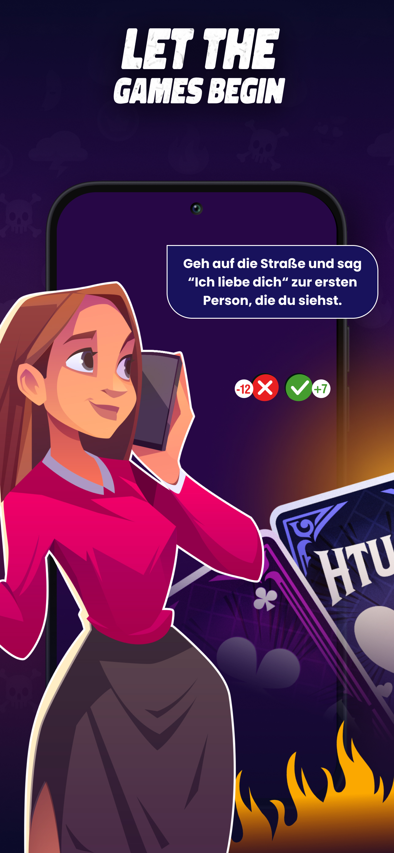 Truth or Dare von Partybus - Das ultimative Partyspiel! 🔥 Bist du bereit zu lachen, rot zu werden und vielleicht sogar ein Geheimnis zu lüften? Wahrheit oder Pflicht von Partybus ist das wildeste, lustigste und unvergesslichste Partyspiel - perfekt für Paare und Gruppen von Freunden! 🔥 Steig in den Partybus und mach dich bereit für eine Fahrt voller Abenteuer. Egal, ob du auf der Suche nach tiefgründigen Fragen, wilden Herausforderungen oder einfach nur nach einer guten Zeit bist, dies ist kein gewöhnliches Wahrheit oder Pflicht. Bist du mutig genug, die Wahrheit zu sagen ... oder entscheidest du dich für die Herausforderung? 🎉 Spiel wie du willst: Für Paare & Freunde 💞 Paare-Modus Bringe dich in Stimmung und komm einander näher mit romantischen, frechen oder verspielten Wahrheiten und Mutproben für zwei. Perfekt für ein Date, einen gemütlichen Abend oder etwas Aufregenderes... 👯 Freunde-Modus Der ultimative Eisbrecher für Partys, Spieleabende oder Roadtrips! Entdecke witzige Geheimnisse, erfülle verrückte Aufgaben und schaffe unvergessliche Erinnerungen. Von lockerem Spaß bis hin zu extremer Verrücktheit - du bestimmst die Stimmung. 🌀 Zwei Spielmodi, doppelt so viel Spaß! 🎡 Roulette-Modus Füge alle Spieler hinzu, drehe das Rad und lass das Schicksal entscheiden, wer an der Reihe ist. Perfekt für Gruppenspiele und voller Überraschungen! 🃏 Kartenmodus Ziehe abwechselnd eine Karte und entdecke, was das Spiel für dich bereithält: 💬 Wahrheitskarten - Anregende oder prägnante Fragen 🎯 Dare-Karten - Lustige, freche und manchmal gewagte Herausforderungen ❓ Wahrheit-oder-Pflicht-Karten - Du wählst dein Schicksal! 🃏 Jokerkarten - Mysteriöse Karten, die dich überraschen 💥 Warum du Truth or Dare von Partybus lieben wirst: ✅ Geeignet für Paare und Gruppen von Freunden ✅ Originelle Wahrheiten & Mutproben in verschiedenen Themen und Stimmungen ✅ Von mild bis EXTREME - du bestimmst die Stimmung ✅ Großartig für Partys, Road Trips, Rendezvous & mehr ✅ Jedes Spiel ist anders - keine Wiederholungen, nur endloser Spaß 🚀 Lächeln. Verbinde dich. Wage es, weiterzugehen. Truth or Dare von Partybus ist nicht nur ein Spiel - es ist ein unvergessliches Erlebnis. Es geht um Spaß, Verbindung und das Überschreiten von Grenzen auf die bestmögliche Art und Weise. Lade jetzt herunter und lass dich von Party Bus auf eine wilde Fahrt voller Lachen, Ehrlichkeit und unvergesslicher Momente mitnehmen. Bist du bereit zu spielen?