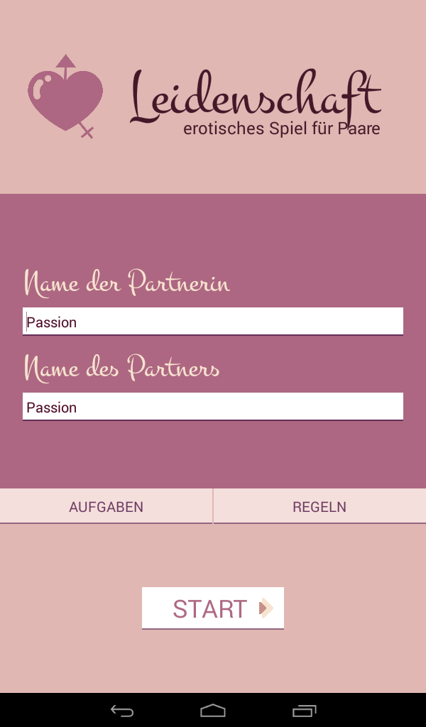 Es ist nicht wichtig, wie lange ihr schon zusammen seid, wie viele Dates ihr hattet und wie alt ihr seid. Es ist wichtig, dass ihr Sex mögt und dass ihr miteinander Zeit verbringen mögt. Diese Zeit kann man mit unserer Applikation vertreiben. Das erotische Spiel für Paare, das verschiedene Aufgaben enthält (in unterschiedliche Kategorien aufgeteilt), ermöglicht euch euren Partner besser kennenzulernen.