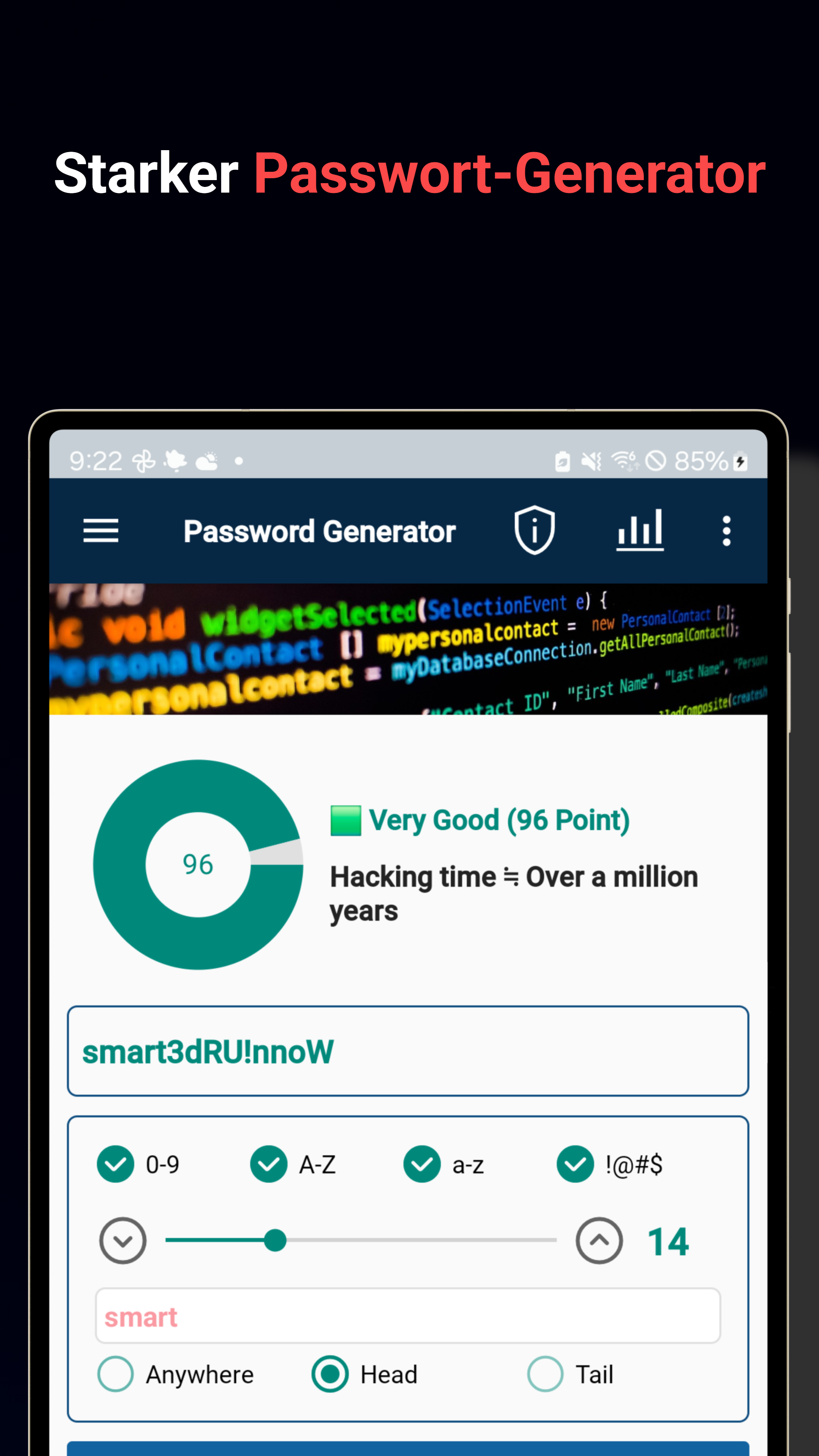 Passwort-Manager - SmartWho Safe (Paketname: com.smartwho.smartpassword) wird von SMARTWHO entwickelt und die neueste Version von Intelligenter Passwort-Manager 2.7.2 wurde am 13. September 2025 aktualisiert. Intelligenter Passwort-Manager liegt in der Kategorie von Effizienz. Sie können alle Apps von dem Entwickler der Intelligenter Passwort-Manager durchsuchen und 200 alternative Apps zu Intelligenter Passwort-Manager auf Android finden. Derzeit ist diese APP kostenlos. Diese App kann auf Android 7.0+ auf APKFab oder Google Play heruntergeladen werden. Alle APK/XAPK Dateien auf APKFab.com sind original und 100% sicher, schnell herunterzuladen.