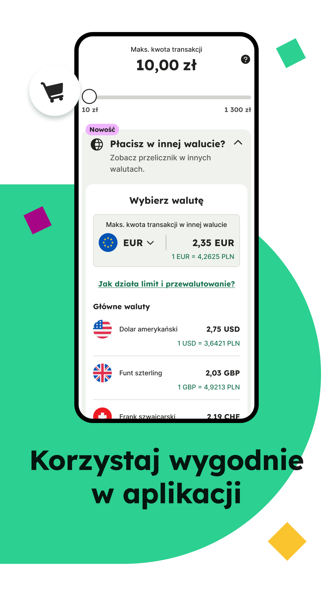 Entdecken Sie die kostenlose mobile App für Online- und Offline-Shopping – auch im Ausland – mit PayPo und flexibler Ratenzahlung! Kaufen Sie Produkte beliebter Shops, bestätigen Sie Ihre Bestellungen mit einem Klick und bezahlen Sie später. Jetzt kaufen, in 30 Tagen oder später bezahlen Mit PayPo bezahlen Sie Ihre Einkäufe, wann immer Sie möchten – erst nach Erhalt und Prüfung der Produkte zu Hause und nur für die Artikel, die Sie behalten möchten. Sie können Ihre Einkäufe innerhalb von 30 Tagen ohne zusätzliche Kosten oder später bezahlen, je nach verfügbarem Service. Informationen zu den verfügbaren Services finden Sie im jeweiligen Shop. Bezahlen Sie mit Ihrer PayPo-Karte im Geschäft und online Mit einer PayPo-Karte können Sie auch in Geschäften und Online-Shops einkaufen, in denen PayPo bisher nicht verfügbar war. Sie können Ihre Karte ganz einfach und ohne unnötige Formalitäten in der App erstellen. Es fallen keine monatlichen Gebühren für die Kartenverwaltung an, sodass Sie die Karte jederzeit nutzen können. Aktuelle Transaktionen und Zahlungstermine haben Sie immer im Blick. Bezahlen Sie mit Ihrer PayPo-Karte in Fremdwährungen – auf Reisen und in internationalen Online-Shops. Mit Ihrer PayPo-Karte können Sie in Dutzenden von Währungen bezahlen und den Betrag später in polnischen Złoty zurückzahlen. Prüfen Sie den Wechselkurs (auch für Euro und Dollar) mit einem einfachen Währungsrechner und kaufen Sie zu einem attraktiven Kurs ohne zusätzliche Umrechnungsgebühren. Schneller und bequemer einkaufen. Mit der PayPo-App bestätigen Sie Ihre Online-Bestellungen mit nur einem Klick – ohne Angabe persönlicher Daten, ohne Anmeldung bei Ihrer Bank und ohne auf einen SMS-Code zu warten. Die Autorisierung in der mobilen App ermöglicht eine schnelle und bequeme Bestellabwicklung. Transaktionen im Blick behalten Die PayPo-App ist intuitiv und benutzerfreundlich. Sie bietet Ihnen Zugriff auf Informationen zu all Ihren PayPo-Käufen, sodass Sie Zahlungstermine einsehen und Ihre Salden direkt in der App begleichen können. Immer pünktlich und sicher. Greifen Sie jederzeit bequem auf Informationen zu Ihren aktuellen PayPo-Transaktionen zu und prüfen Sie Ihre Kaufhistorie. Weit verbreitet online und im stationären Handel Mit der PayPo-App shoppen Sie bequem in über 30.000 Online-Shops, darunter CCC, Empik, Decathlon, Media Expert und Modivo, sowie im stationären Handel. Bezahlen Sie einfach mit einem PayPo-Code* oder Ihrer Karte. Gönnen Sie sich mehr und shoppen Sie ganz nach Ihren Wünschen. Laden Sie jetzt die kostenlose PayPo-App herunter und entdecken Sie die beste Art einzukaufen. So smart war Shopping noch nie! *„Ratenzahlung“ – 0 % effektiver Jahreszins bei Rückzahlung innerhalb von 30 Tagen, danach 97,9 % effektiver Jahreszins. Repräsentatives Beispiel: Gesamtkreditbetrag (ohne angerechnete Kosten) 240,00 PLN, Gesamtrückzahlungsbetrag 276,00 PLN, fester Zinssatz 14,0 %, Gesamtkosten des Kredits 36,00 PLN (inkl. 28,99 PLN Gebühr, 7,01 PLN Zinsen), 4 gleiche Raten à 69,00 PLN, Vertragslaufzeit: 120 Tage. Details finden Sie in den Allgemeinen Geschäftsbedingungen für „Ratenzahlung“ auf paypo.pl. *Der SmartPlan-Service ist in ausgewählten Filialen verfügbar. Diese Information stellt kein Angebot dar. Details finden Sie in den SmartPlan-AGB auf www.paypo.pl.