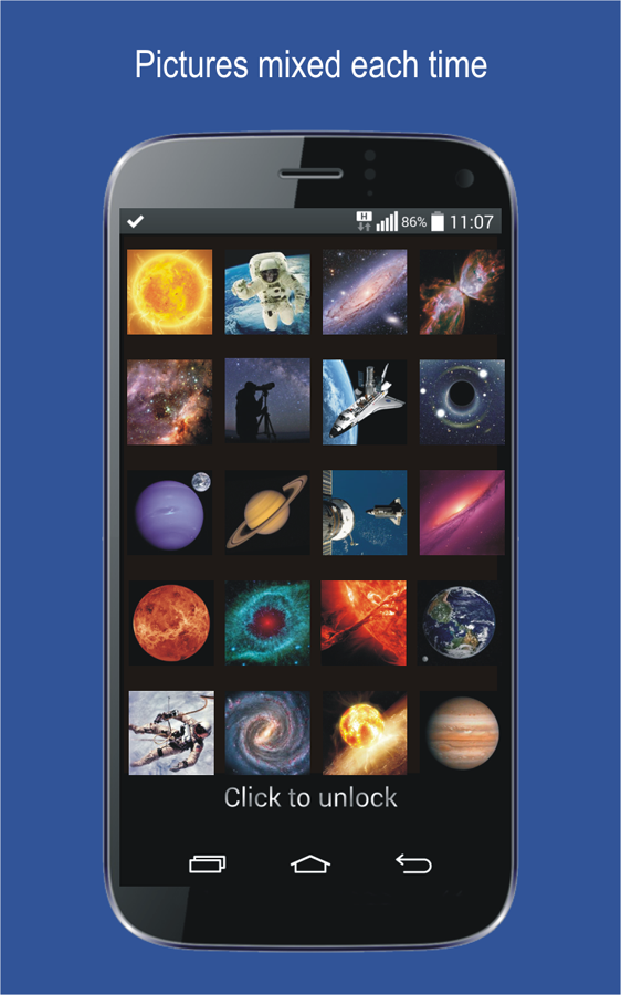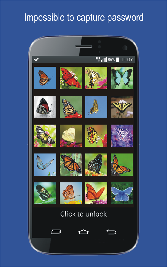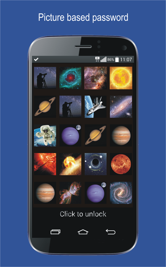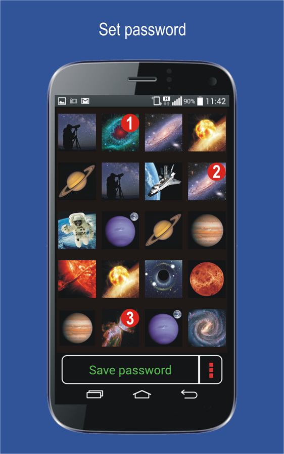 Phantom bietet außerdem verschiedene Personalisierungsmöglichkeiten. Sie können die Bilder anpassen, die Sie bei der Eingabe Ihres Codes sehen möchten. Ihre persönlichen Daten sind sicher mit Phantom Bildschirmsperre.