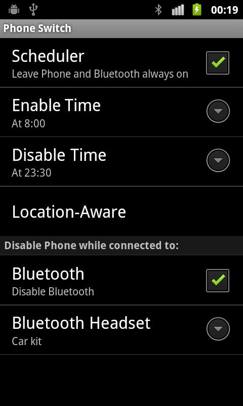Save your phone's battery life by switching it off automatically when you are at home during the night. You can set the offline time period and your home location (cellular network-based location). Your phone may also turn off automatically when connected to some bluetooth device.