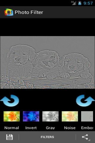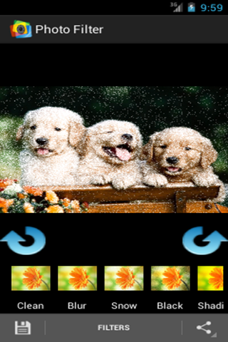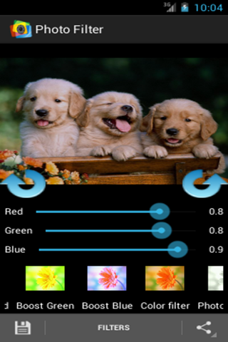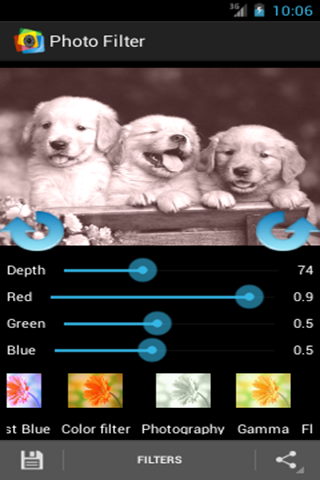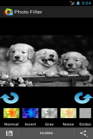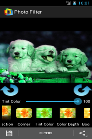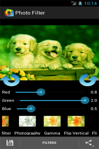 Have fun with your great moments with this app . you can filter your picture with alot of filters and customize it to what u want and save it or share with your friends in Facebook and twitter filters in app: > invert - gray - noise - emboss - engraving - remove effects - blur - snow - black - shading - saturation - Hue - contract - brightness - sharpen - smooth - reflection - round corner - tint color - color depth - boost red - boost green - boost blue - color filter - photography - gamma filter - flip vertical - flip horizontal - rotate picture