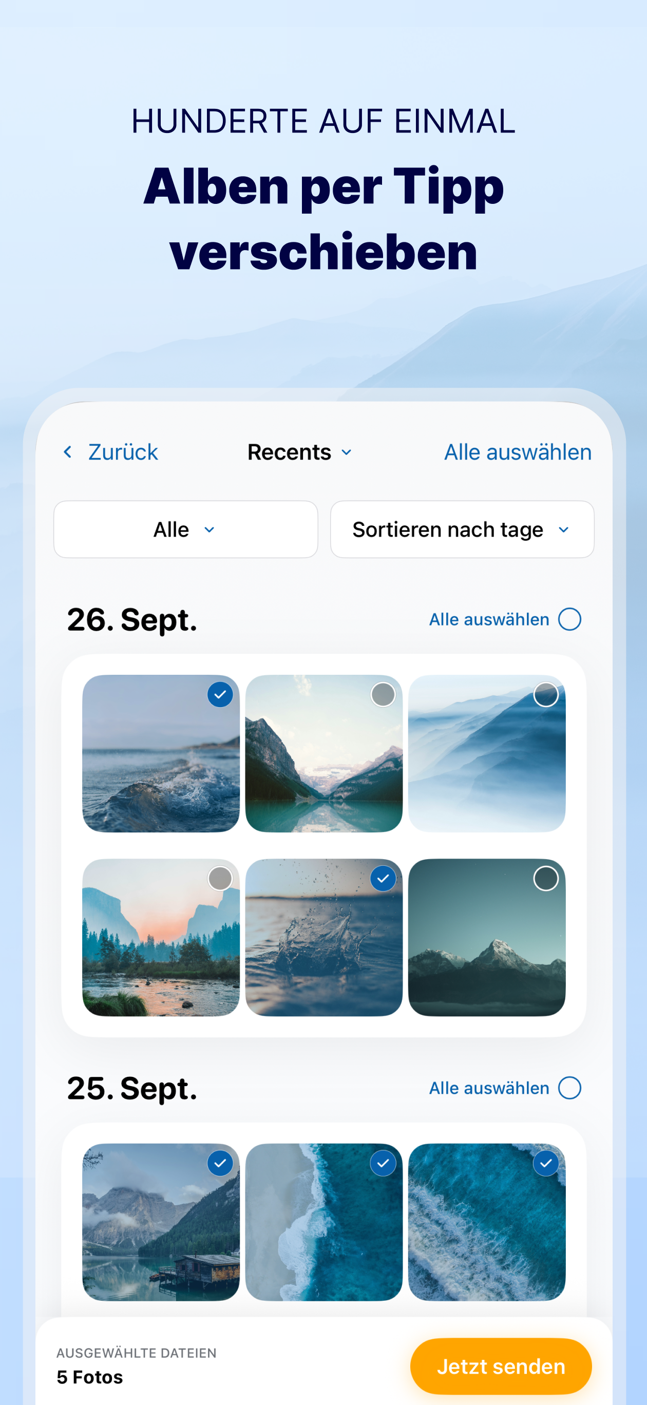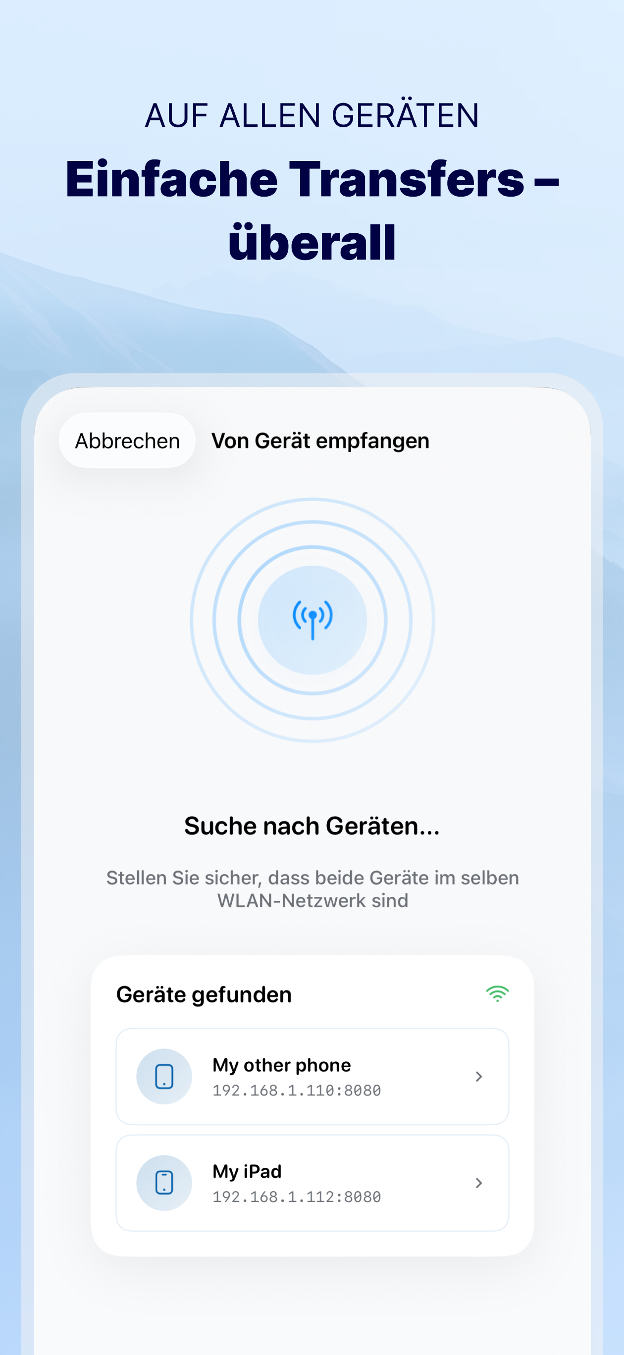 * Um von Gerät zu Gerät zu übertragen, muss diese App auf beiden Geräten installiert sein.