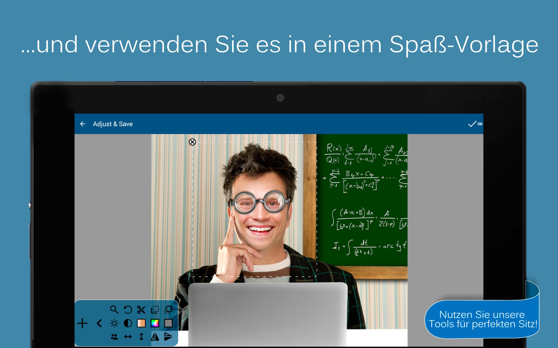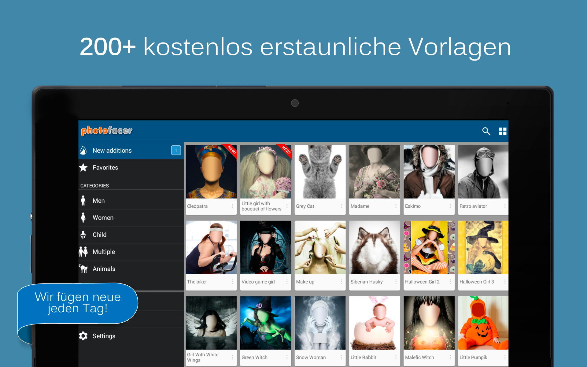Viel spaß bei der Änderung ihres körpers mit PhotoFacer! * Einfach bedienbar * Verwenden sie ihre fotos aus galerie, kamera oder facebook! * Viele Modelle zur auswahl, täglich hinzugefügt Kategorien sind kinder, männer, frauen und andere. Die VOLLVERSIOn beinhaltet 2000+ vorlagen und keine werbung!