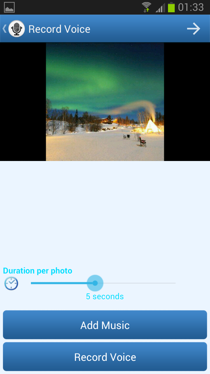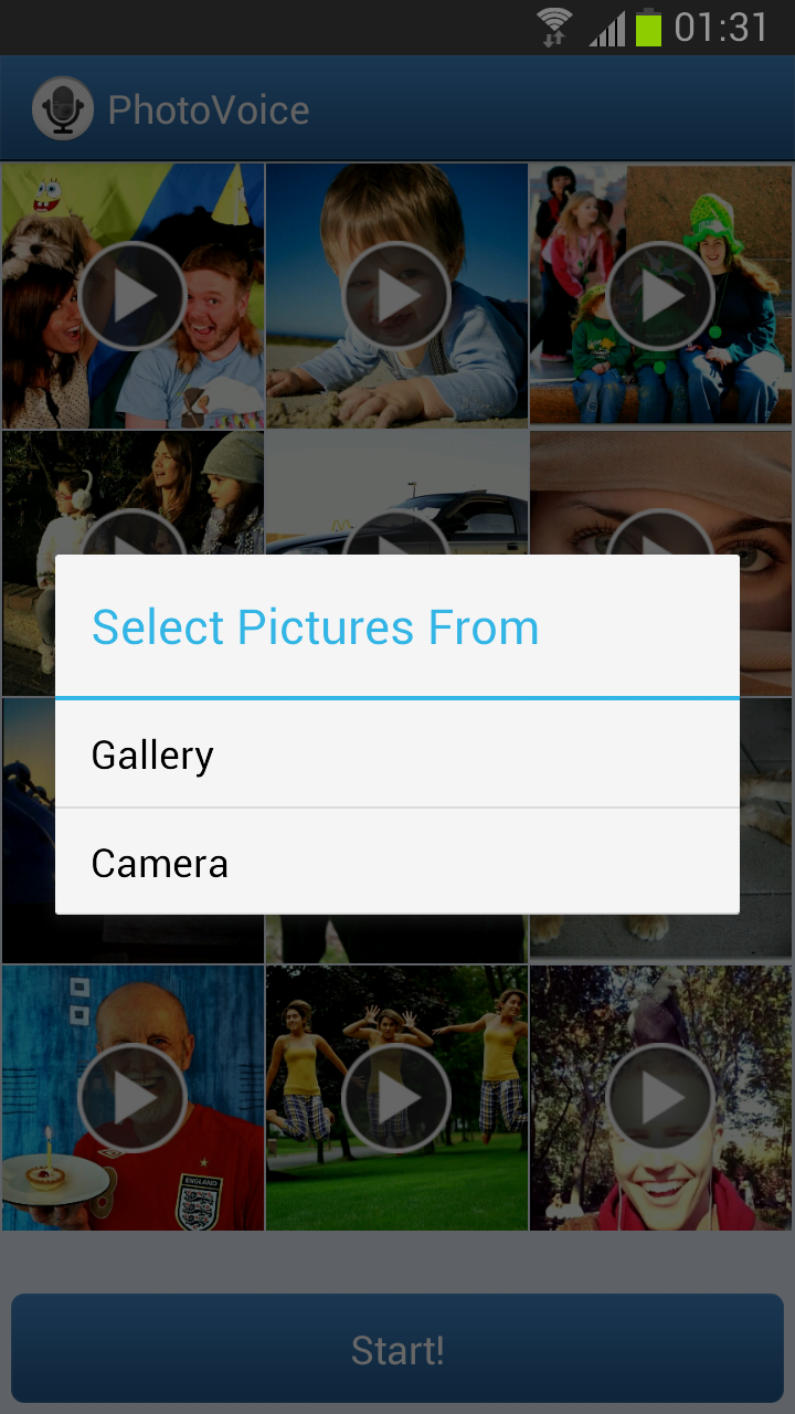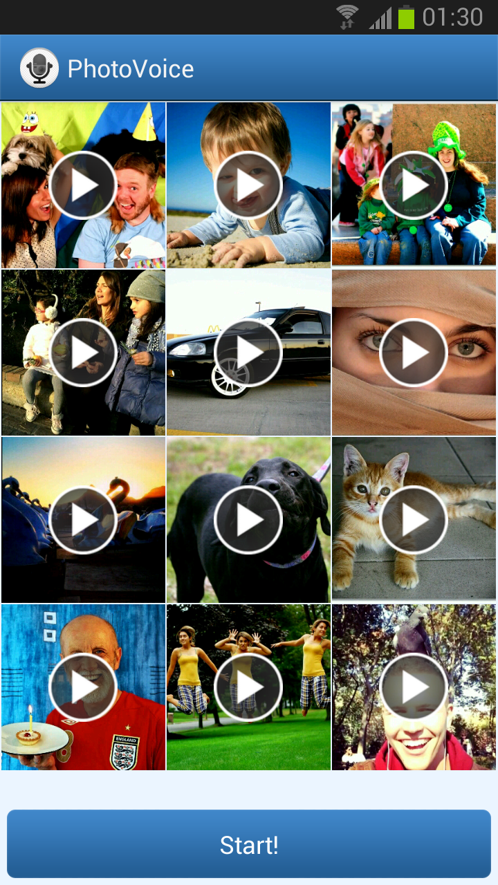 With PhotoVoice you can record your own voice and put it in the pictures available in your gallery or taken by the camera. The result is a beautiful video telling a story narrated by you. It's easy! And also you can: - Add a background music - Choose the duration per photo - Share the final video in your favorite social network (Instagram, Facebook and even on WhatsApp) - Save your video in SD card in Mpeg4 format It is better than the resource that adds voice on pictures of Samsung Galaxy S4 (SIV) or Flipagram..