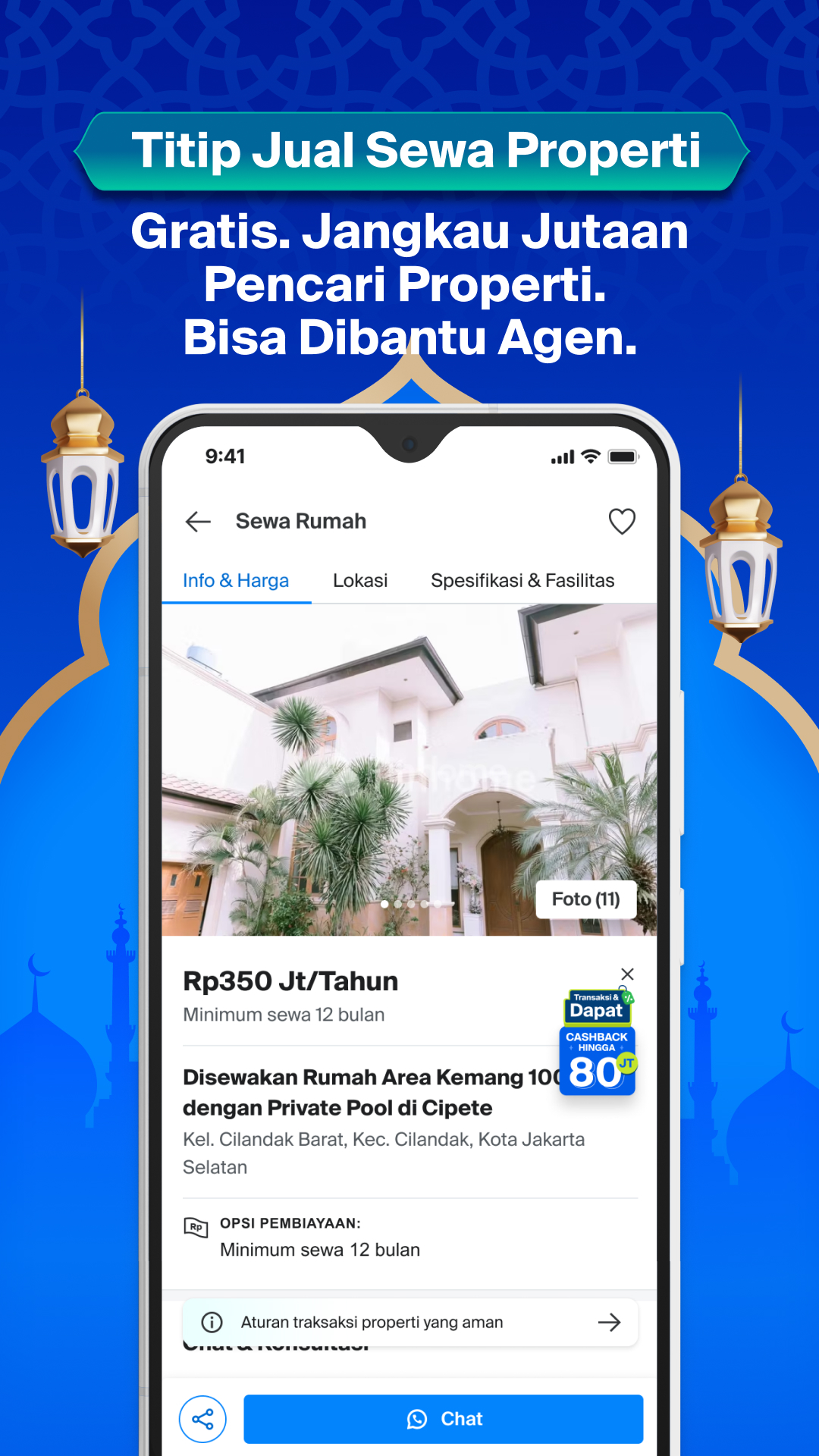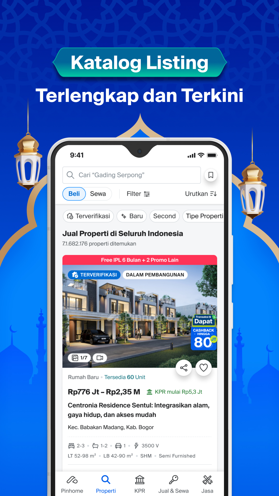 Haus kaufen, Gold gratis! Mit der Pinhome Golden Deals-Aktion kannst du Goldpreise gewinnen, wenn du deine Wunschimmobilie buchst! Von Häusern und Wohnungen bis hin zu Gewerbeimmobilien – alles findest du in der Pinhome-App. Verwirkliche dein Traumhaus und sichere dir jetzt die Chance, Gold zu gewinnen! ✨ Verwirkliche dein Traumhaus in diesem goldenen Moment Nutze die Pinhome-Funktion „Ideales Hausbudget-Simulation“, um ein Haus zu finden, das deinen Bedürfnissen und deinem Budget entspricht. 🔎 Finde deine Traumimmobilie ganz einfach Mit der intelligenten Suche findest du schneller ein Haus, eine Wohnung, eine Pension oder eine Mietwohnung. Wähle einen Ort, lege einen Preis fest und du erhältst sofort eine Liste passender Immobilien. 📋 Plane deine Finanzen klug Der Ramadan ist die perfekte Zeit zum Nachdenken und für die Finanzplanung. Mit dem Traumhaus-Budgetplaner verwaltest du deine Finanzen effektiver und kommst deinem Traum vom Eigenheim näher. 🛠️ Haushaltsservices für ein komfortableres Zuhause Wir sorgen für ein sauberes und komfortables Zuhause! Pinhome Service unterstützt Sie bei der Reinigung Ihres Zuhauses, der Reinigung und Wartung Ihrer Klimaanlage und bietet Ihnen sogar entspannende Massagen, um Ihren müden Körper nach all den Aktivitäten zu erfrischen. Die Services sind im Großraum Jakarta, Surabaya, Bandung und 40 weiteren Städten verfügbar. Alle Transaktionen sind durch eine Kundenzufriedenheitsgarantie abgesichert. 🌟 Eigenheim besitzen, Gold gratis erhalten Buchen Sie Ihr Zuhause bis zum 1. August 2025 und erhalten Sie einen Goldbarren als besonderes Geschenk. Ein kleiner Schritt in Richtung Ihres Traumhauses, ein großer Schritt in Ihre Zukunft! 📲 Laden Sie Pinhome jetzt herunter und genießen Sie ein komfortableres Leben mit dieser einmaligen Gelegenheit, die Sie nicht verpassen sollten! 🏡✨