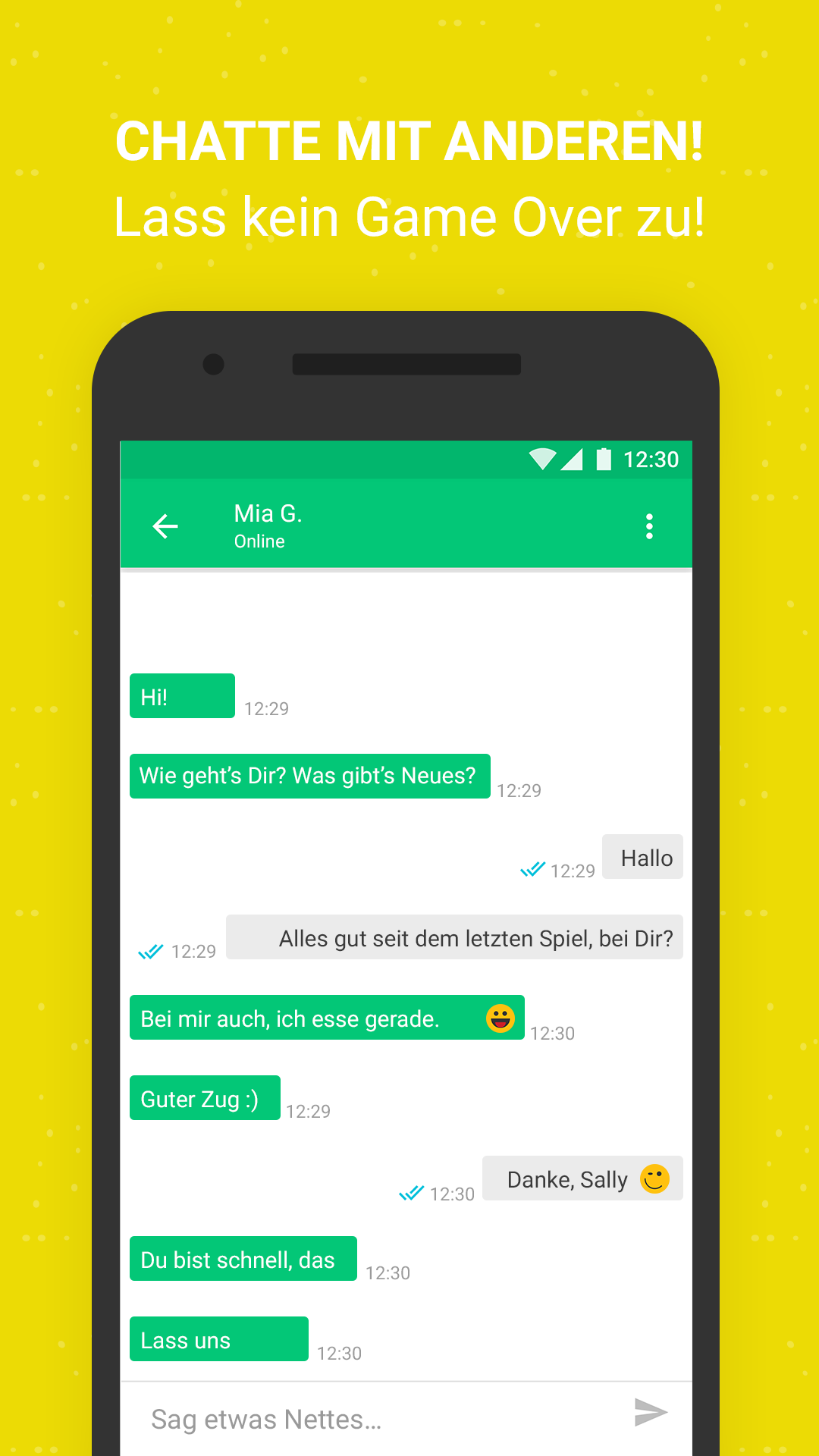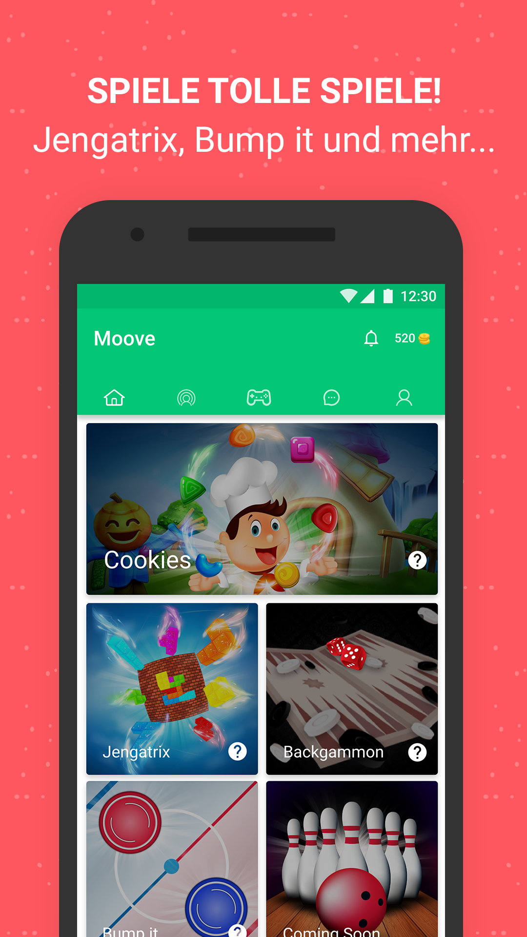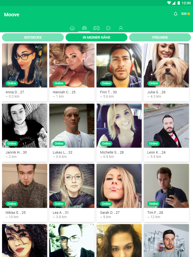 Dating app! Heute ist ein fantastischer Tag, um neue Freunde zu finden, neue Online-Spiele zu spielen und mit anderen kostenlos zu chatten! Alle Ihre Lieblingsspiele befinden sich an einem Ort! Sie können neue Leute treffen, sie in Online-Spielen herausfordern oder den perfekten Chat machen! Sie können auch Facebook-Freunde zum Spielen, Chatten oder zur Unterhaltung einladen. Folgen Sie anderen und seien Sie beliebt, indem man Ihnen folgt! Spielen Sie alle Ihre Lieblingsspiele!🎮 Jengatrix, Bump it, Backgammon, Cookies, 8 Ball Pool, Basketball, Bowling und mehr ... Kontakte pflegen war noch nie so lustig und einfach! Sie können alle diese ausgezeichneten Online-Spiele spielen, ohne zu bezahlen, sie sind völlig kostenlos. Wählen Sie Ihren Spielpartner!📲 Treffen Sie jeden Tag neue Spielpartner und beginnen Sie mit dem Spielen. Verbessern Sie Ihre Runde mit der kostenlosen Chat-Option! Herausforderung! 😎 Sind Sie ein Spieler? Mögen Sie Duelle? Möchten Sie Ihre Grenzen testen? Keine Sorgen, Ihr Platz ist bereit. Wählen Sie einen Freund aus und starten Sie einen Wettbewerb! Chat! 💬 Spielen Sie nicht nur, sprechen Sie mit Ihren Spielkameraden! Senden Sie spannende Nachrichten und führen Sie interessante Gespräche! Chatten Sie, während Sie spielen! Es ist kostenlos und steckt voller Möglichkeiten! Melden Sie sich kostenlos mit Ihrem Facebook-Konto an und lernen Sie Ihre neuen Spielfreunde kennen! Was sind das für großartige Spiele? 🏤 Jengatrix: Ein lustiges Turmbauspiel mit realistischer Physik. Bleiben Sie konzentriert! 🎾 Bump It: Holen Sie sich so viele Ihrer Kugeln in Ihre Zielzone, wie Sie können. Spielen und schnipsen Sie sorgfältig! 🎲 Backgammon: Werfen Sie die Würfel und leeren Sie Ihr Brett vor Ihrem Spielpartner. Entscheiden Sie schnell! 🍪 Cookies: Räumen Sie Ihre Umgebung frei und zerstoßen Sie alle Ihre Süßigkeiten zuerst und seien Sie der Sieger. Chatten Sie mit Ihrem Spielfreund und berichten Sie von Ihrem Sieg! Und viele Online-Spiele wie Bowling, 8 Ball Pool, Basketball und vieles mehr kommen demnächst hinzu! Und Sie müssen weder für Spaß, Spiel noch kostenlosen Chat bezahlen. Versuchen Sie Moove noch heute, laden Sie Ihre Freunde dazu ein und verbringen Sie eine angenehme Zeit miteinander! 🔮 Beteiligen Sie sich bei der Moove-Community auf Facebook! Https://www.facebook.com/moovechat/ 🚕 Folgen Sie uns auf Twitter! Https://twitter.com/MooveChat