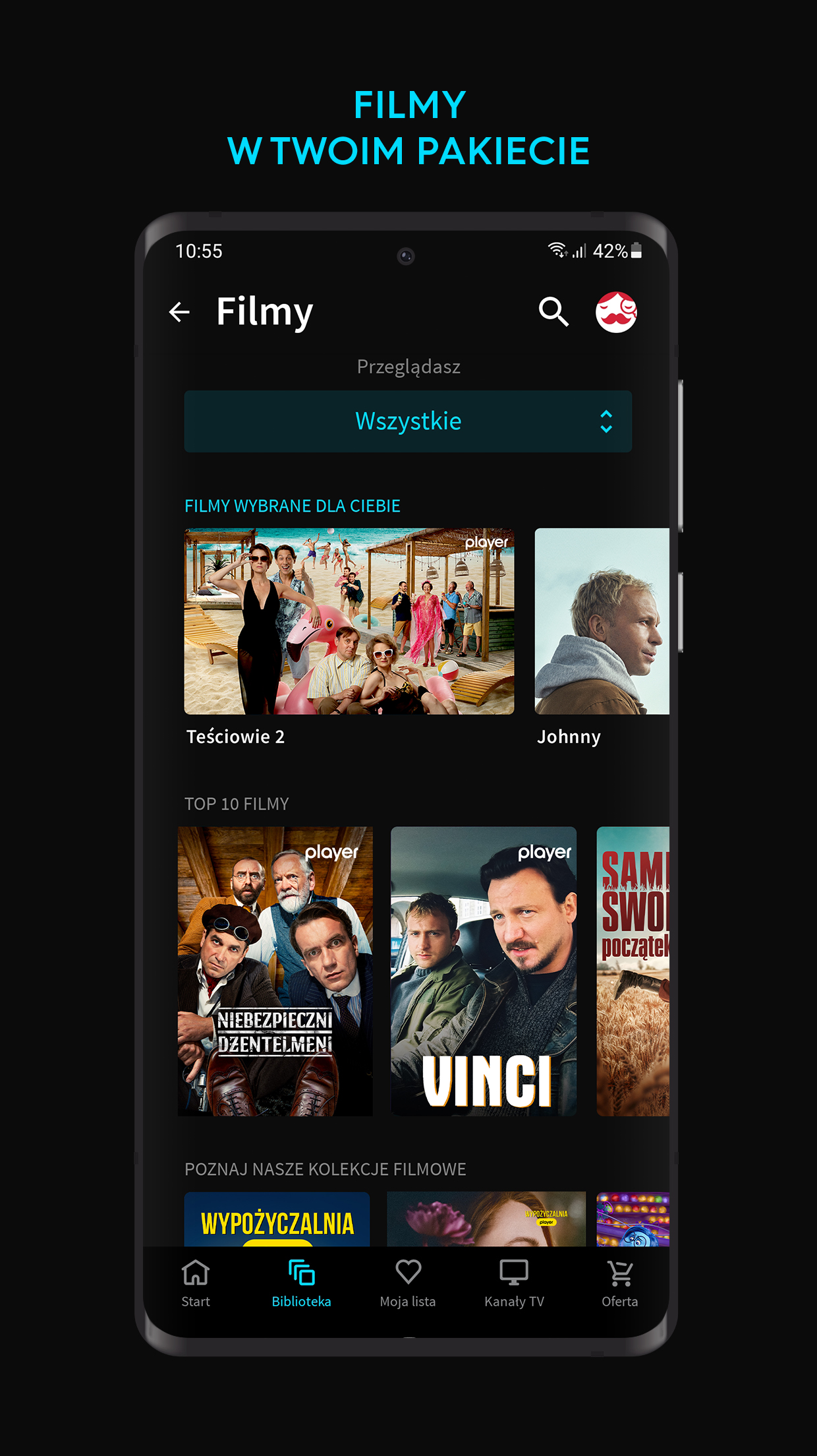Der universellste lokale VOD-Dienst in Polen. Hier finden Sie Filme, Serien, Unterhaltungsprogramme, Nachrichten, Sport, Dokumente. Player ist auch eine umfangreiche Bibliothek von Produktionen unter der Marke Player Original und Discovery + Originals, die Sie sonst nirgendwo sehen werden! Verwenden Sie das Paket mit Verwandten und Freunden. Innerhalb eines Abonnements können Sie bis zu fünf Profile einrichten. Sie können Ihre Lieblingssendungen auf zwei Geräten gleichzeitig ansehen – Sie selbst, die Serie oder das Spiel, und die andere Person den Film!