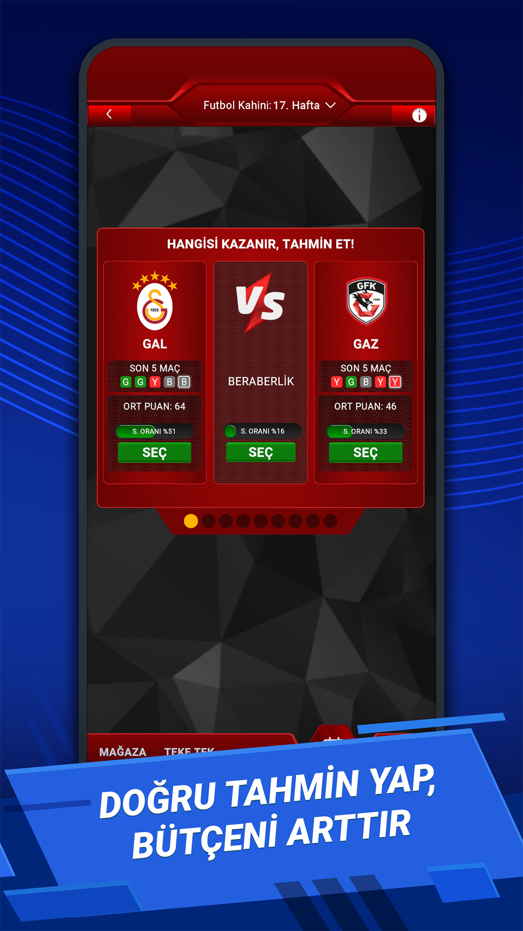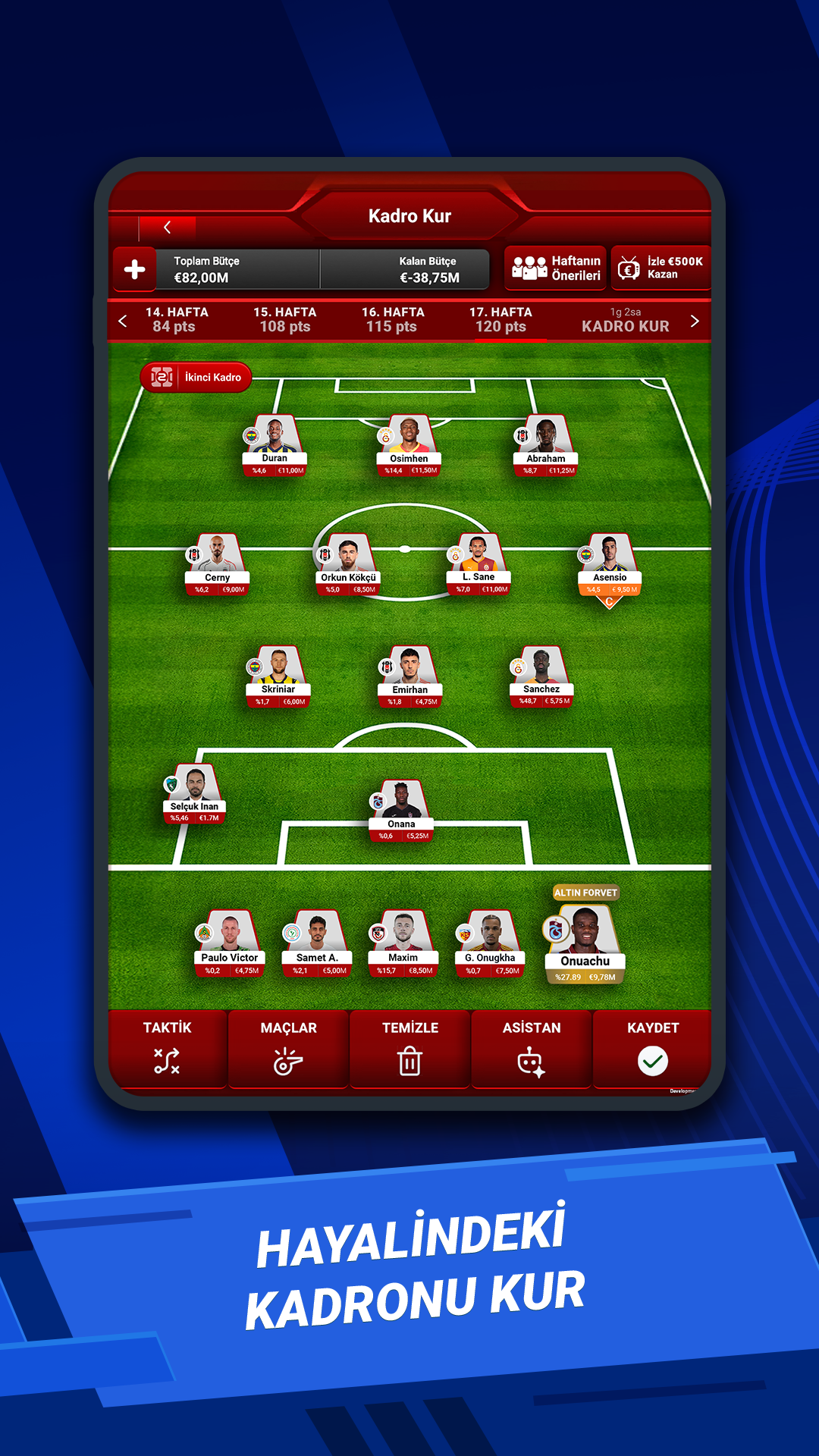 Wenn Galatasarays Icardi oder Osimhen ein Tor schießen, erhältst du Punkte. Wenn Fenerbahçes John Duran oder Fred eine Vorlage geben, erhältst du ebenfalls Extrapunkte. Wenn Beşiktaş-Torhüter Mert Günok kein Gegentor schießt, erhältst du Extrapunkte. Wenn Trabzonspors Visca auf dem Platz effektiv ist, steigen deine Punkte. Jede Woche, jedes Spiel, jeder Live-Spielstand und jedes Ergebnis kann deinen Spielverlauf verändern.