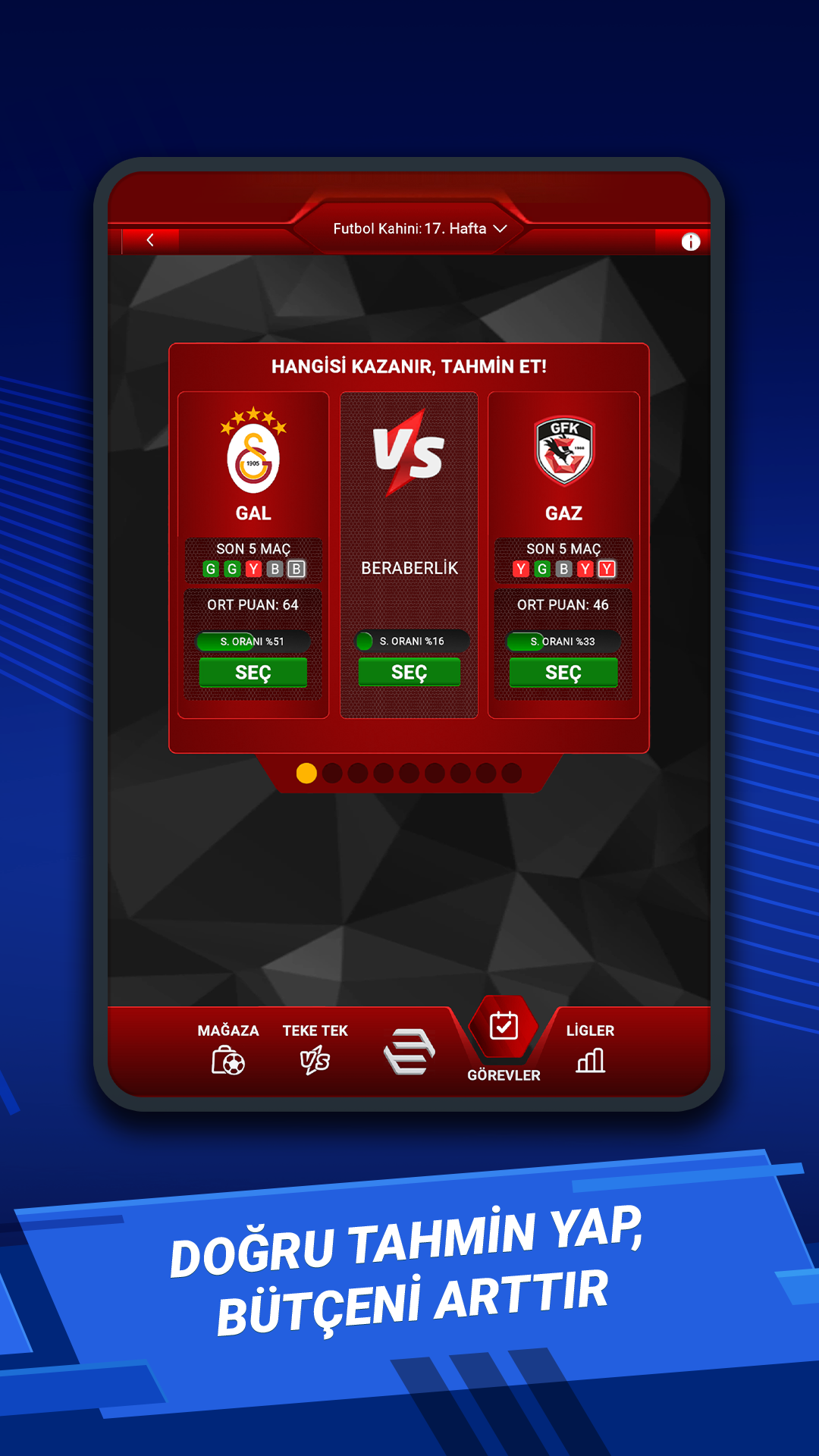 Social League ist ein Fantasy-Football-Spiel, das auf Live-Spielergebnissen und echten Super-League-Daten basiert. In diesem Spiel verschaffen Ihnen Ihr Fußballwissen, Ihre Analyse, Ihre Taktik und Ihr Timing den entscheidenden Vorteil. Verpflichte Spieler der größten türkischen Fußballvereine wie Fenerbahçe, Galatasaray, Beşiktaş und Trabzonspor, baue deinen Kader auf und sammle Punkte basierend auf Echtzeit-Spielergebnissen. Jedes Tor, jede Vorlage und jeder Punkt eines Spielers wirkt sich direkt auf deine Punktzahl aus.