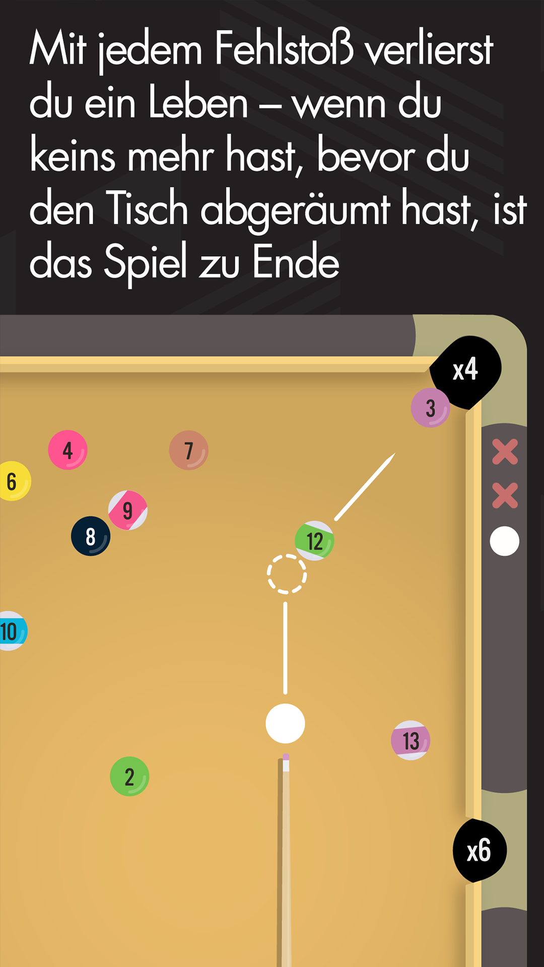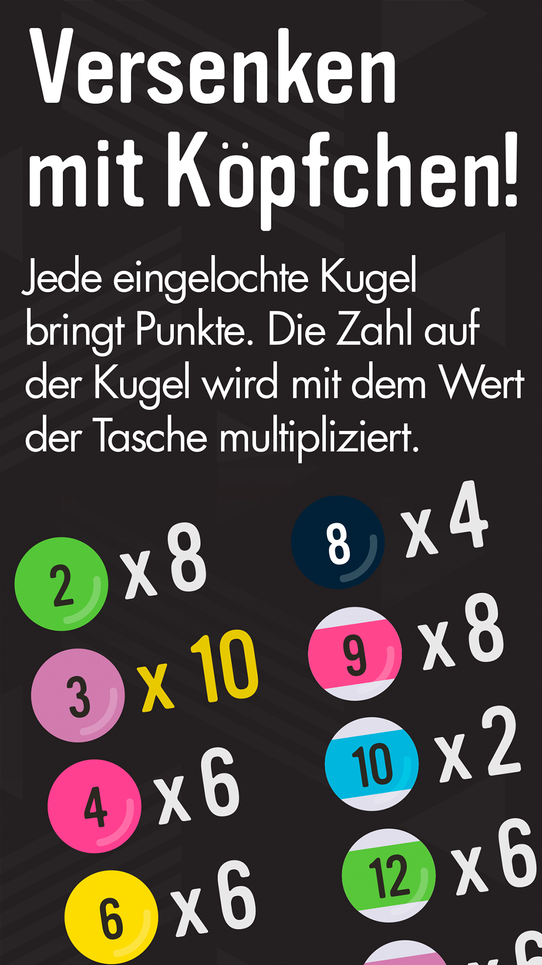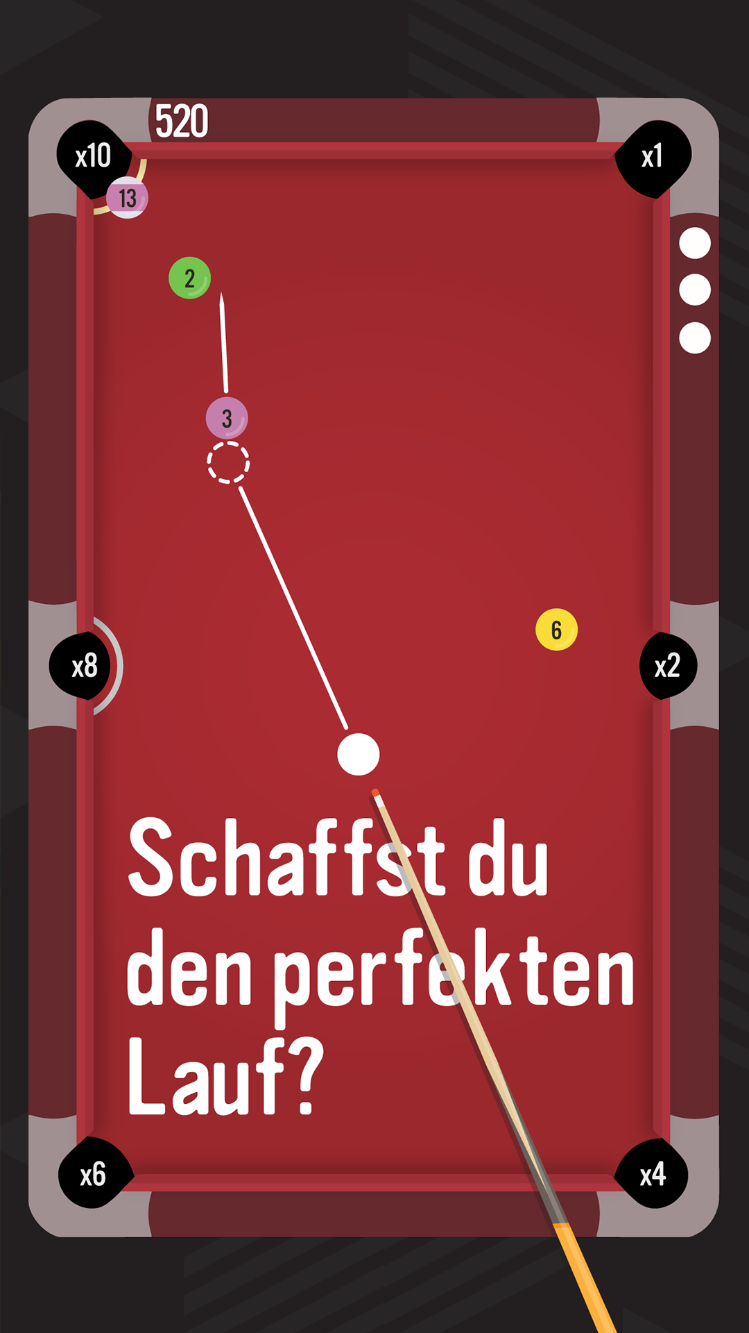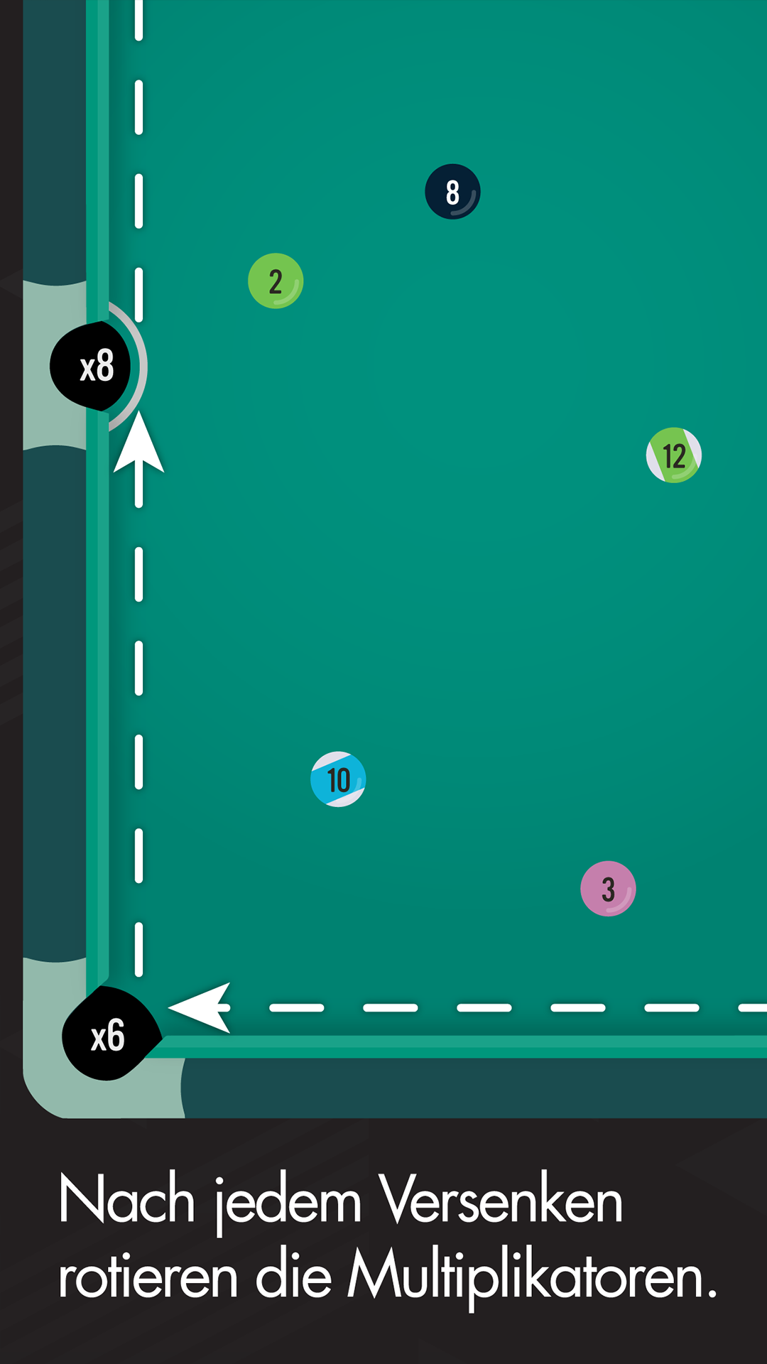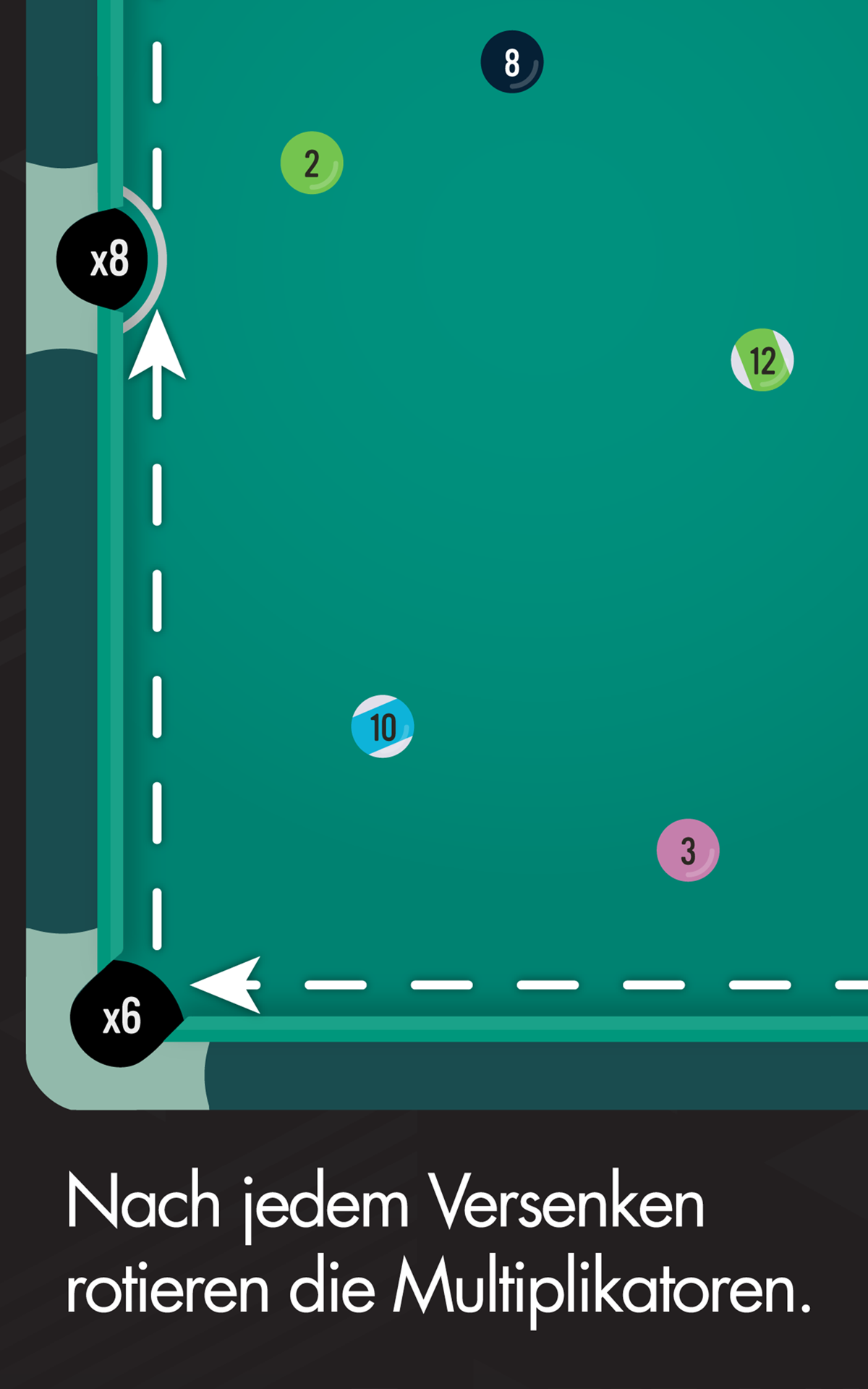 Die Rückkehr des Arcade-Poolbillards vom Schöpfer von Really Bad Chess und Flipflop Solitaire. Pocket-Run Pool kombiniert 8-Ball-Billard mit der spannenden Jagd nach dem Rekord. In Pocket-Run musst du natürlich alle Kugeln versenken, aber wo und wann du sie versenkst, ist von entscheidender Bedeutung! Mit jeder versenkten Kugel bekommst du Punkte je nach der Tasche, in der du die Kugel versenkt hast. Versenke mit Köpfchen! Aber pass auf, mit jedem Fehlstoß verlierst du ein Leben – wenn du keins mehr hast, bevor du den Tisch abgeräumt hast, ist das Spiel zu Ende Spiele gegen dich selbst, gegen die Welt oder gegen die Bank in einer Vielzahl von spannenden Spielmodi! Schaffst du den perfekten Lauf? Arcade-Poolbillard ist zurück! ------WAS WIRD GEBOTEN? – Spiele die Pocket-Run Pool-Modi Standard, Hoher Einsatz und Sofort-Turnier gratis! – Spiele gegen Spieler aus der ganzen Welt im Modus Sofort-Turnier um Gold! – Gehe volles Risiko unter allen möglichen Spielbedingungen (wie die hinterhältige Queue-Wand) im Modus Hoher Einsatz. – Schalte den Anstoß der Woche und alternative Hintergründe frei und entferne das Sofort-Turnier Startgeld mit einem In-App-Kauf – Verfolge die Statistiken für alle vier Modi. – Gewinne alternative Pool-Queues und Farbschemata im Modus Hoher Einsatz. ------EIN WORT VOM ENTWICKLER Ich habe schon immer Poolbillard geliebt und als ich mein erstes iPhone vor Jahren bekam, eröffnete sich mir die digitale Welt der Poolbillard-Spiele. Es gibt bereits zahlreiche Varianten, aber ein einfaches und unterhaltsames Billardspiel für Einzelspieler zu finden, war schwerer als gedacht. Ich fand schließlich eins, das mir gefiel, aber nach extensivem Spielen wurde es zu einfach, den Computer zu besiegen. Und da fiel es mir wie Schuppen von den Augen – spielt man gegen den Computer in einer Simulation, spielt man buchstäblich gegen einen Gott ... Ich meine damit, entweder der Computer macht es dir zu leicht (aus irgendeinem Grund), oder er spielt das perfekte Spiel und du verlierst deinen ganzen Einsatz. Mir dämmerte also, dass, wenn ich ein gutes Billardspiel für Einzelspieler möchte, ich einen neuen Weg gehen muss – und eine Variante erschaffen, die keinen Computergegner benötigt, die auf der Idee aufgebaut ist, Punkte zu erzielen, sich zu verbessern, Risiken einzugehen und sich einzigartigen und abwechslungsreichen Herausforderungen zu stellen. Pocket-Run Pool ist das Spiel, das dabei herauskam. Ich hoffe, es gefällt dir! – Zach
