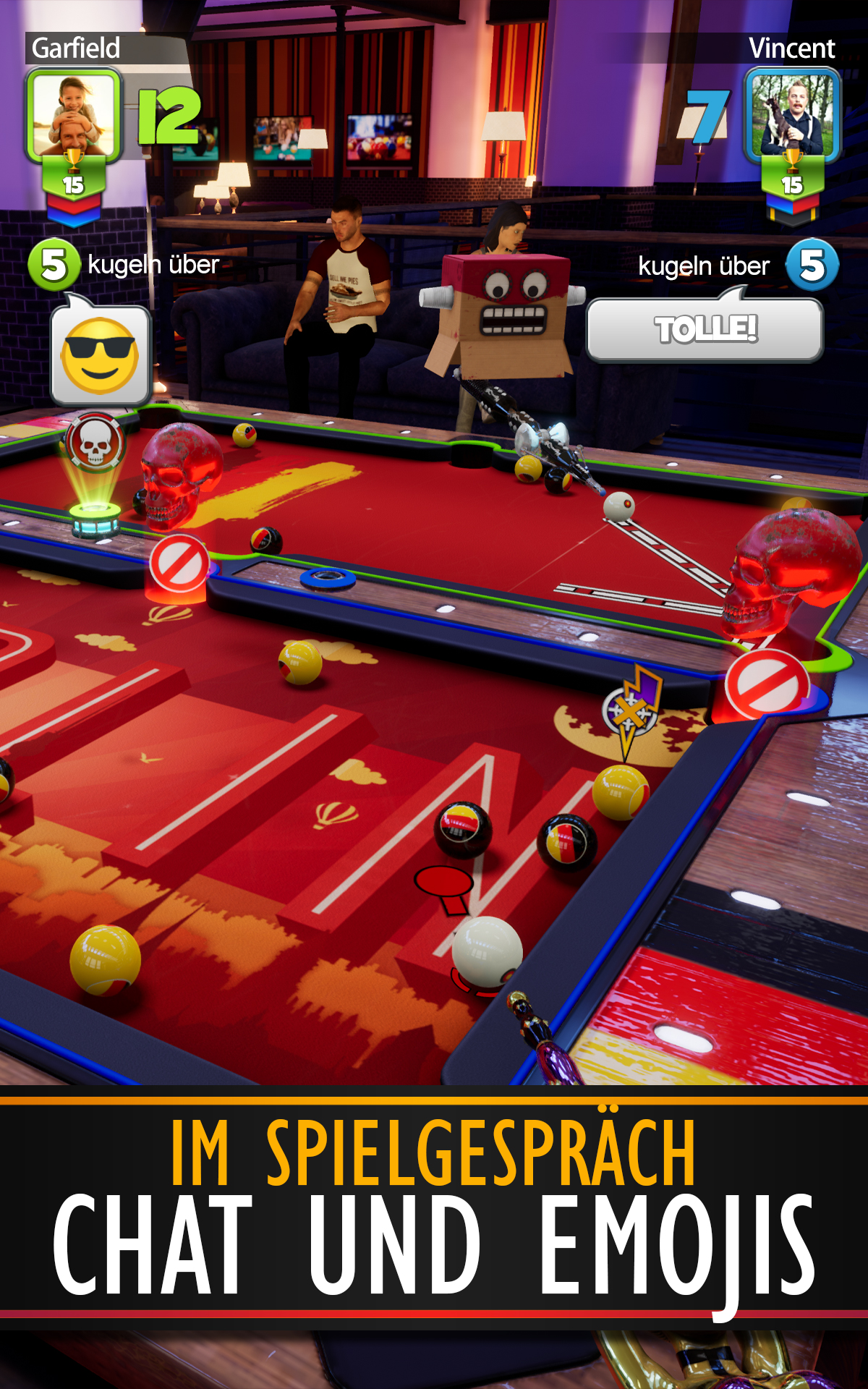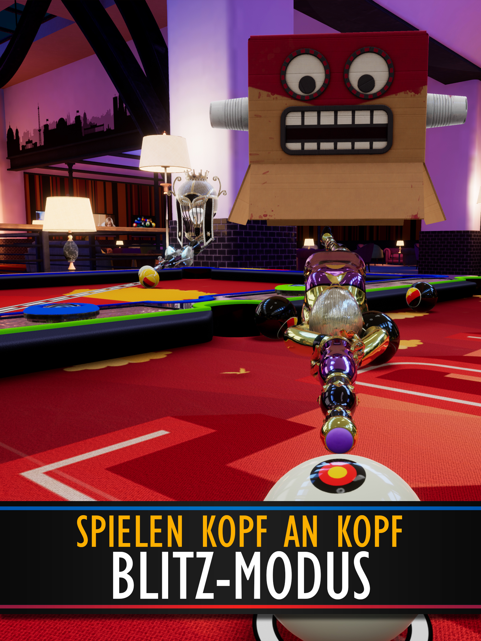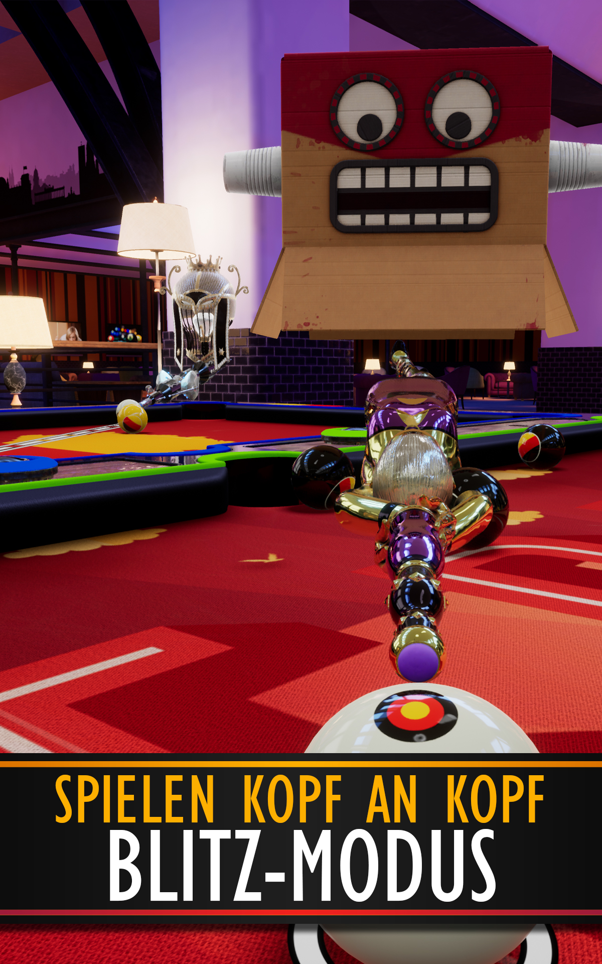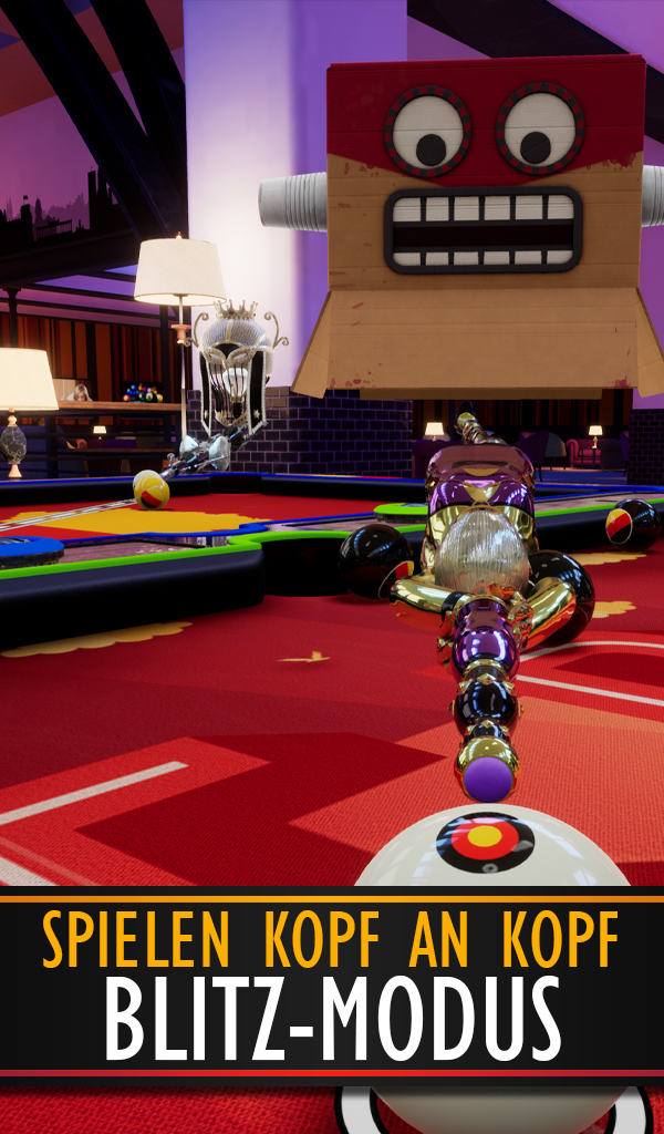 Fordern Sie Freunde heraus, nehmen Sie an Echtzeitturnieren teil und beweisen Sie Ihr Können im Pool Blitz – dem ultimativen Pool-Erlebnis! Mit ultrarealistischer Physik, atemberaubender 3D-Grafik und spannenden Spielmodi wie 8-Ball, 9-Ball und dem rasanten Blitz-Modus definiert Pool Blitz das Pool-Spielerlebnis neu. Genießen Sie außerdem nahtloses Spielen auf allen Geräten mit Cross-Play und verbinden Sie sich mit Spielern auf der ganzen Welt! HAUPTMERKMALE Atemberaubende 3D-Grafik mit fesselndem Echtzeit-Gameplay Einzigartiger Porträtmodus für einhändige Pool-Action 8-Ball-, 9-Ball- und Blitz-Modus für spannenden Multiplayer-Spaß Spielen Sie mit einem Konto und nutzen Sie Cross-Play zwischen Mobilgerät und Konsole Fordern Sie Freunde in 1-gegen-1-Spielen oder epischen Turnieren heraus Passen Sie Ihre Queues, Bälle und Avatar-Masken an und verbessern Sie sie Chat im Spiel: Scherze mit deinen Gegnern mithilfe lustiger Emojis! SPIELMODI FÜR JEDEN POOL-FAN 8-Ball-Pool Spielen Sie das authentischste 8-Ball-Billard in 1-gegen-1-Spielen oder nehmen Sie an Turnieren teil, um die Bestenlisten zu dominieren. Beherrsche deine Schläge, übertrumpfe deine Gegner und erklimme die Spitze. 9-Ball-Pool Testen Sie Ihre Präzision und Strategie in diesem rasanten Modus. Schlage die Bälle in numerischer Reihenfolge ein und besiege deine Gegner mit geschickten Schlägen. Egal, ob Sie ein erfahrener Profi oder ein Anfänger sind, 9-Ball bietet für jeden eine einzigartige Herausforderung. Blitzmodus Ein hochoktaniges Multiplayer-Billardspiel! Jeder Ball, den Sie werfen, wird an den Tisch Ihres Gegners geschickt – und dieser an Ihren! Mit Power-Ups wie Power Balls im Spiel werden Ihre Geschwindigkeit und Strategie auf die Probe gestellt. SPIELEN SIE MIT FREUNDEN UND CROSS-PLAY Laden Sie bis zu 7 Freunde ein, an Pool-Blitz-Turnieren teilzunehmen. Verfolgen Sie Live-Spiele, feuern Sie Ihre Freunde an (oder belästigen Sie sie!) und beweisen Sie, wer der Beste ist! Dank Cross-Play können Sie Ihre Freunde geräteübergreifend herausfordern, egal ob auf dem Mobilgerät oder auf der Konsole. REALISTISCHE POOLPHYSIK UND SCHÜSSE Unsere fortschrittliche Physik-Engine liefert ultrarealistische Ballbewegungen, sodass Sie Geschicklichkeits- und Trickschläge wie ein Profi ausführen können. Egal, ob Sie den 8-Ball-, 9-Ball- oder Blitz-Modus spielen, Sie werden die Authentizität bei jedem Schlag spüren. TURNIERE UND QUICKFIRE-MODI Nehmen Sie an Quickfire-Turnieren teil und erleben Sie schnelle Wettbewerbe in Echtzeit. Sehen Sie sich Live-Spiele an oder tauchen Sie ein, um sofort gegeneinander anzutreten! Sammeln Sie Siege und Belohnungen, um neue Queues, Bälle und exklusive Ausrüstung freizuschalten. WARUM POOL BLITZ? Benutzerfreundliches Schusssystem: Genießen Sie die Präzision des 3D-Pools mit einfachen 2D-Steuerelementen. Sammeln und verbessern: Schalten Sie eine Vielzahl von Hinweisen und Spezialfähigkeiten frei, um Ihre Schläge zu perfektionieren. Scherze und Chat: Verwenden Sie lustige Emojis, um nach jedem Spiel mit Ihren Gegnern zu kommunizieren. Cross-Play: Nahtlose Multiplayer-Action auf allen Ihren Geräten. Ganz gleich, ob Sie den perfekten Break anstreben, Trickwürfe hinlegen oder Turniere dominieren möchten, bei Pool Blitz ist für jeden etwas dabei. Zeigen Sie Ihr Können, schlagen Sie Ihre Gegner aus und schlagen Sie die Konkurrenz in die Luft! Laden Sie Pool Blitz jetzt herunter und beginnen Sie Ihre Reise zur Pool-Legende! (Zum Spielen ist eine Netzwerkverbindung erforderlich.)