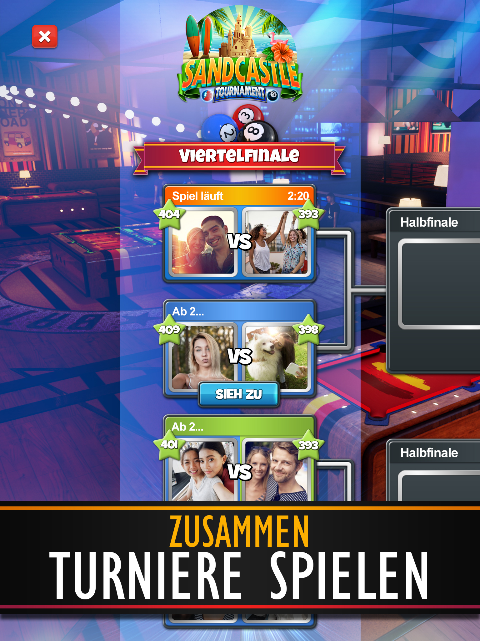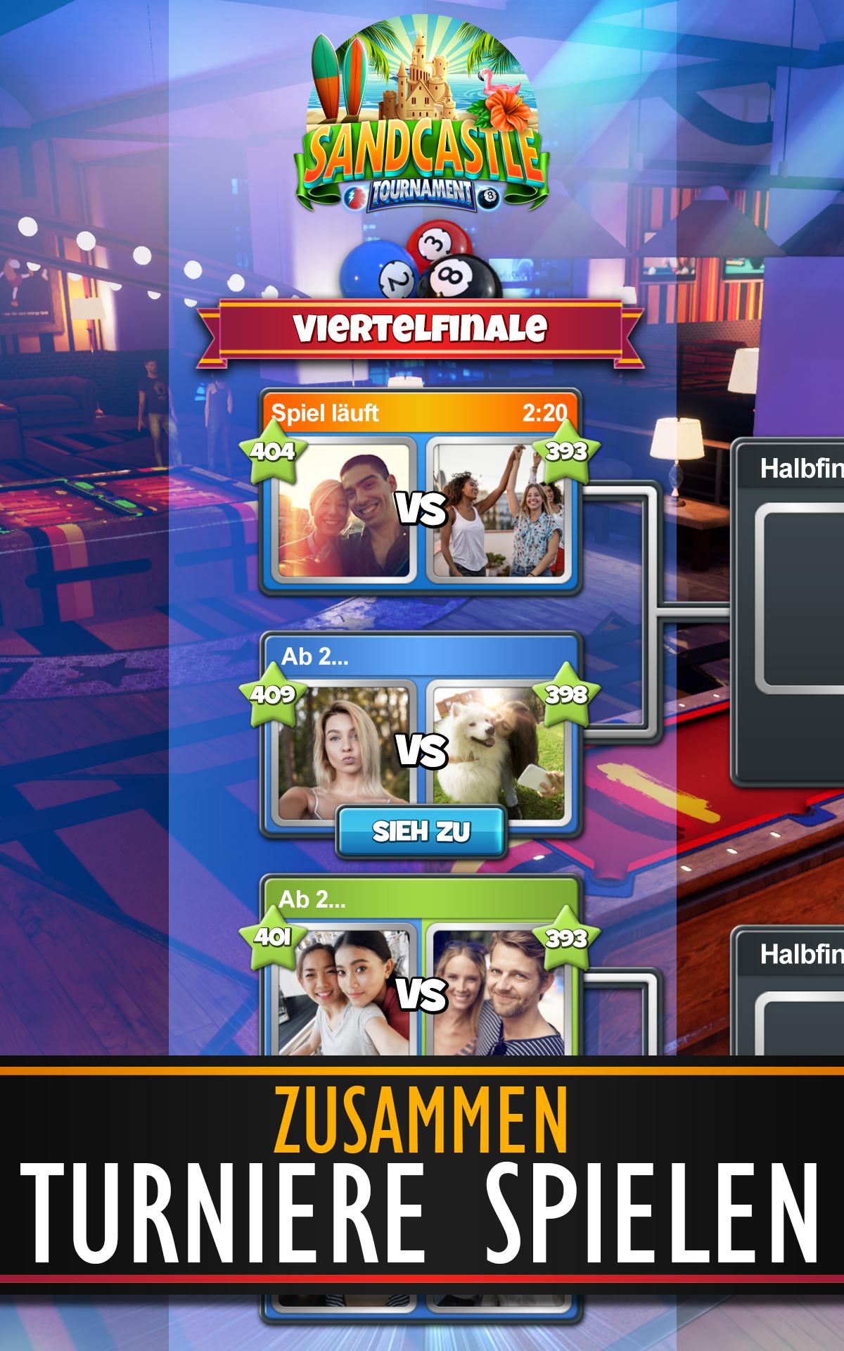Pool (Paketname: com.CherryPopGames.PoolNationClash) wird von Cherry Pop Games entwickelt und die neueste Version von Pool Blitz 2.4.26494 wurde am 24. März 2026 aktualisiert. Pool Blitz liegt in der Kategorie von Sportspiele. Sie können alle Apps von dem Entwickler der Pool Blitz durchsuchen. Derzeit ist diese APP kostenlos. Diese App kann auf Android 6.0+ auf APKFab oder Google Play heruntergeladen werden. Alle APK/XAPK Dateien auf APKFab.com sind original und 100% sicher, schnell herunterzuladen.