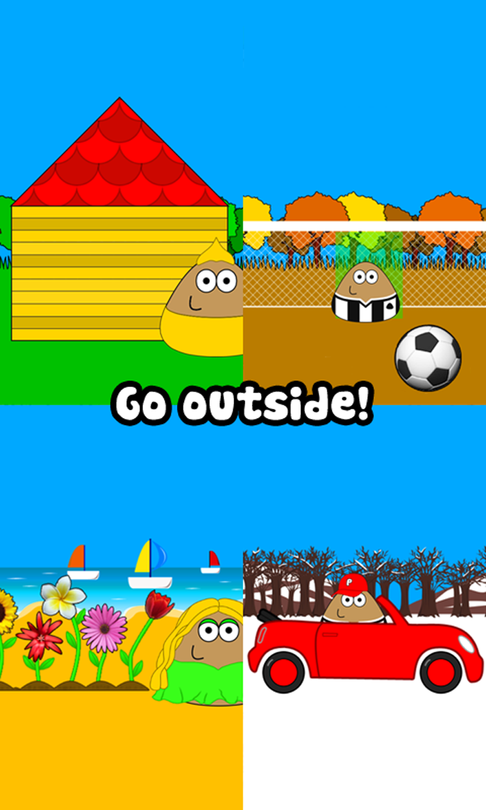 Do you have what it takes to take care of your very own alien pet?! Feed it, clean it, play with it and watch it grow up while leveling up and unlocking different wallpapers and outfits to satisfy your unique taste. How will YOU customize your POU? * Feed and take care of Pou, and watch it grow! * Play Games in the Game Room and collect Coins! * Experiment with Potions at the Lab! * Customize Pou's appearance! * Try out new Outfits, Hats and Eyeglasses! * Customize each room's Wallpaper! * Unlock Achievements and Special items! * Visit and play with your friends! * Talk to Pou and listen back! We're always listening to your suggestions to improve Pou and add new stuff! If you have any issue with the game, just contact us and we will help you! (we can't reply to comments) http://help.pou.me! :) Pou is available in English, French, Spanish, Catalan, Portuguese, Italian, German, Dutch, Danish, Polish, Hungarian, Romanian, Czech, Slovak, Russian, Japanese, Korean, Chinese, Persian and Arabic.