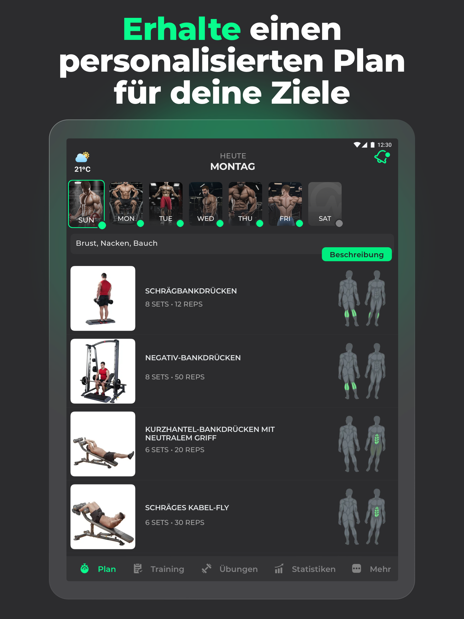 Beginnen Sie noch heute Ihre Fitness-Reise! ProFit bietet Gym- und Home-Workouts für Männer und Frauen an. Nutzen Sie unseren Trainingsplaner und genießen Sie HIIT-Workouts, Kraftübungen und Gewichtheben als Muskelbooster. ProFit ist mehr als nur eine Trainings-App. Unsere zuverlässige und benutzerfreundliche Anwendung dient als Ihr persönlicher Fitnesstrainer, der Ihnen rund um die Uhr zur Seite steht, jede Minute bei jedem Fitnessstudio oder Heimtraining. Die App funktioniert auch als Workout-Tracker, der Ihre Leistung und Ihren Fortschritt bei der Gewichtsverfolgung verfolgt und analysiert. Egal, ob Sie Gewichte verfolgen oder Kraft aufbauen möchten, Sie haben erstaunliche Trainingsprogramme in Ihrer Handfläche. Mit ProFit finden Sie jeden Tag eine neue und einzigartige Art, sich zu bewegen. Probieren Sie heute ein 7-Minuten-Training aus, morgen ein Bauchmuskeltraining und planen Sie für nächste Woche ein Training im Fitnessstudio. So schnell vergehen die Tage mit Ihrem neuen Fitnesscoach. Verwenden Sie beliebte Social-Media-Plattformen, um Ihre Fortschritte mit Freunden zu teilen. Mit ProFit haben Sie einen 24-Stunden-Fitnessclub in Ihrem Telefon. Werden Sie stark und fit und haben Sie Spaß dabei. Willkommen auf Ihrem eigenen Planeten – Fitness! Merkmale: - Effektive Übungen für alle Muskelgruppen, einschließlich Beine, Bauch, Rumpf und Arme - Finden Sie ein Training für Männer und Frauen - Jede Übung wird mit einer detaillierten Beschreibung geliefert, die Ihnen hilft, sie im Handumdrehen zu meistern - Visuelle Anleitungen für jede Übung in Form von Bildern und Videos helfen Ihnen bei der Durchführung der Übungen - Siehe begleitende Bilder der beteiligten Muskeln für jede Übung - Legen Sie Ihre Ziele in der App fest und genießen Sie voreingestellte Workouts, die Sie Ihrem Ziel näher bringen - Wenn unserer App etwas fehlt, fügen Sie Ihr eigenes Training hinzu und fügen Sie Ihre benutzerdefinierten Übungen hinzu - Das integrierte Tagebuch und der Übungstracker helfen Ihnen, jedes Training, jede Wiederholung, jeden Satz, jedes Gewicht und jede Übung im Auge zu behalten - Unser integrierter Timer und Kalender machen jedes Training effizienter und effektiver und helfen Ihnen, Ihren Zeitplan im Auge zu behalten, indem sie als Trainingsplaner dienen - Verfolgen Sie alle Ihre vergangenen Workouts mit unserem Fitness-Workout-Planer, genießen Sie die Analysefunktion und sehen Sie sich interaktive Diagramme Ihrer Leistung an, um den Fortschritt zu sehen - Trainieren Sie zu Hause oder nehmen Sie ProFit mit ins Fitnessstudio - Schneller Kundensupport, wann immer Sie etwas brauchen - Die App wird ständig aktualisiert und neue Funktionen werden hinzugefügt, um Ihren Bedürfnissen gerecht zu werden - Befolgen Sie die Ernährungspläne und Rezepte von ProFit, um bessere Ergebnisse zu erzielen - Unsere Trainingspläne und -programme werden von erstklassigen Personal Trainern erstellt und kuratiert - Ihr personalisiertes Trainingsprogramm lässt keine Muskelgruppe aus