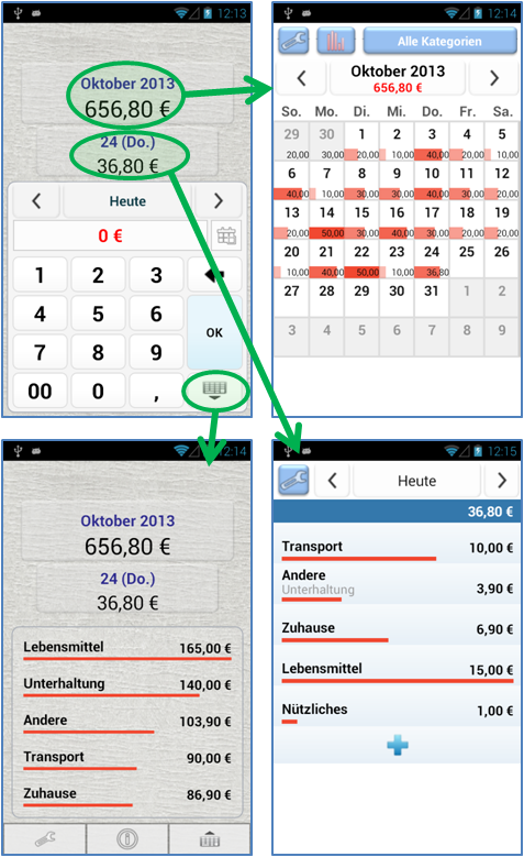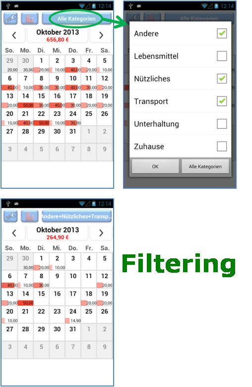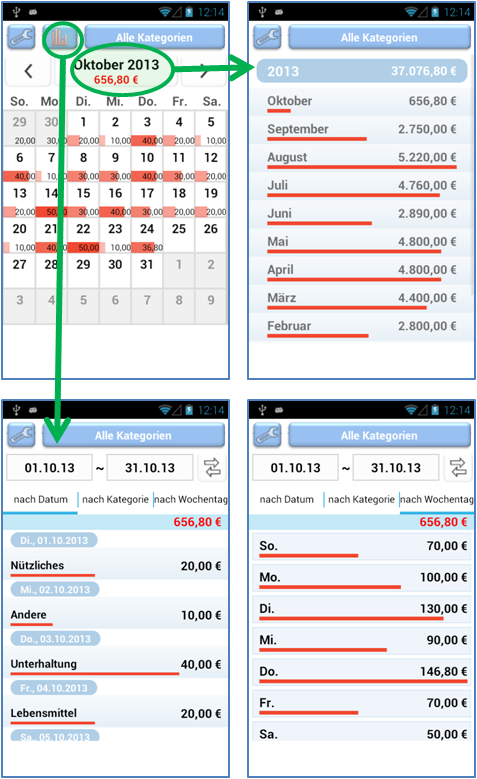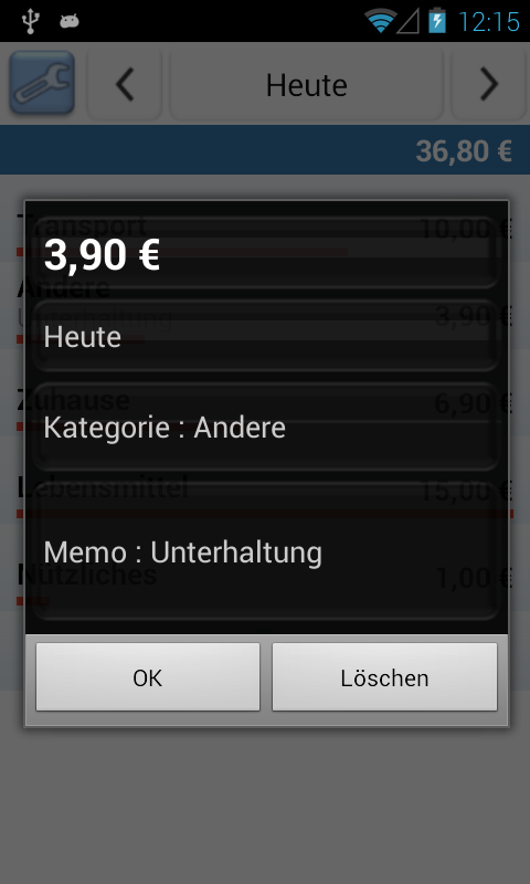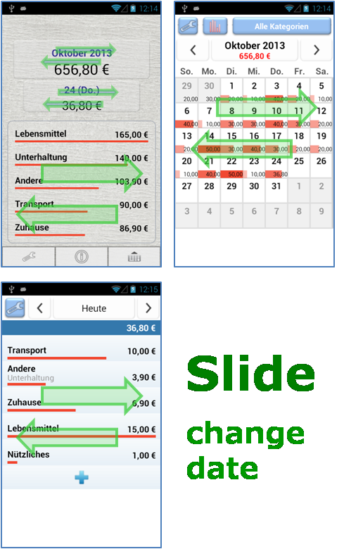 Schnell, einfach und leicht!!! Schnell Kosten Manager --------- Wenn Sie "http://escapps.blogspot.kr/" besuchen, können Sie sehen, das Bild-basiertes Handbuch. --------- Sind Sie auf der Suche nach - Einfache Ausgaben-Analyse? - Einfache Kosten-Tracker? - Schnelle Budget Tracker? --------- Sie können auf einen Blick, wie viel Sie durch den Kalender verbracht sehen. Schnelle und einfache Ausgabeposten Eingabe. Diese App nicht über ein Einkommen Feld. Just for Aufwendungen. Die meisten Menschen wissen bereits, ihr Budget. Aus diesem Grund können Sie diese App sehr einfach zu verwenden. --------- Eigenschaften - Quick Artikel Eingabe - Kalender (Grafik bieten und Zahlen) - Insgesamt verbrachte Liste - Sowohl ein Kalender und insgesamt verbrachte Liste kann nach Kategorien filtern. - Kann sortieren Kategorie (alphabetisch, häufig verwendeten und zuletzt verwendeten) - Daten-Backup / Restore, um Spreadsheet-Datei exportieren - Slide(Drag) : change month in a calendar, change date in a daily view ============================= Quick, Simple and Easy!!! Quick Expense Manager --------- If you visit "http://escapps.blogspot.kr/ ", you can see the Image-based manual --------- You can see at a glance how much you have spent through the calendar. Quick and simple expense item entering. This app do not have a income field. Just for expenses. Most people already know their budget. For this reason, you can use this app very easily. --------- Features - Quick item entering - Calendar (provide graph and numbers) - Total spent list - Both a calendar and a total spent list can filtering by category. - Can sort category (alphabetically, frequently used and recently used) - Data backup/restore, export to spreadsheet file - Slide(Drag) : change month in a calendar, change date in a daily view