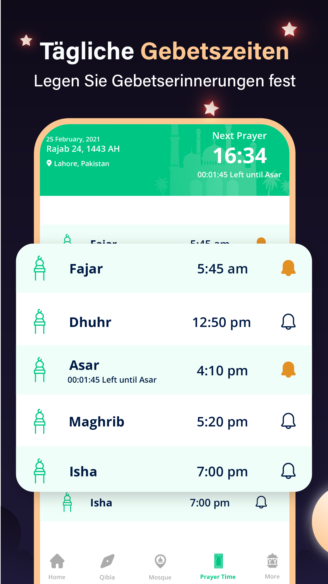 Accurate Qibla direction with GPS update Improved compass calibration for precision Added location-based prayer time support New Islamic calendar for key dates