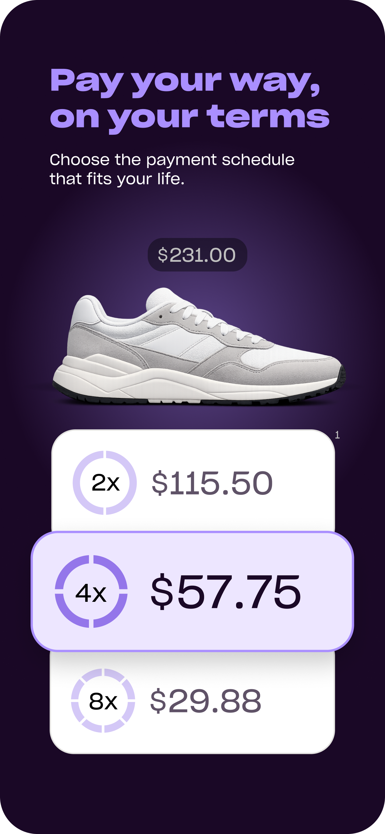 Mit Zip können Sie Ihre Zahlungen bei Ihren Lieblingsmarken aufteilen, egal ob Sie online oder im Geschäft einkaufen.¹ TEILEN UND GEDEITEN Mit Zip können Sie in Raten bezahlen. Teilen Sie Ihre Bestellung in 4 oder 8 Raten auf, die alle 2 Wochen fällig sind.²³ SPÄTER MIT ZIP BEZAHLEN, WO SIE WOLLEN¹ – ONLINE ODER IM GESCHÄFT Installieren Sie unsere App und nutzen Sie Zip praktisch überall¹, wo Sie einkaufen. Erstellen Sie eine virtuelle Karte in der App für einen schnellen und einfachen Bezahlvorgang mit Apple Wallet oder Google Pay oder holen Sie sich eine physische Zip-Karte.¹ DIE INTELLIGENTE ZAHLUNGSART Keine Bonitätsprüfung und keine Auswirkungen auf Ihre Kreditwürdigkeit. Wir erinnern Sie an fällige Raten, damit Sie jede Zahlung im Blick behalten. ZAHLUNGSTERMINE ÄNDERN Mehr Flexibilität beim Ausgeben bedeutet mehr Kontrolle über Ihren Zahlungsplan. Verschaffen Sie sich mehr Spielraum mit der Zip-App.¹ STEIGERN SIE IHRE KAUFKRAFT Wenn Sie regelmäßig und pünktlich zahlen, können Sie Ihre geschätzte Kaufkraft erhöhen.⁴ VERDIENEN SIE CASHBACK BEIM EINKAUFEN Bezahlen Sie mit der Zip-App und erhalten Sie Cashback für Lebensmittel, Reisen und Ihre Lieblingsgeschäfte.⁵ Kredite über Zip Pay Anywhere und Zip Checkout (einschließlich aller „powered by Zip“-Kredite) werden von der WebBank vergeben. Alle Kredite unterliegen einer Kreditgenehmigung. Es gelten die Berechtigungskriterien. Siehe Zahlungsbedingungen: Zip-Kreditbedingungen | Zip. Kredite an Einwohner Kaliforniens, mit Ausnahme von Krediten über Zip Pay Anywhere und Zip Web Checkout, werden gemäß einer Lizenz des California Lenders Law vergeben oder vermittelt. ¹ Zip kann nur für Einkäufe in den USA verwendet werden. Es gelten bestimmte Einschränkungen hinsichtlich Händlern, Produkten, Waren und Dienstleistungen. ² Bei einem Einkauf im Wert von 400 $ leisten Sie ab heute alle zwei Wochen vier Raten à 102 $ bei einem effektiven Jahreszins von 34,75 % und einer Gesamtsumme von 408 $. Eine Bearbeitungsgebühr von 8 $ wird zu Beginn erhoben und als Finanzierungsgebühr im Voraus bezahlt, wenn Sie heute Ihre erste Zahlung leisten. Die Bearbeitungsgebühren variieren und können je nach Kaufpreis zwischen 4,00 $ und 62,00 $ liegen. Die tatsächliche Höhe der Gebühr für Ihren Einkauf wird an der Kasse angezeigt. Die Schätzung der Ratenzahlung und des effektiven Jahreszinses versteht sich exklusive eventueller Steuern und Versandkosten. Finanzierung über Zip Pay Anywhere und Zip Checkout durch WebBank. Alle Kredite vorbehaltlich einer Kreditgenehmigung. ³ Bei einem Einkauf im Wert von 400 $ leisten Sie ab heute alle zwei Wochen acht Raten à 52,00 $ bei einem effektiven Jahreszins von 29,55 % und einer Gesamtsumme von 417 $. Eine Bearbeitungsgebühr von 17 $ wird zu Beginn erhoben und als Finanzierungsgebühr im Voraus bezahlt, wenn Sie heute Ihre erste Zahlung leisten. Die tatsächlichen Bearbeitungsgebühren variieren und können je nach Kaufpreis zwischen 8 und 60 $ (30 – 35 % effektiver Jahreszins) liegen. Die tatsächliche Gebühr für Ihren Einkauf wird an der Kasse angezeigt. Die Schätzung der Bearbeitungsgebühr und des effektiven Jahreszinses versteht sich exklusive möglicher Steuern und Versandkosten. Zip Pay Anywhere und Zip Checkout Finanzierung über Zip werden von WebBank angeboten. Alle Kredite unterliegen einer Kreditgenehmigung. ⁴ Ihre geschätzte Kaufkraft ist eine Schätzung Ihres möglichen Ausgabebetrags zu einem bestimmten Zeitpunkt. Sie ist nicht garantiert und wird von verschiedenen Faktoren beeinflusst. Zip oder WebBank können Ihre geschätzte Kaufkraft nach eigenem Ermessen reduzieren, auch wenn Sie zuvor einen offenen Saldo oder einen überfälligen Betrag hatten. Ihre geschätzte Kaufkraft ist kein offener Kreditrahmen. Jede Transaktion wird separat geprüft und genehmigt. Weitere Informationen finden Sie in den Allgemeinen Geschäftsbedingungen. ⁵ Die vollständigen Angebotsdetails und Allgemeinen Geschäftsbedingungen finden Sie unter https://zip.co/us/cash-back-tcs.
