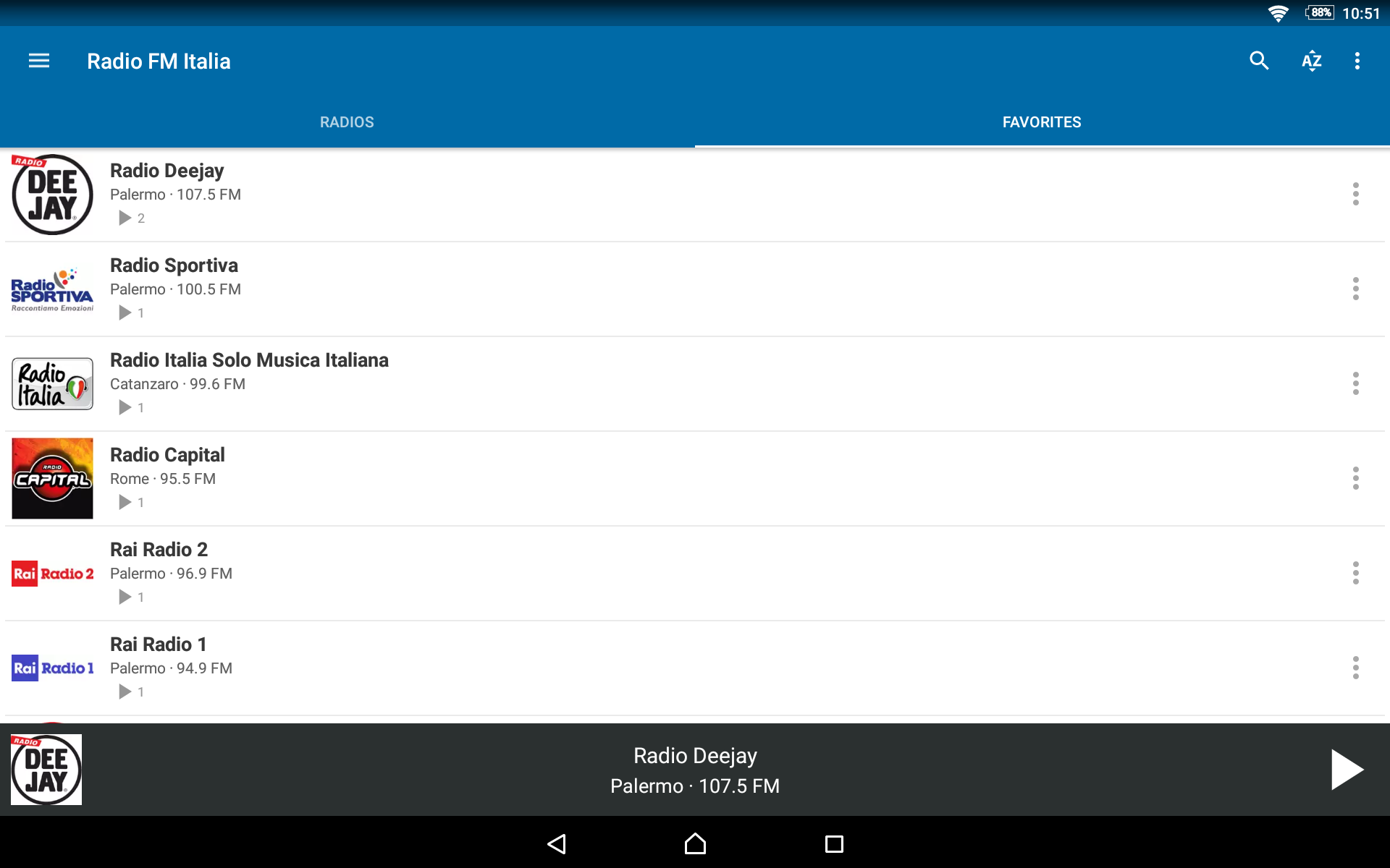 Hören Sie Ihre Lieblingsstationen, darunter Rai 1, RTL 102.5, RDS - Radio Dimensione Suono, Deejay, 24, Rai 2, Italia Solo Musica Italiana, 105 FM, Capital, Sportiva, m2o, Subasio, R101, Rai 3, Kiss Kiss Napoli, Virgin, RMC 1 Monte Carlo, Kiss Kiss Italia, Tele Stereo, LatteMiele, Italia Anni 60, Rete Sport, Maria Italia, Venice Classic, Ibiza, Cuore, Radicale, Discoradio, Freccia, Margherita Network, Kiss Kiss Hits, ...