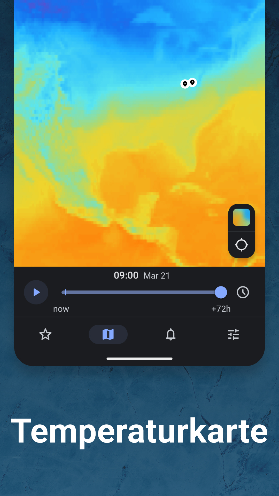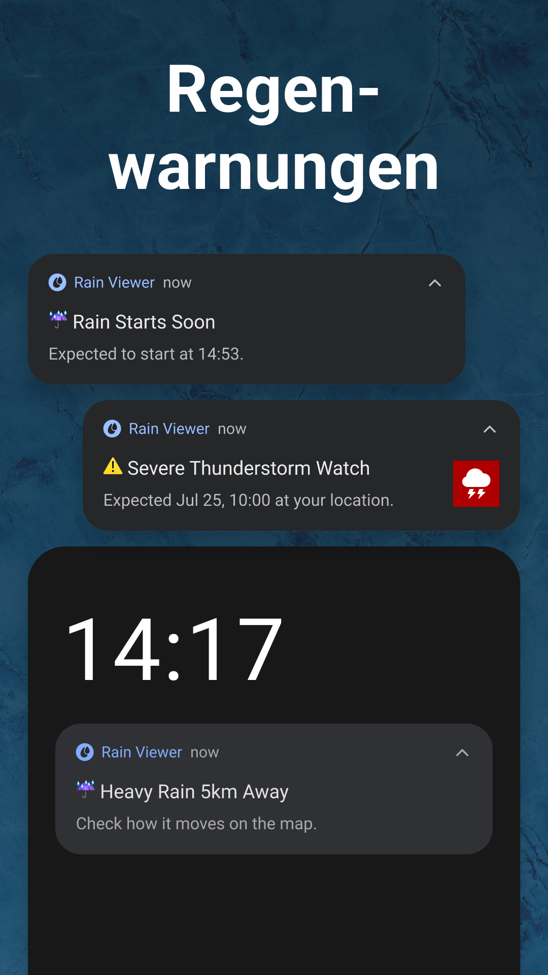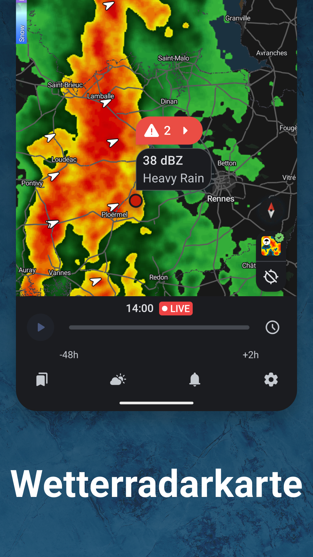 - Sturm-Tracker mit zeitgesteuerten Warnungen und exakten Ankunftszeiten