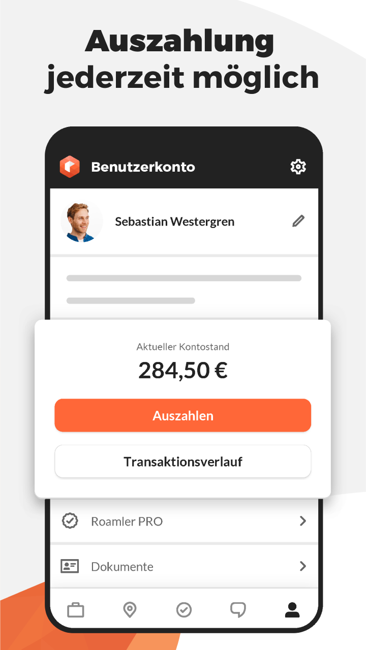 - Roamler deckt deine Haftpflicht- und Unfallversicherung während du Checks durchführst ab.
