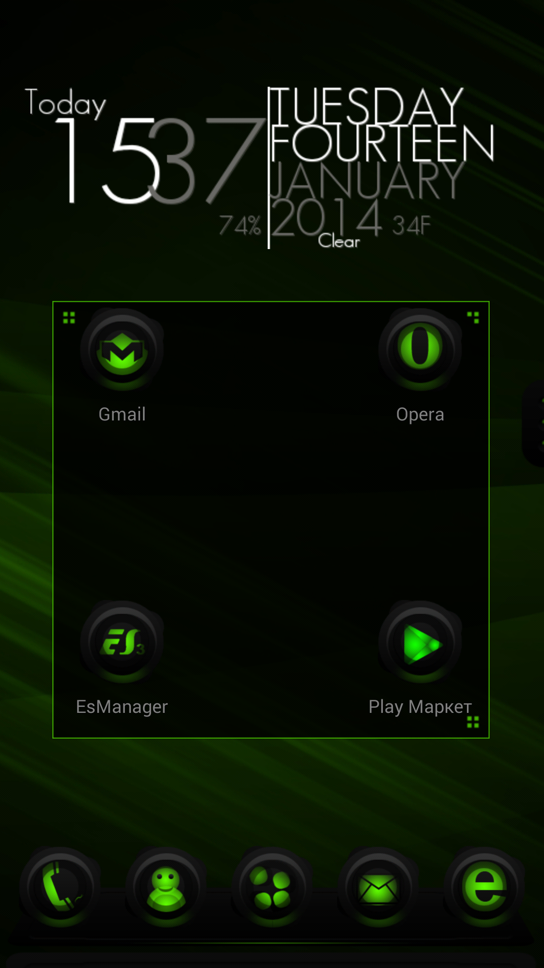 Press menu on your desktop - > Themes - > Phone -> Select theme RubberGreen.
