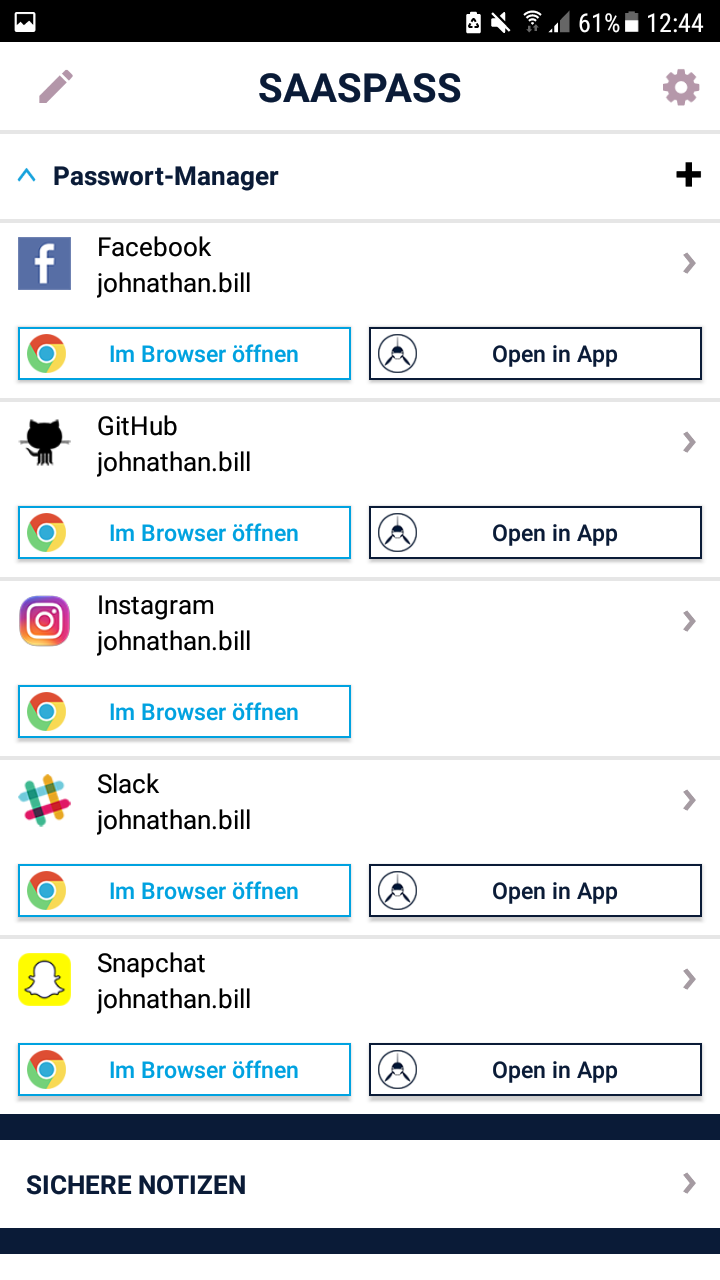 SAASPASS bringt die Zukunft der Sicherheit auf Android, indem die Codes von Password Manager und 2FA Authenticator nahtlos in einer einzigen App zusammengeführt werden. Dabei werden alle Sicherheitsvorkehrungen mit extremer Benutzerfreundlichkeit kombiniert. Passwort-Manager Über 60.000 vorkonfigurierte Websites und mobile Dienste mit AutoFill-Unterstützung. Authentifizierungscode Es stehen verschiedene Arten von Authentifizierungscodes zur Verfügung, und Unternehmen können den Zugriff auf den Authentifizierungscode für mehrere Personen freigeben. Passwortgenerator Hilft Ihnen, sichere Passwörter zu generieren Sicherheitsscan Identifiziert, welche Websites und Apps, die Sie im Passwort-Manager verwenden, doppelte Passwörter oder schwache Passwörter haben Sichere Notizen Sie können Notizen speichern und optional aktivieren, dass sie sich auf mehreren Geräten befinden und wiederhergestellt werden können. Wiederherstellung - Sicheres Sichern und Wiederherstellen SAASPASS bietet mehrere sichere Wiederherstellungsfunktionen, mit denen Sie auch SIM-Swap-Angriffe verhindern können. Auf diese Weise können Sie Ihre Authentifikatoren und Kennwörter auf Ihrem neuen Gerät wiederherstellen lassen, ohne dass Sie die mühsamen Einstellungen einzeln vornehmen müssen. Automatisch ausfüllen Sowohl der Passwort-Manager als auch der Authenticator-Code-Generator sind auf Ihrem Desktop über das Webportal (Login unter https://www.saaspass.com/sd/#/login) und die Browser-Erweiterung verfügbar. Sie verfügen über optionale AutoFill- und AutoLogin-Funktionen in Ihrer mobilen App sowie auf dem Desktop. Laden Sie die Browser-Erweiterung für Ihren Computer herunter, um die Magie in Aktion zu sehen. Für Chrome: https://chrome.google.com/webstore/detail/free-password-manager-aut/nhhldecdfagpbfggphklkaeiocfnaafm Für Mozilla Firefox: https://addons.mozilla.org/en-US/firefox/addon/saaspass-single-sign-on/?src=search - SAASPASS funktioniert standardmäßig offline - SAASPASS funktioniert auf mehreren Geräten und verfügt über Geräteverwaltungsfunktionen, mit denen Sie es sogar aus der Ferne deaktivieren können. - SAASPASS mit Nadel, Muster oder Fingerabdruck entsperren. - Watch Wear OS-Unterstützung ------ SAASPASS bietet auch Sicherheit für Mitarbeiter, Unternehmen, Entwickler, Administratoren und Computer. Entwickler können MFA-Services (Multi-Factor Authentication) in fertige Code-Snippets in mehreren Sprachen und SDKS integrieren. developer.saaspass.com Unternehmen können sich auf der Website www.saaspass.com für die Nutzung von MFA, SSO, dem Access Sharing Center, IAM-Lösungen, Directory Services und Adaptive Authentication anmelden. Unternehmen können On-Premise-, Cloud- und Hybrid-Anwendungen integrieren Das Identity & Access Management von SAASPASS kann zur Integration vieler Geschäfts- und Produktivitätsanwendungen einschließlich E-Mail- und Collaboration-Suites verwendet werden Sofortige Integration in über 60.000 Anwendungen