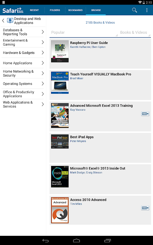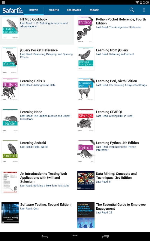 Safari to Go for Android takes many of the core features of the Safari Books Online platform and creates a streamlined interface for Android devices. And, it’s free! Now you can pick up where you left off from any Safari Books Online reading platform and have on-the-go access to your folders, bookmarks and recent books or videos! Android tablets can also take advantage of the larger screen sizes with a tablet optimized layout!