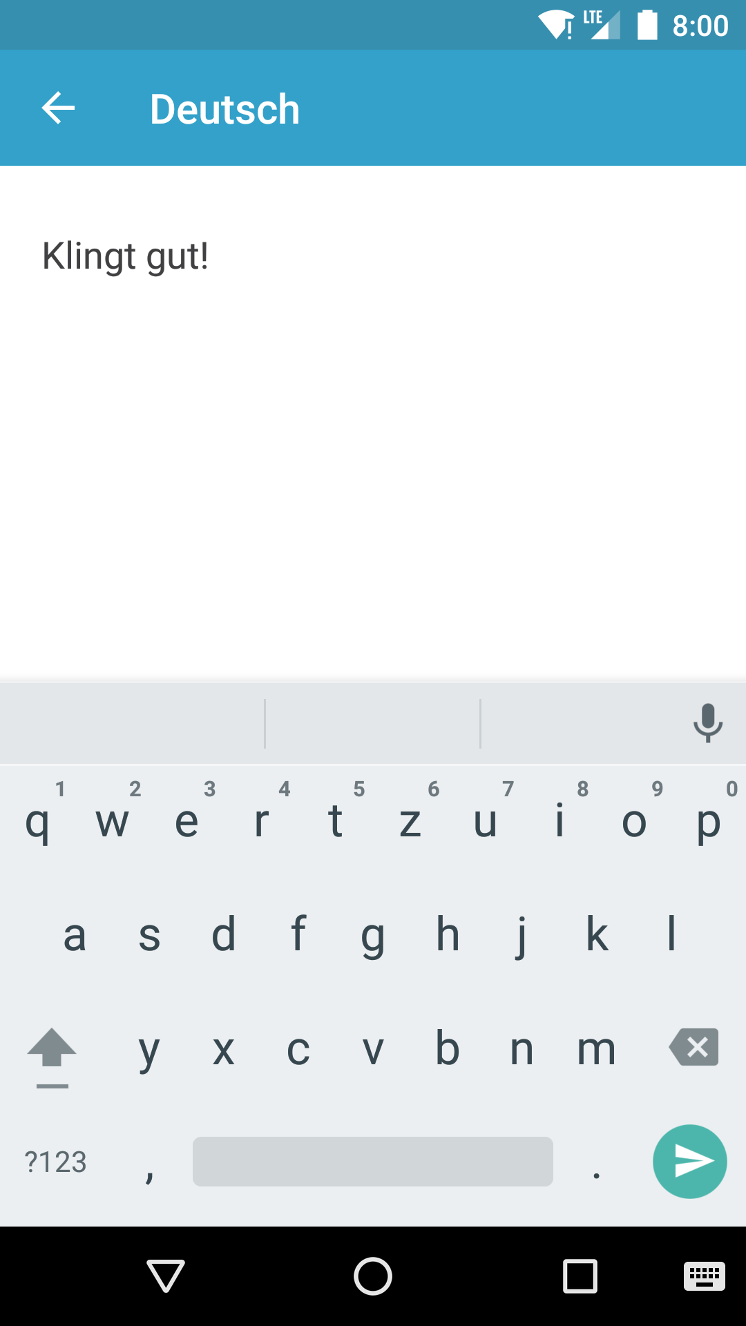 Tippen Sie auf eine Übersetzung und halten Sie diese gedrückt, um Ihre Unterhaltungen einfach per E-Mail, SMS, Facebook oder Twitter zu kopieren oder zu teilen.