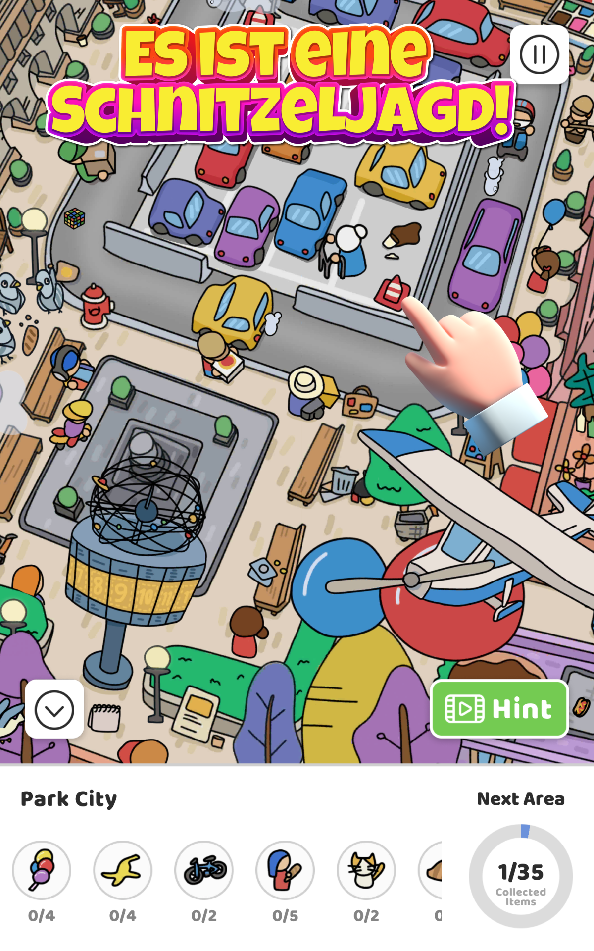 Willkommen bei der Schnitzeljagd! Wenn du gerne Versteckspiele magst und es liebst dich auf eine spannende Suche zu begeben, dann bist du hier genau richtig! Scavenger Hunt! ist ein Level über den anderen im Suchspiel-Genre – denn unsere Karten sind lebendig! Hier siehst du wie Kinder im Park spielen, Sportler trainieren und Omas die den Verkehr blockieren. Und das alles mit einem gemeinsamen Ziel - DICH von der Schnitzeljagd abzulenken! Suchspiele haben noch nie so viel Spaß gemacht! Suche, finde und sammle auf deiner Reise versteckte Objekte auf den Karten, um mehr Karten in diesem Suchspiel freizuschalten und so das nächste Level zu erreichen! Versteckte Bilder sind überall – ob unter einem Baum, neben der Oma oder auf dem Dach.. Pack die Lupe aus, zoom hinein und wische durch die Karte, um alle versteckten Objekte zu sammeln. Wenn Suchspiele dein Ding sind, solltest du Scavenger Hunt nicht verpassen! ▶ SPIELE die nächste Generation von Suchspielen. Das Sammeln versteckter Objekte war noch nie so spannend! ▶ WISCHE durch die Karte und sammle alle Gegenstände ein. ▶ HOL DIR mehr Karten, indem du alle versteckten Objekte sammelst. ▶ SCHALTE mit jedem geräumten Bereich wunderschöne neue Orte FREI!