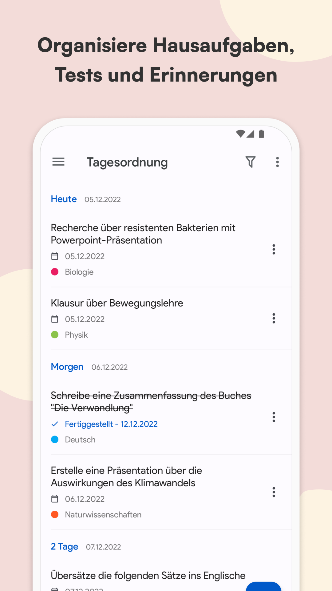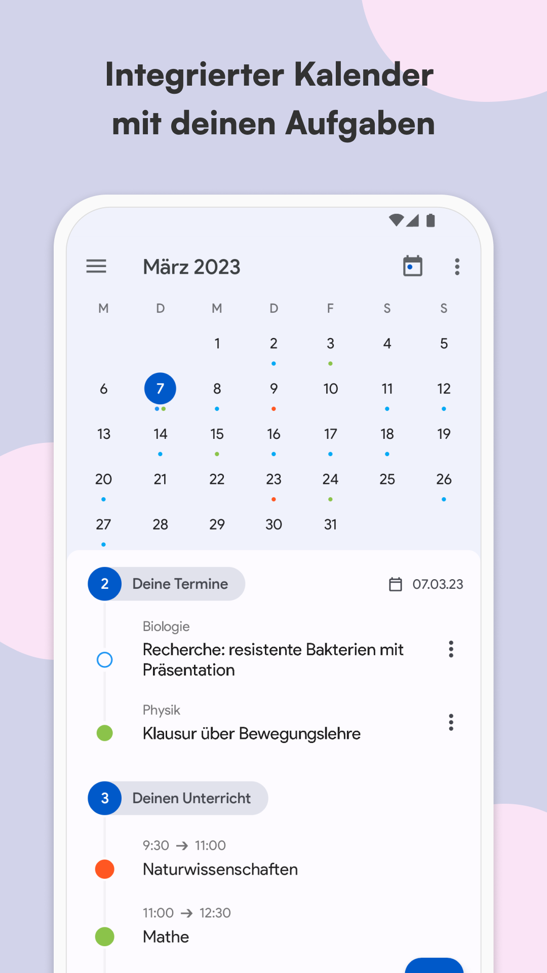Schulplaner und Stundenplan