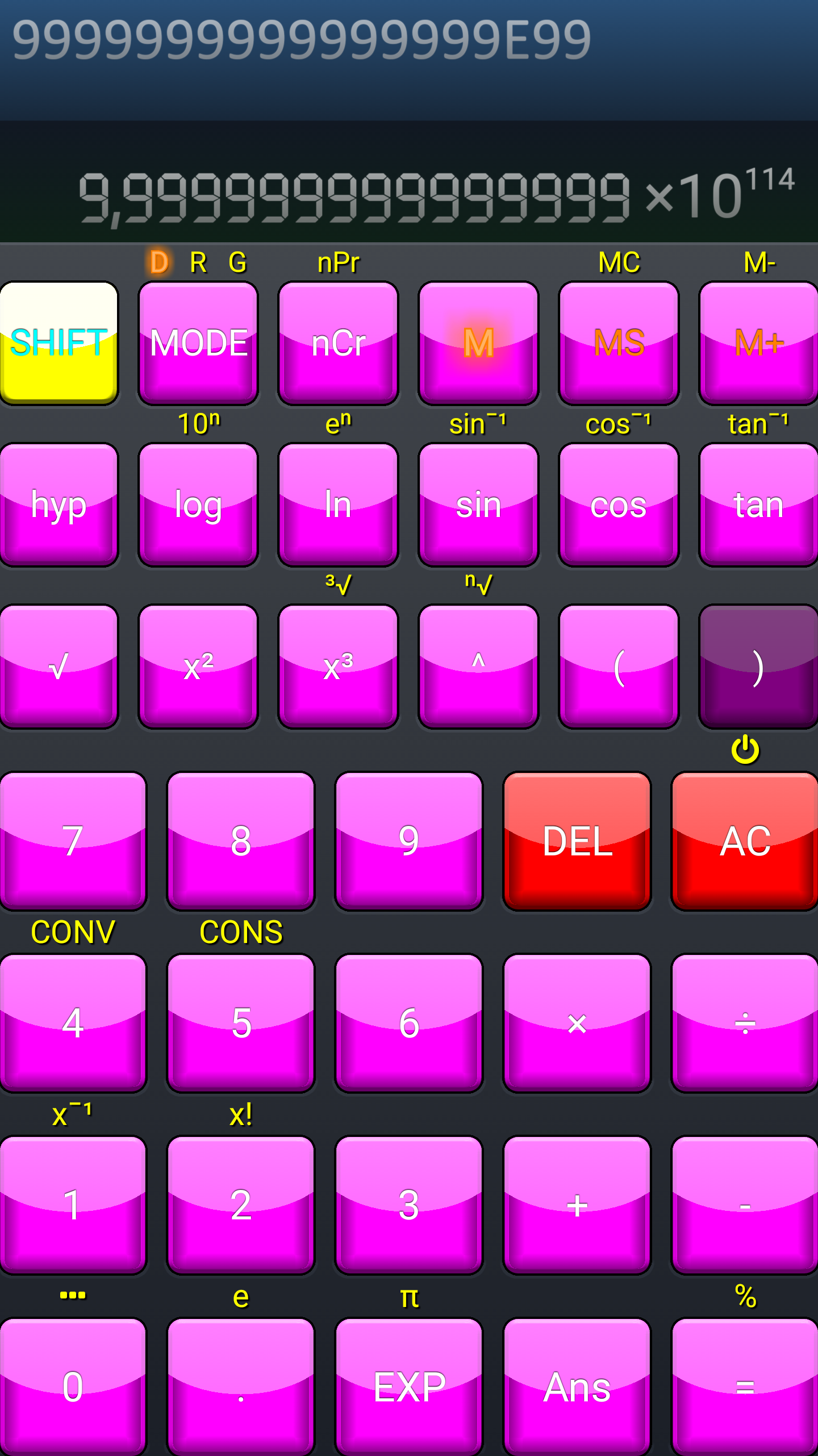 MoseratumApps wissenschaftliche Rechner geben Ihnen die Möglichkeit, komplexe Operationen durchzuführen , ohne die Spur der Operation zu verlieren, in der Lage, das Ganze zu sehen, wie lange es ist. Es enthält universelle Konstanten und Wandlermesseinheiten und auch ein Fehler-Handler benachrichtigt Sie, warum Sie nicht bestimmte Operationen durchführen kann (Operationen Divisor 0, Syntaxfehler , außer Kontrolle, etc ...) . Ermöglicht sowohl grundlegende Arithmetik, Geometrie, Trigonometrie und Wahrscheinlichkeits komplexe Operationen wie Addition, Subtraktion, Division, Multiplikation, Sines Cosinus, Tangens, Permutationen, Kombinationen, Logarithmen, Exponentialfunktionen, Logarithmen, Wurzeln, Potenzen, die Operationen mit Klammern, etc .. . Es hat auch Speicherung in Speichervariablen . Verfügbar in 49 Sprachen.