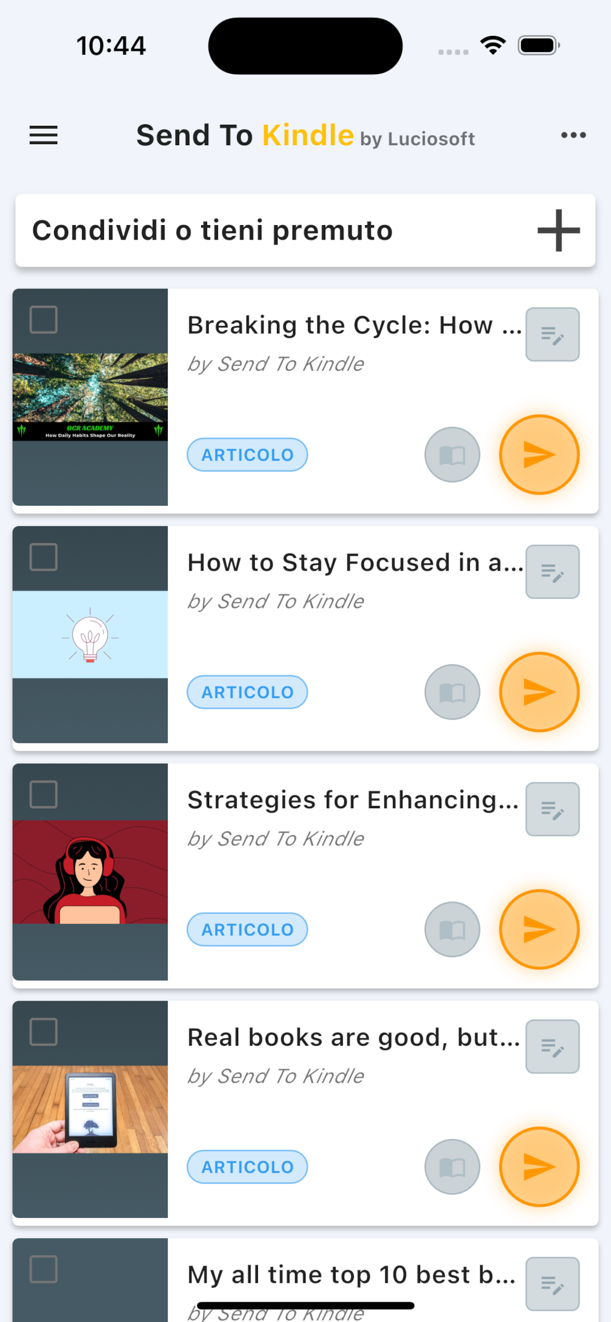 Send To Kindle (Paketname: com.luciosoft.sendtokindle) wird von Andrea Luciano entwickelt und die neueste Version von Send To Kindle 1.5.58 wurde am 4. April 2026 aktualisiert. Send To Kindle liegt in der Kategorie von Nachrichten & Zeitschriften. Sie können alle Apps von dem Entwickler der Send To Kindle durchsuchen und 136 alternative Apps zu Send To Kindle auf Android finden. Derzeit ist diese APP kostenlos. Diese App kann auf Android 7.0+ auf APKFab oder Google Play heruntergeladen werden. Alle APK/XAPK Dateien auf APKFab.com sind original und 100% sicher, schnell herunterzuladen.
