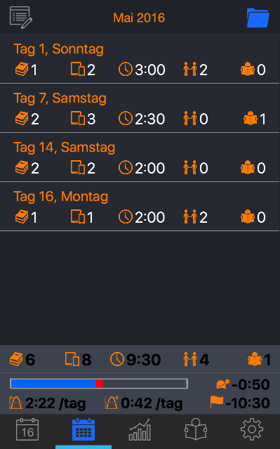 Es dauert eine einfache und bequeme Steuerung Ihrer Servicetätigkeit. Geschaffen, um perfekt auf das neue Modell Bericht anzupassen, Service Report wurde mit viel Liebe und Sorgfalt entwickelt, mit dem Wunsch, nützlich zu sein und einfach in den Dienst von Jehovas Zeugen durchgeführt zu verwenden. Sie können eine tägliche, monatliche und jährliche Rekord nehmen. Die Statistiken können Sie wissen, ob Sie Ihr Ziel Vorläufer oder persönliches Ziel tun. Und Sie können wissen, wie viele Stunden Sie täglich zu tun haben, das Ziel oder monatlich l Jahresziel zu erfüllen. Wählen Hilfspionierdienst 30 Stunden 50 Stunden, Allgemeiner Pionier oder Sonderpionier und die Anwendung wird Ihnen jederzeit informieren, wenn Sie vor oder hinter sind. Steuert Publikationen, Videos, Rückbesuche und Studien durchgeführt. Verwenden Sie die Stoppuhr Zeit automatisch zu zählen, wie Sie andere Werte aufzeichnen. Sie können auch die grafische Umgebung den eigenen Wünschen anpassen. Wir hoffen, dass Sie die Anwendung genießen und von Nutzen sein wird. Bitte zeigen Sie mir Fragen oder Anregungen, die Sie mich wollen. Auch, wenn Sie helfen wollen, dass ich es in eine andere Sprache übersetzen kontaktieren Sie mich. Mit freundlichen Grüßen und vielen Dank für diese App. * Diese Anwendung wurde nicht offiziell von Watch Tower Bible and Track (TM) entwickelt. Der Entwickler ist Zeuge Jehovas und hat diese gemeinnützige Anwendung mit Liebe und für den Gebrauch seiner Brüder und Schwestern auf der ganzen Welt entwickelt und gepflegt. Die Anwendung ist und wird weiterhin kostenlos sein und enthält keinerlei Werbung. * This application has NOT been officially developed by Watch Tower Bible and Track (TM). The developer is Jehovah's Witness and has developed and maintain this non-profit application with love and for free for the use of his brothers and sisters around the world. The application is and will continue been totally free and does not contain and will never contain any kind of advertising. App Icons developed by icons8.com and used under Creative Commons Attribution-NoDerivs 3.0 Unported License.