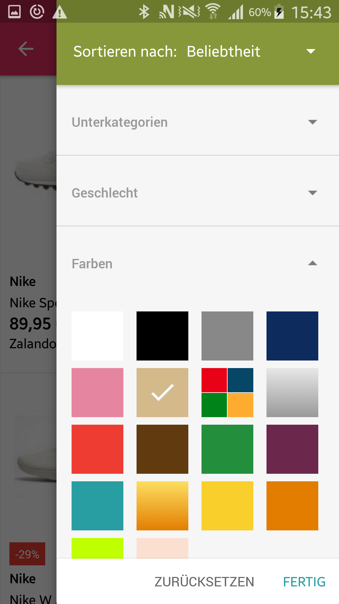 Marke, Farbe, Material, Größe oder dem Lieblingsshop einzugrenzen. Alternativ