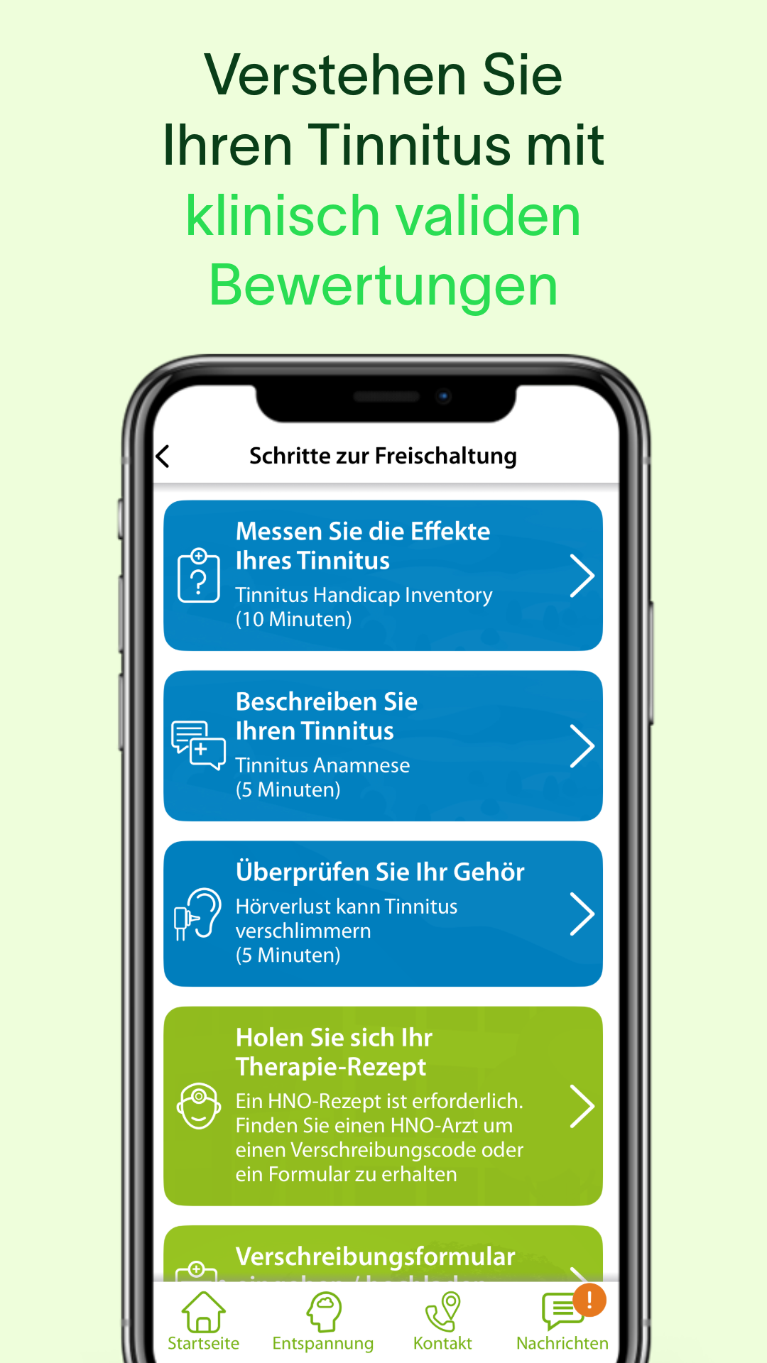 SilentCloud - Ihr individueller Weg zur Tinnitus-Linderung Ohrgeräusche können eine Herausforderung sein, aber Sie sind nicht allein. SilentCloud bietet einen klinisch validierten Ansatz zur Behandlung von Tinnitus zu Hause in Ihrem eigenen Tempo. Egal, ob Sie Entspannung, Bildung oder eine strukturierte Therapie suchen, SilentCloud bietet eine auf Ihre Bedürfnisse zugeschnittene Lösung zum Selbststudium. Unsere medizinische App integriert Bildungsinhalte, internetbasierte kognitive Verhaltenstherapie (iCBT) und Klangtherapien die Ihnen helfen sollen, die Kontrolle wiederzuerlangen. Sie erstellt einen persönlichen Behandlungsplan, der auf klinisch validen Bewertungen basiert, bei Bedarf persönliche Unterstützung durch einen Tinnitus-Experten vor Ort. Verwendungszweck, Kontraindikationen, Warnhinweise und Vorsichtsmaßnahmen sowie Anweisungen finden Sie hier: https://data.silentcloud.com/instructions/instructions.html Zu den kostenlosen Funktionen gehören: - Eine Tinnitus-Management-Reise unterstützt durch lokale Experten - Fragebögen für eine Tinnitus-Beurteilung und ein Hörtest - Ihre Ecke der Ruhe – ein Ort der Entspannung mit einer Bibliothek aus Klängen und Übungen - Ihr Tinnitus-Tutor – ein mundgerechter Leitfaden, um die Erkrankung besser zu verstehen Abonnementbasierte neuartige Therapien (Verschreibung erforderlich): - Ihre Klang-Therapien – drei einzigartige klangtherapeutische Ansätze; trainieren Sie Ihr Gehirn, um Tinnitus mit personalisierten Hörübungen auszublenden - Ihre Beratungstherapie – internetbasierte Cognitive Behavioral Therapy (iCBT) -Sitzungen zum Selbststudium, um die Art und Weise zu verändern, wie Sie über Ihren Tinnitus denken Neuartige Therapien sind nachweislich wirksam: - sie verringern die Tinnitus-Belastung um etwa 34 % mit iCBT* - sie verringern die Tinnitus-Belastung um etwa 30 % mit der Klangtherapie für tonalen Tinnitus* *Für weitere Informationen und wissenschaftliche Referenzen: https://silentcloud.com/scientific-evidence/ Warum SilentCloud wählen? - Klinisch validiert - Basierend auf internationalen Tinnitus-Behandlungsempfehlungen, die nachweislich die Belastung durch Tinnitus verringern*. - Selbstbestimmt und bequem - Sie können jederzeit darauf zugreifen und die Therapie bequem von zu Hause aus durchführen. - Personalisierte Therapie - Maßgeschneiderte Lösungen auf der Grundlage von Bewertungen und Experteninput. Ist SilentCloud das Richtige für Sie? Beeinträchtigt Ihr Tinnitus die Fähigkeit, sich zu konzentrieren, Kontakte zu knüpfen oder zu schlafen? Suchen Sie klinisch erprobten Lösung bequem von zu Hause aus? Sie wollen noch keine Face-to-Face-Therapie und die damit verbundenen Kosten einzulassen? Wenn Sie eine der obigen Fragen mit Ja beantwortet haben, laden Sie SilentCloud herunter, um Ihre Reise zu beginnen! Die Nutzungsbedingungen finden Sie hier: https://play.google.com/about/play-terms/index.html