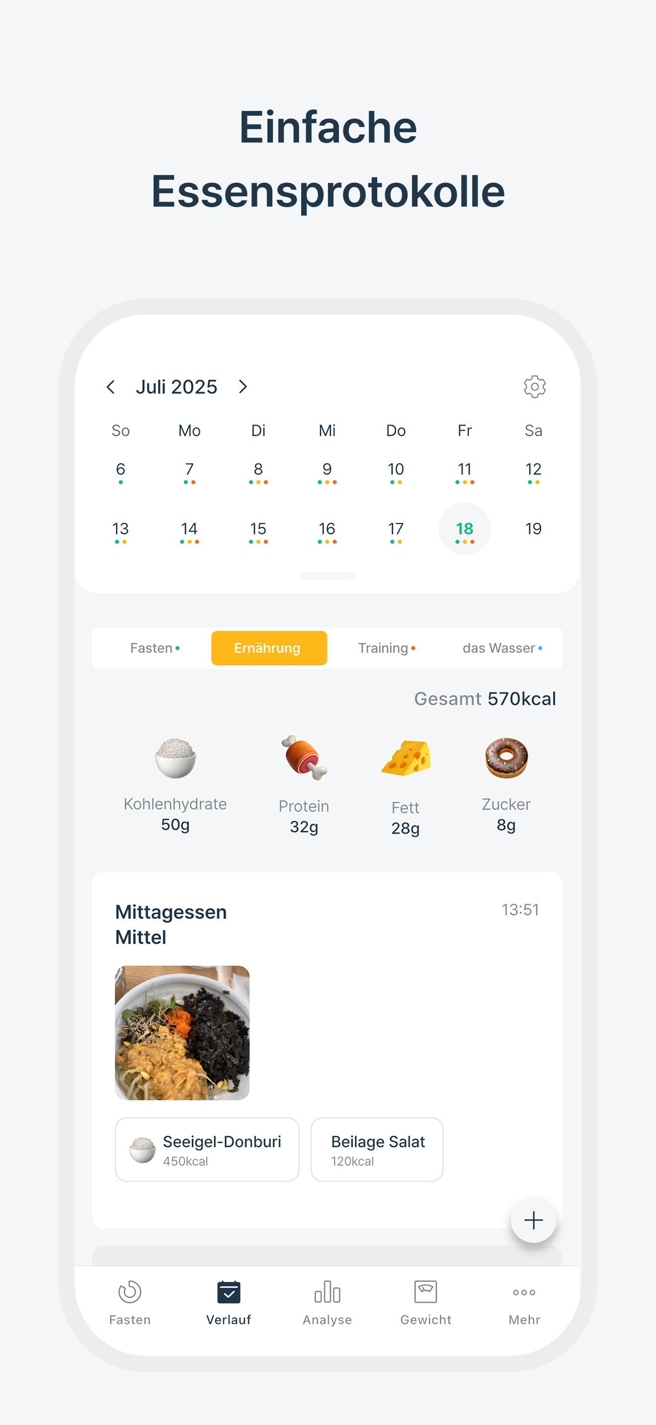 Möchten Sie beim Intervallfasten erfolgreich sein? Hören Sie auf, einfach nur zu hungern. Wir helfen Ihnen, durch wissenschaftliches und systematisches Management gesunde Gewohnheiten aufzubauen. Starten Sie Ihr intelligentes Gesundheitsmanagement mit 'SimFast', das von unzähligen Nutzern gelobt wird. Warum 'SimFast' wählen? [NEU] SimFast KI KI-Zeitplanempfehlungen: Kein Raten mehr! Unsere KI empfiehlt automatisch den perfekten Intervallfasten-Zeitplan, der auf Ihren Lebensstil zugeschnitten ist. KI-Kalorienberechnung: Machen Sie einfach ein Foto von Ihrer Mahlzeit, und die KI berechnet die Kalorien, um Ihre Ernährung intelligent zu protokollieren und zu verwalten. Der einfachste Intervallfasten-Timer Unterstützt alle Fastenmethoden wie 16:8 und 5:2, mit intelligenten Alarmen für Ihre Start- und Endzeiten. (※ Bitte überprüfen Sie Ihre Benachrichtigungseinstellungen!) Unbegrenztes benutzerdefiniertes Fasten Die Auswahl Ihrer Fastenzeiten und -pläne ist völlig kostenlos. Verwalten Sie Ihren Fastenplan ohne Werbung. All-in-One Gesundheits-Tracking Verfolgen Sie Ihre Fastenstunden, Gewichtsänderungen, Mahlzeiten, Trainingseinheiten und Wasseraufnahme an einem Ort. Fastenanalyse & Berichte Bietet detaillierte Statistiken zu Fastenstunden und Mahlzeitenkalorien, mit wöchentlichen und monatlichen Berichten. Praktisches Startseiten-Widget Überprüfen und steuern Sie Ihren Fastenstatus sofort von Ihrem Startbildschirm aus mit unserem Widget. Detaillierte Fastenphasen Erhalten Sie nützliche Tipps und Informationen darüber, was während des Fastens Stunde für Stunde in Ihrem Körper passiert. Diese Veränderungen zu verstehen, ist der Schlüssel zum Erfolg. Sichere Sicherung & Wiederherstellung Schützen Sie Ihre wertvollen Daten mit unserer einfach zu bedienenden Sicherungs- und Wiederherstellungsfunktion. Visueller Fortschritt & Mahlzeitenprotokollierung Protokollieren Sie Ihre Mahlzeiten und visuellen Fortschritte ("Eye-Body") mit Fotos, um Ihre erstaunliche Verwandlung zu sehen. Das ist die beste Motivation, um weiterzumachen! Die wissenschaftlich belegten Vorteile des Intervallfastens ▸ Effektiver Gewichtsverlust: Verbrennen Sie Körperfett und verhindern Sie übermäßige Fettspeicherung. ▸ Gesteigerter Stoffwechsel & Autophagie: Verbessern Sie Ihren Stoffwechsel und die zelluläre Gesundheit. ▸ Verbesserte Blutzuckerkontrolle: Erhöhen Sie die Insulinsensitivität, um den Blutzuckerspiegel natürlich zu regulieren. ▸ Fördert Entgiftung & Zellregeneration: Unterstützen Sie die natürlichen Entgiftungs- und Zellreparaturprozesse Ihres Körpers. ▸ Reduziert Entzündungen: Senken Sie Entzündungswerte und das Risiko chronischer Krankheiten. ▸ Verbesserte geistige Klarheit & Energie: Erleben Sie eine verbesserte Gehirnfunktion und Stimmung. Die perfekte Intervallfasten-App für Sie, wenn: Sie neu beim Intervallfasten sind und nicht wissen, wo Sie anfangen sollen. Sie mit einer systematischen Fasten-App motiviert bleiben möchten. Sie sowohl Gewichtsverlust als auch einen gesunden Lebensstil anstreben. Sie Schwierigkeiten mit der Verwaltung von Diäten und dem Zählen von Kalorien hatten. Das Geheimnis einer erfolgreichen Diät ist 'Beständigkeit'. 'SimFast', die beste Intervallfasten-App, wird Ihnen helfen, gesunde Gewohnheiten aufzubauen. Laden Sie 'SimFast' jetzt herunter und beginnen Sie Ihre gesunde Veränderung!