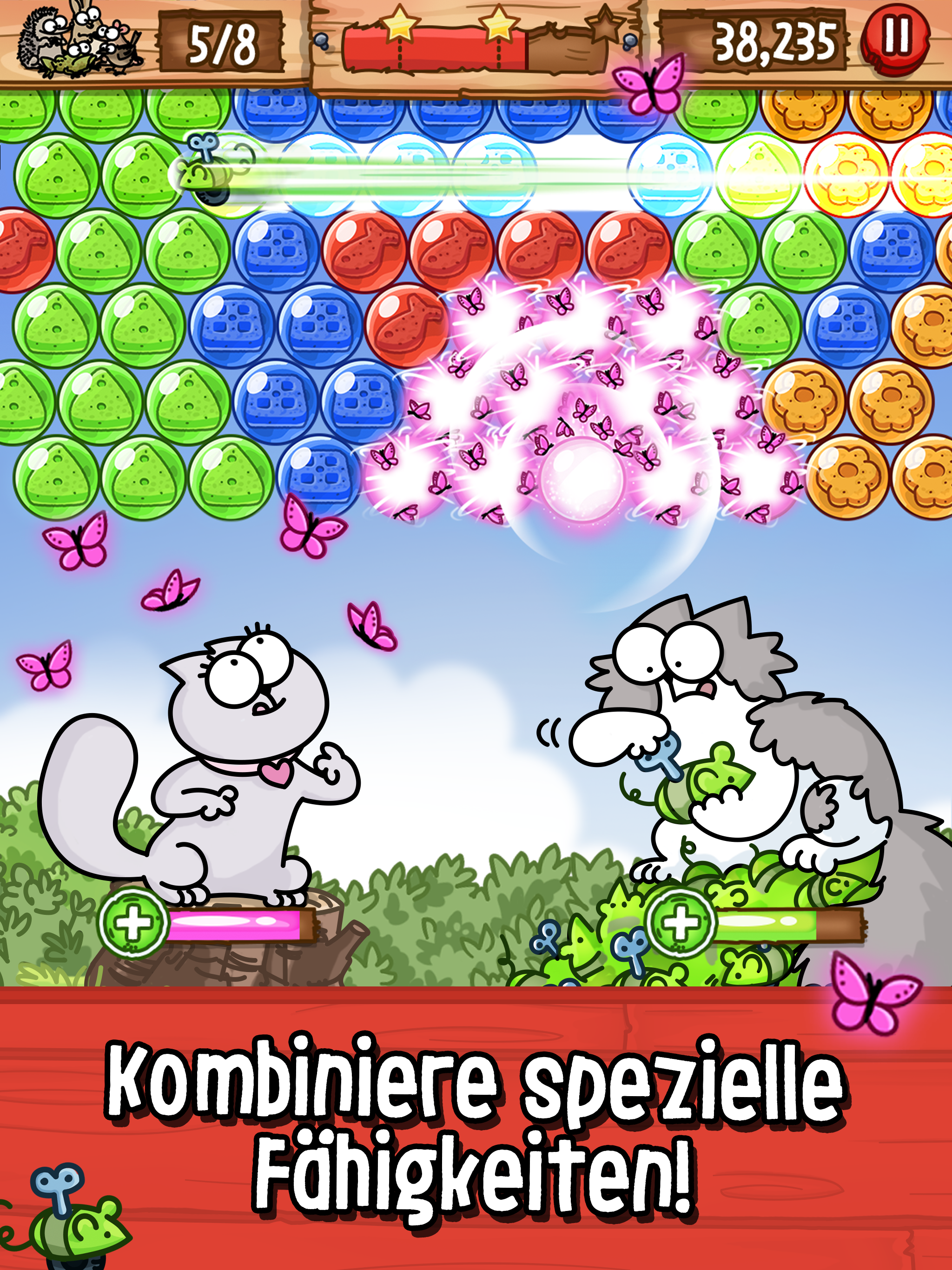 Simon’s Cat in POP Time! - Ein Bubble Shooter-Abenteuer. Veröffentlicht von Tactile Games Ltd. Mr. Potts ist der Kragen nun endgültig geplatzt und er hat sich auf die Jagd nach Simons Katze und seiner Bande von Garten-Eindringlingen gemacht! Die süßen Tierchen sind in einer Blasenfalle gefangen und nur DU kannst sie befreien! Begleite Simons Katze, Maisy, Chloe, Kitten, Jazz und unzählige andere süße Tierchen auf einer vergnüglichen Reise durch einige absolut pfotenstarke Orte, wo schmackhafte Leckerlis nur darauf warten, gegessen zu werden! Mach dich bereit in diesem KOSTENLOSEN und supersüßen Puzzlespiel einen Regenbogen von Blasen POPPEN zu lassen. • Eingängiges und süchtig machendes Puzzlespiel! Lass Blasen in Leveln voller Leckerlis POPPEN, um die süßen Tierchen zu retten! • Spiele dich durch Hunderte von spannenden und herausfordernden Leveln! • Spiele tägliche Events für jede Menge kostenlose Münzen und Booster! Zahlreiche putzige Charaktere und neue Hintergründe von Simon und dem Team! Wir arbeiten immer hart daran, das Spiel mit neuen Leveln zu erweitern, die dir ganz bestimmt gefallen werden! Schon gespielt und Spaß gehabt? Halte dich über Updates auf dem Laufenden und nimm dir einen MIAUment, um eine freundliche Bewertung zu hinterlassen :) Du findest uns auch auf: Facebook: facebook.com/SimonsCatPopTime Instagram: instagram.com/SimonsCatOfficial YouTube: youtube.com/c/SimonsCat DANKE UND BIS SPÄTER!