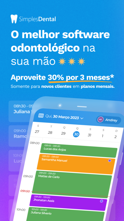 Kostenlose Testversion: Probieren Sie jetzt die beste Dentalsoftware aus! Greifen Sie jederzeit und überall auf die App für Zahnärzte zu: Simples Dental. Unsere Dentalsoftware Simples Dental ist die beste App für Zahnärzte und das gesamte Team Ihrer Klinik. Damit haben Sie auf einfache, praktische und benutzerfreundliche Weise die volle Kontrolle über Management und Vertrieb. Es ist wohl die beste Dentalsoftware auf dem Markt. Es gibt die Light-Version über die App und die vollständige Webversion. Kennen Sie die täglichen zahnärztlichen Verwaltungsaufgaben, die Ihre Zeit in Anspruch nehmen? Lassen Sie Dentalsoftware das für Sie erledigen! Mit unserem System für Zahnärzte können Sie in Sekundenschnelle Ihren Zahnarztterminplan einsehen, schnell Patientendaten aufschreiben, Fotos speichern, ohne den Speicher Ihres Mobiltelefons zu beanspruchen, und über WhatsApp kommunizieren. Zahnarzt, schaffen Sie noch mehr Innovationen, indem Sie Alexa verwenden, um mit Skill Simples Dental per Sprachbefehl auf Ihren Zahnarztterminplan zuzugreifen. Haben Sie sich das alles schon einmal in Ihrer zahnärztlichen Routine vorgestellt? Raus aus dem Papier. Digitalisieren Sie jetzt Ihre Zahnarztpraxis mit: Der intuitivste Dentalkalender auf dem Markt Vereinbaren Sie Termine und Termine, wann und wo immer Sie möchten, in dem für Ihre routinemäßige Zahnmedizin erstellten Terminkalender Sehen Sie im Zahnarztkalender, welche Patienten ihre Termine bestätigt oder abgesagt haben Planen Sie Rückkehrwarnungen und vergessen Sie nicht, jemanden zu verschieben Verwalten Sie die Registrierung Ihrer Patienten Verfügen Sie über eine virtuelle Zahnkarte und verkaufen Sie mehr, wenn Sie Zahnbehandlungen zeigen Machen Sie Fotos vom Patienten oder machen Sie regelmäßig Röntgenaufnahmen, organisieren Sie alles in Ordnern und bieten Sie unbegrenzten Platz für zahnärztliche Dokumente Bei Simples Dental ist WhatsApp in die Patientenakte integriert, um auf praktische Weise zu kommunizieren und Termine automatisch zu bestätigen Erstellen Sie zahnärztliche Behandlungen und Entwicklungen in Sekundenschnelle, um sie anzusehen und zu verfolgen Migrieren Sie Ihre Handykontakte mit einem Klick zu Simples Dental Vergessen Sie nicht, das volle Potenzial von Simples Dental zu nutzen, der besten Dentalsoftware in der Webversion, die über alle vollständigen Funktionen verfügt, die Sie für das Wachstum Ihrer Zahnklinik benötigen. Jetzt herunterladen und kostenlos testen! Zahnarzt, nehmen Sie die Einladung an und werden Sie Teil der Gemeinschaft von 70.000 Benutzern, die Simples Dental in ganz Brasilien nutzen. Seien Sie sich darüber im Klaren, dass Ihre Daten geschützt sind und Sie über eine intuitive und einfach zu bedienende Dental-App verfügen. Offizielle Partner der Dentalsoftware Simples Dental. Dental: Dental Cremer, Dental Speed und SIN Implantes. Erfahren Sie mehr über dieses System für Zahnärzte: simplesdental.com Nutzungsbedingungen: https://www.simplesdental.com/terms Datenschutzerklärung: https://www.simplesdental.com/politica