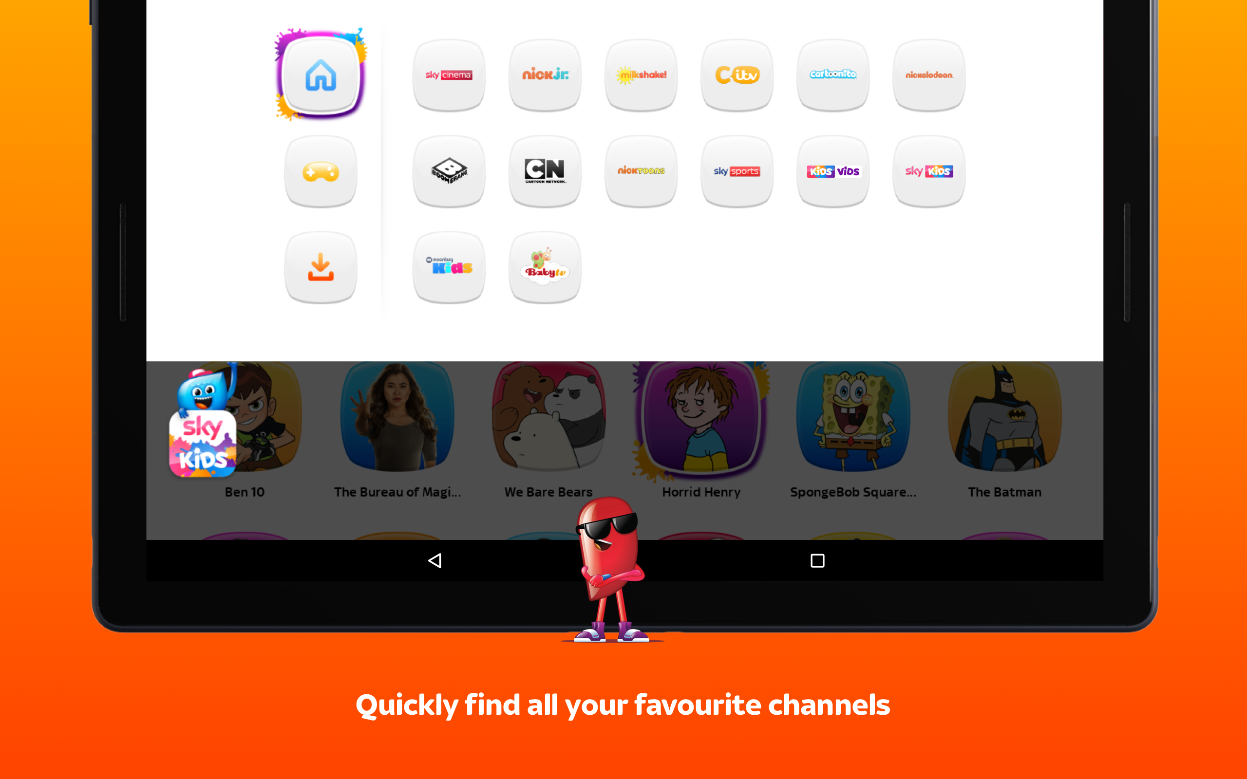Entdecken Sie die Sky Kids App noch heute - die Lieblingsshows, großartigen Spiele und Filme Ihrer Kinder. Kann ich die Sky Kids App bekommen? Die Sky Kids App ist für Sky-Kunden verfügbar, die über die Bundles Variety und Box Set (Family Bundle) oder das Kids Pack verfügen. Für den Zugriff auf Filme benötigen Sie ebenfalls das Sky Cinema-Abonnement. Voller Lieblingssendungen Ihrer Kinder. Über 5000 Folgen verfügbar, von Nickelodeon bis CBeebies, KidsVids bis Disney. Seelenfrieden für die Eltern! Kinder können ihr eigenes Profil erstellen und ihren Sky-Freund auswählen! Kindersicherung und Altersbeschränkungen sind vorhanden, um altersgerechten Inhalt zu gewährleisten, und der Ruhemodus legt Zeitlimits für die Nutzung der App fest. Wir haben jetzt über 100 Spiele auf Tablets und 25 auf Handys mit beliebten Charakteren. Die App bietet fantastische Spiele mit regelmäßigen Neuzugängen für Benutzer von * Android OS 5.0 und höher (einige Spiele sind auf älteren Geräten möglicherweise langsamer). Nehmen Sie Sky Kids mit. Laden Sie Spiele herunter, um zu spielen, wo immer Sie sind. Kunden mit Sky Go Extra, Sky Multiscreen oder Sky Q Multiscreen können auch Shows herunterladen. Helfen Sie uns, Sky Kids noch besser zu machen. Wir sind bemüht, Sky Kids auf vielen Android-Geräten zu testen. Bei Problemen teilen Sie uns bitte das genaue Gerät mit. Wir freuen uns über Ihr Feedback und Ihre Vorschläge, wie Sie die App noch besser machen können.