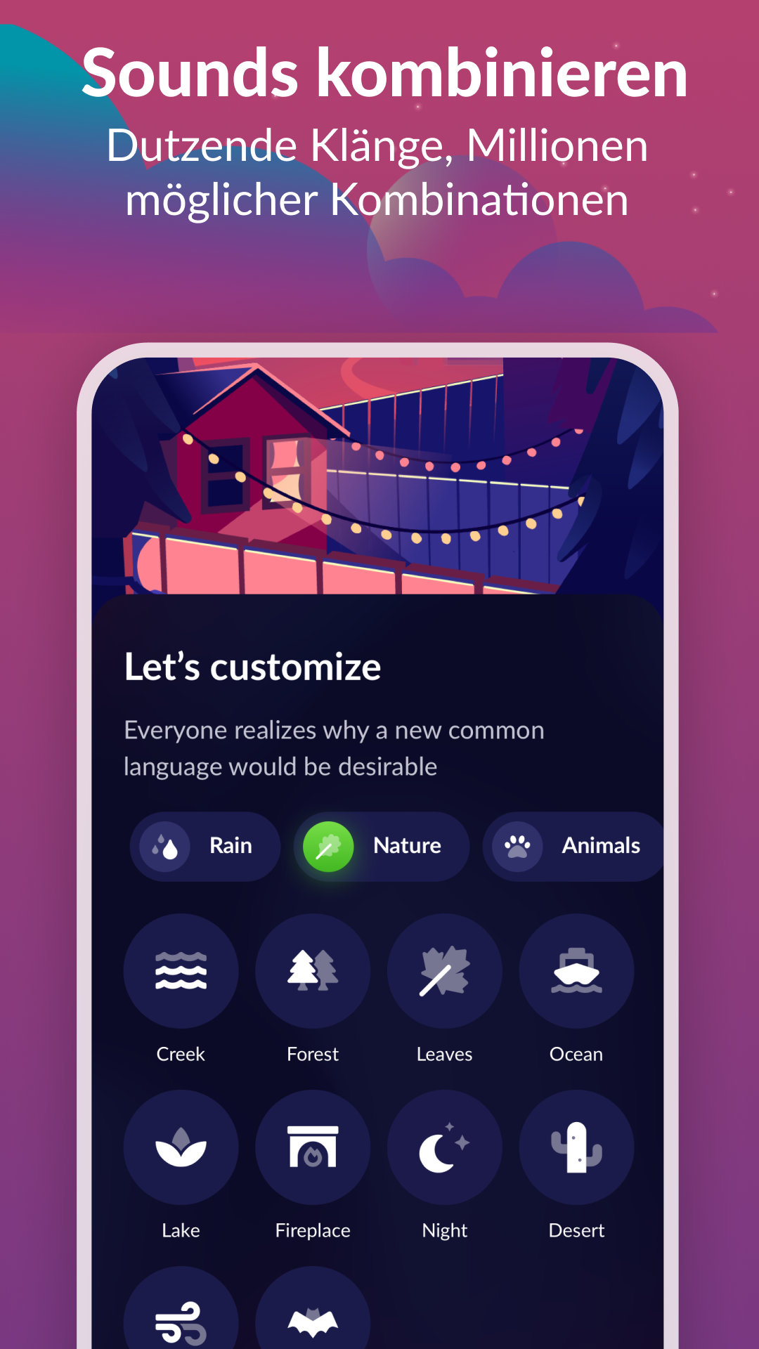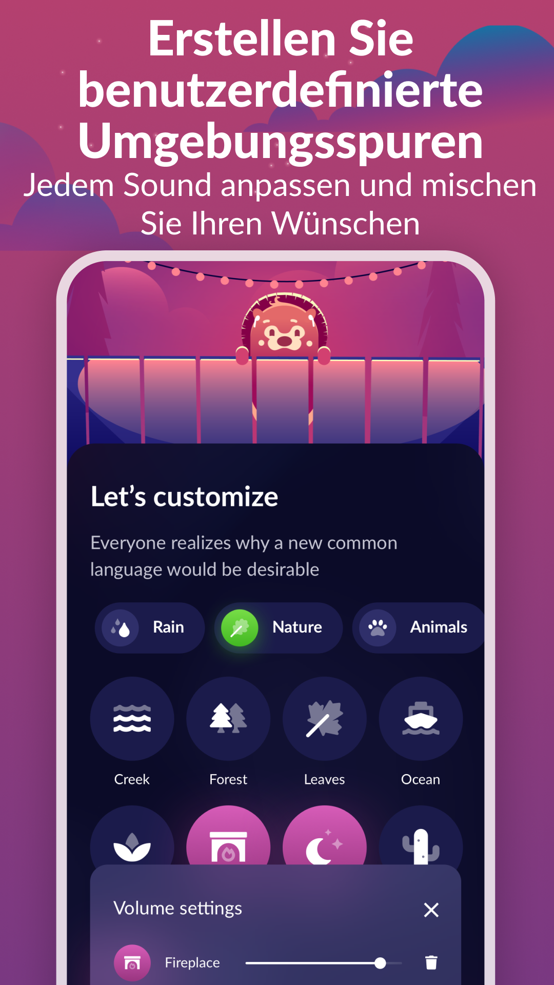 Genießen Sie 12 anpassbare und realistische Naturgeräusche: