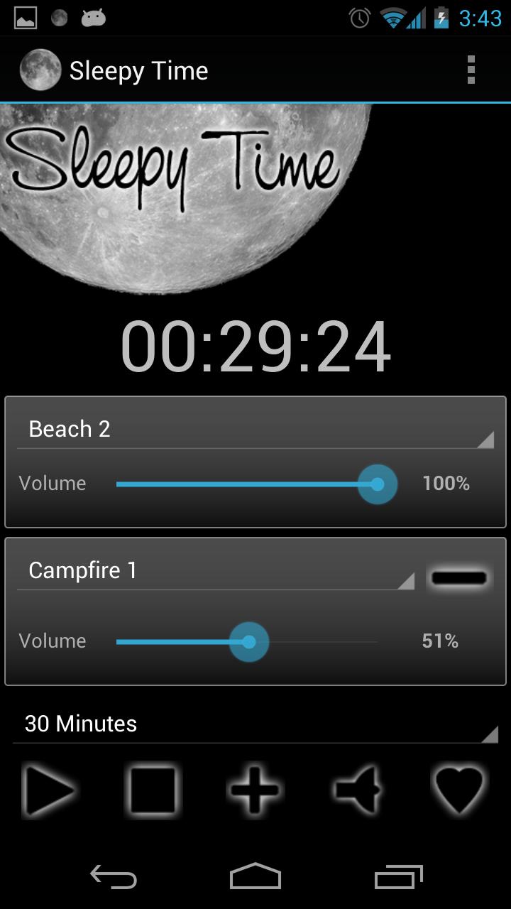 Sleepy Time is the best way to fall asleep! Sleepy Time turns your device into a sound machine and offers a wide assortment of audio tracks specially designed to lead you gently into the arms of slumber. You can choose from various sounds including the beach, birds, crickets, and white noise. You have over 80 total sounds to choose from, and if that isn’t enough you can mix and match up to three sounds to create our own unique sleep-scape to help you sleep. Over 300,000 possible sound combinations! Sound options include the following. In many cases, there are several different versions of each sound.