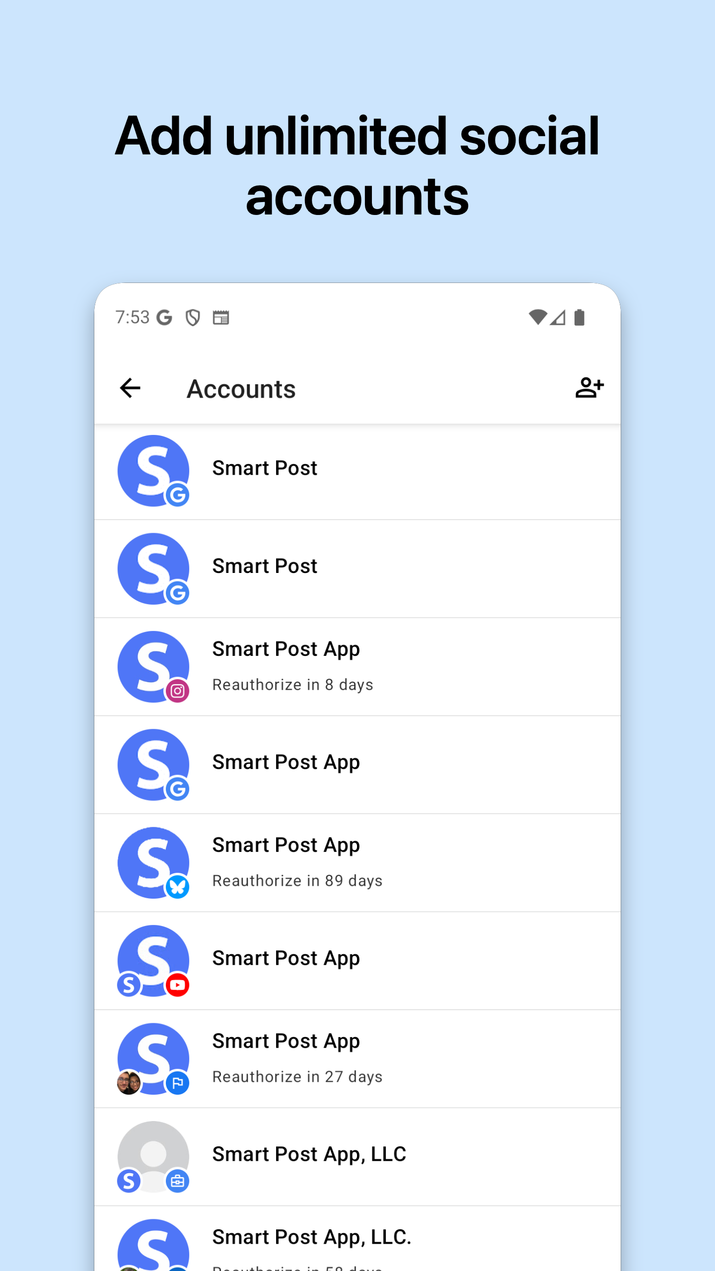 Smart Post – Beitragsplanung, Content-Kalender & Social-Media-Manager Smart Post ist ein leistungsstarker Beitragsplaner, Content-Kalender und Social-Media-Manager, mit dem Sie Beiträge planen, Inhalte organisieren und mehrere Konten zentral verwalten können. Planen Sie Social-Media-Beiträge, automatisieren Sie die Veröffentlichung und behalten Sie dank einer übersichtlichen Kalenderansicht Ihrer Inhalte stets den Überblick. Entwickelt für Kreative, Marketer und Unternehmen, die Zeit sparen und schneller wachsen möchten. 📅 Planen, Terminieren & Verwalten mit einem umfassenden Content-Kalender Visualisieren Sie Ihren Veröffentlichungsplan mit einem vollständigen Kalender speziell für die Social-Media-Planung. ✔ Alle geplanten Beiträge im Kalender anzeigen ✔ Inhalte nach Tag und Monat planen ✔ Anstehende Beiträge aller verbundenen Konten einsehen ✔ Ihren Veröffentlichungsplan zentral organisieren ✔ Ihren Content-Kalender mit einem übersichtlichen visuellen Workflow verwalten Behalten Sie den Überblick und wissen Sie immer, was als Nächstes veröffentlicht wird. 🚀 Social-Media-Posts überall planen Planen und veröffentlichen Sie Inhalte auf allen wichtigen Plattformen: • Instagram • TikTok • X • Bluesky • YouTube • Facebook • Threads • Pinterest • LinkedIn • Google Unternehmensprofil ✔ Beiträge im Voraus planen ✔ Auf mehreren Plattformen gleichzeitig posten ✔ Inhalte schneller im Stapelverfahren planen ✔ Wiederkehrende Beiträge automatisieren ✔ Instagram-Posts und -Stories planen ✔ Instagram-Postplaner zum Vorplanen von Beiträgen und Stories Bleiben Sie überall aktiv – ganz ohne manuelles Posten. 🧠 Content-Ideen und Posting-Pläne organisieren Smart Post hilft Ihnen mit einfachen Planungstools, regelmäßig zu posten. ✔ Post-Ideen an einem Ort organisieren ✔ Inhalte vor der Veröffentlichung vorbereiten ✔ Ideen direkt in Ihren Posting-Plan einfügen ✔ Kontinuierlichen Posting-Workflow beibehalten ✔ Ideen schneller in geplante Beiträge umwandeln Cleverer planen und selbstbewusst veröffentlichen. ⚡ Umfassende Social-Media-Management-Tools Mehr als nur eine Posting-App – Smart Post unterstützt Sie bei der effizienten Verwaltung Ihrer Social-Media-Workflows. ✔ Mehrere Social-Media-Konten verwalten ✔ KI-generierte Bildunterschriften-Vorschläge ✔ Bilder mit Filtern und Zeichenwerkzeugen bearbeiten ✔ Zugriff auf kostenlose Stockfotos und GIFs ✔ Geplante Inhalte in Kalender- und Listenansicht anzeigen Alles, was Sie für Ihr Social-Media-Management benötigen, in einer App. 🎯 Für Wachstum entwickelt Smart Post hilft Ihnen dabei: • Zeit durch Automatisierung zu sparen • Regelmäßige Posts zu planen • Inhalte mit einem visuellen Kalender zu planen • Mehrere Plattformen einfach zu verwalten • Ihre Reichweite durch optimierte Workflows zu vergrößern Laden Sie Smart Post noch heute herunter und vereinfachen Sie Ihre Social-Media-Planung, -Terminierung und -Veröffentlichung.