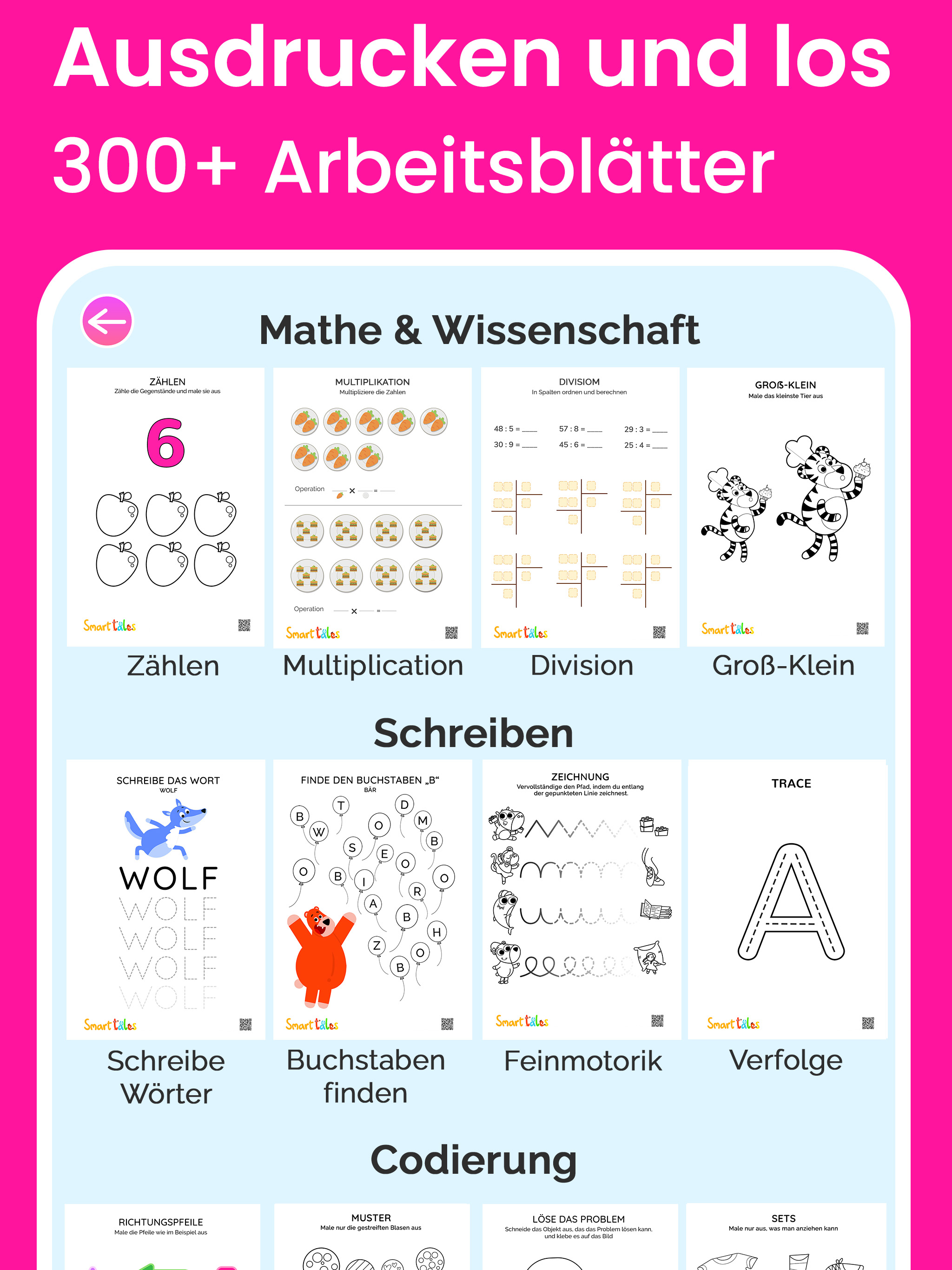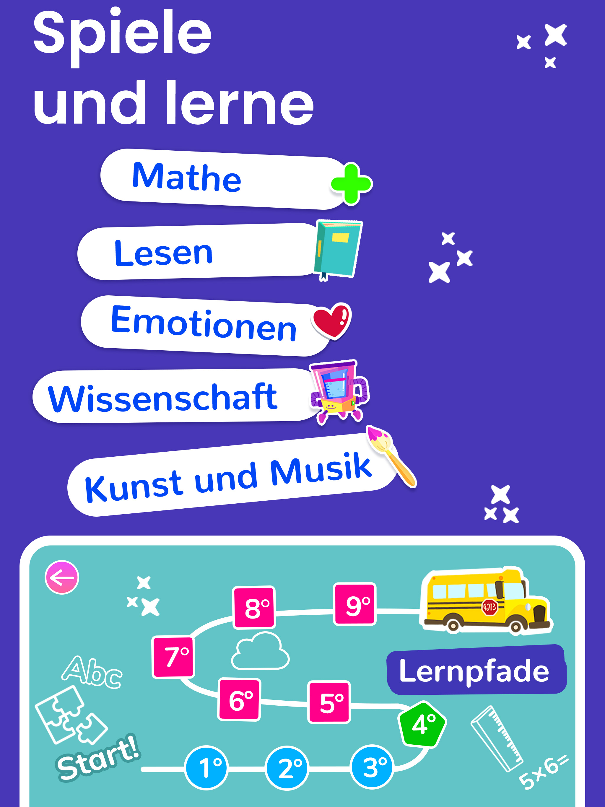🏆 Gewinner des Mom's Choice Awards® - Goldmedaille ⭐⭐⭐⭐⭐ Die Lern-App für Vorschule & Grundschule Suchen Sie sinnvolle Lernspiele oder Unterstützung bei den Hausaufgaben? Smart Tales ist die Sammlung von 2500+ Übungen, empfohlen von Lehrern zur Förderung von Mathe, Lesen, MINT und Logik. Von den ersten Schwungübungen in der Kita bis zum Einmaleins in der Grundschule: Wir verwandeln Bildschirmzeit in aktiven Lernerfolg. 🚀 WARUM SMART TALES? Im Gegensatz zu passiven Videos orientiert sich Smart Tales am Lehrplan (Klasse 1-4) und fördert die Konzentration. 100% werbefrei, kindersicher und zertifiziert. ✅ DEUTSCHE SPRACHAUSGABE: Professionelle Sprecher mit klarer Aussprache für optimales Sprachverständnis. ✅ UNICEF PARTNER: Exklusive Geschichten zur Vermittlung sozialer Werte. ✅ TÄGLICH GRATIS LERNEN: Spielen Sie 2 neue Level gratis pro Tag – für immer! (Oder Abo für alles). ✅ 500+ ARBEITSBLÄTTER: Übungsblätter zum Ausdrucken (Malen, Schreiben, Rechnen). 🧸 FÜR DIE KLEINEN: VORSCHULE & KITA (3-5 Jahre) Machen Sie Ihr Kind fit für die Einschulung mit der Akademie für die Kleinen: • Schwungübungen & Schreiben: Buchstaben und Zahlen nachspuren (Feinmotorik). • Mathe & Logik: Zählen, Formen, Mengen und Montessori-Methoden. • Interaktive Geschichten: Wortschatzerweiterung und emotionale Entwicklung. • Englisch für Anfänger: Die ersten Wörter spielerisch lernen. 🚀 FÜR DIE GROSSEN: GRUNDSCHULE (6-11 Jahre) Gezielte Nachhilfe für die Klassen 1 bis 4: • Mathematik komplett: Kopfrechnen, Einmaleins, Geometrie, Brüche und Division. • Lesen lernen: Silben, flüssiges Lesen und Textverständnis. • MINT & Sachkunde: Der menschliche Körper, Weltraum, Tiere und Natur. • Programmieren & Logik: Coding-Basics und Gehirn-Jogging Rätsel. 🧩 INKLUSION & LERNSCHWÄCHEN Entwickelt für alle Kinder. Dank lesbarer Schrift und klarer Struktur ideal bei Legasthenie (LRS), ADHS oder Autismus. Beinhaltet soziale Geschichten zur Emotionsregulation. 🌍 IDEAL FÜR UNTERWEGS (OFFLINE MODUS) Perfekt gegen Langeweile auf Reisen, ohne den Lernfokus zu verlieren: • Ohne Internet: Inhalte herunterladen und überall nutzen (Auto, Flugzeug). • Elternbereich: Lernfortschritt verfolgen und Zeit begrenzen. 🏆 PREISE & SICHERHEIT • Mom's Choice Awards® - Gold • DSGVO Konform - Datenschutz garantiert • Educational App Store - 5 Sterne Zertifizierung • COPPA Certified - Kindersicher Laden Sie Smart Tales: Mathe,Lesen,Schule heute herunter! Testen Sie die 2 GRATIS Level täglich und fördern Sie Ihr Kind spielerisch.